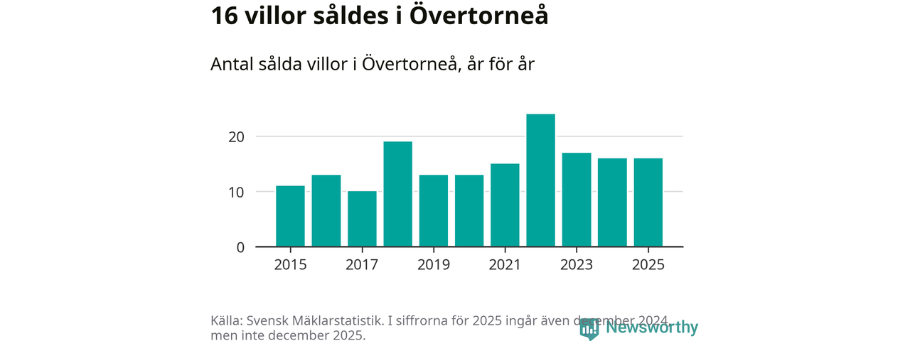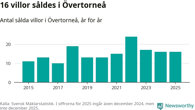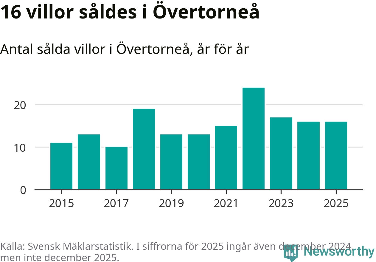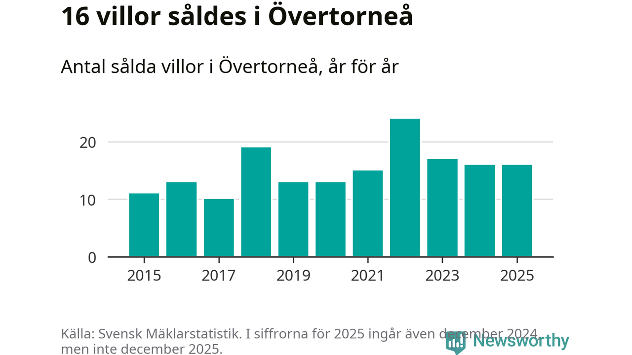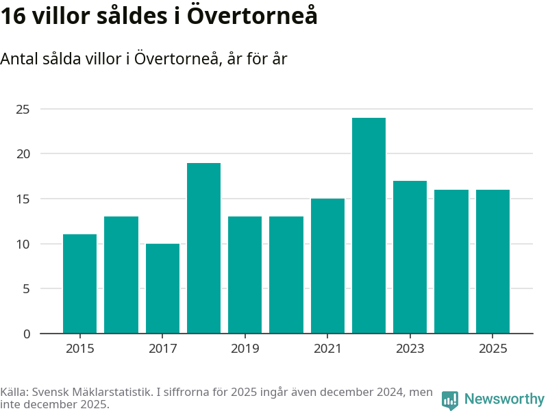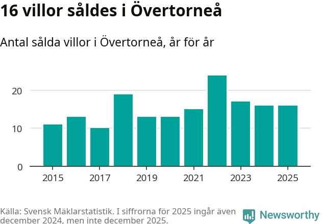 något. Totalt såldes 16 villor, vilket är lika många som året innan.Totalt såldes 16 villor, att jämföra med 16 under 2024.