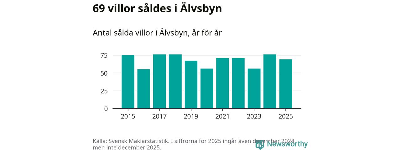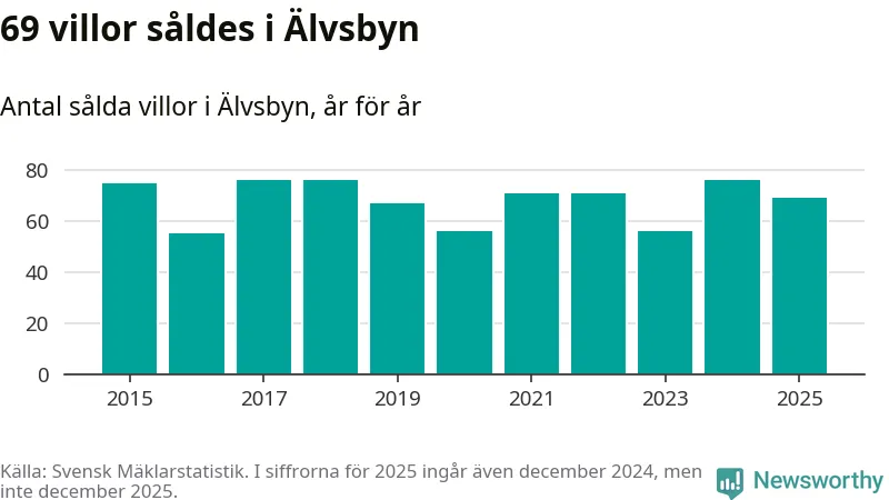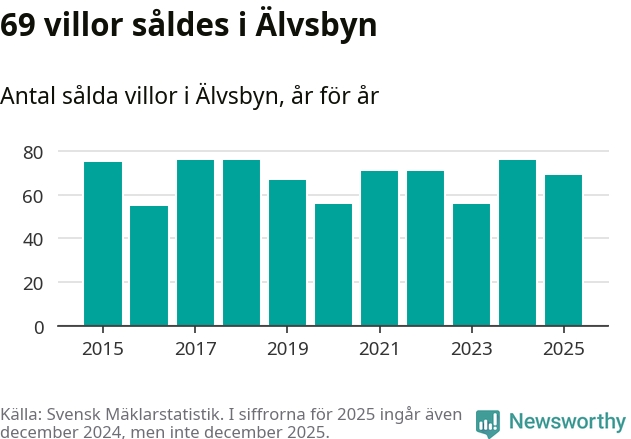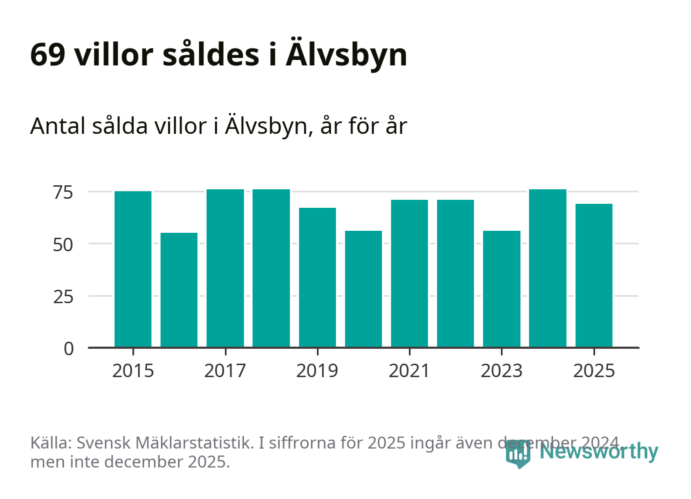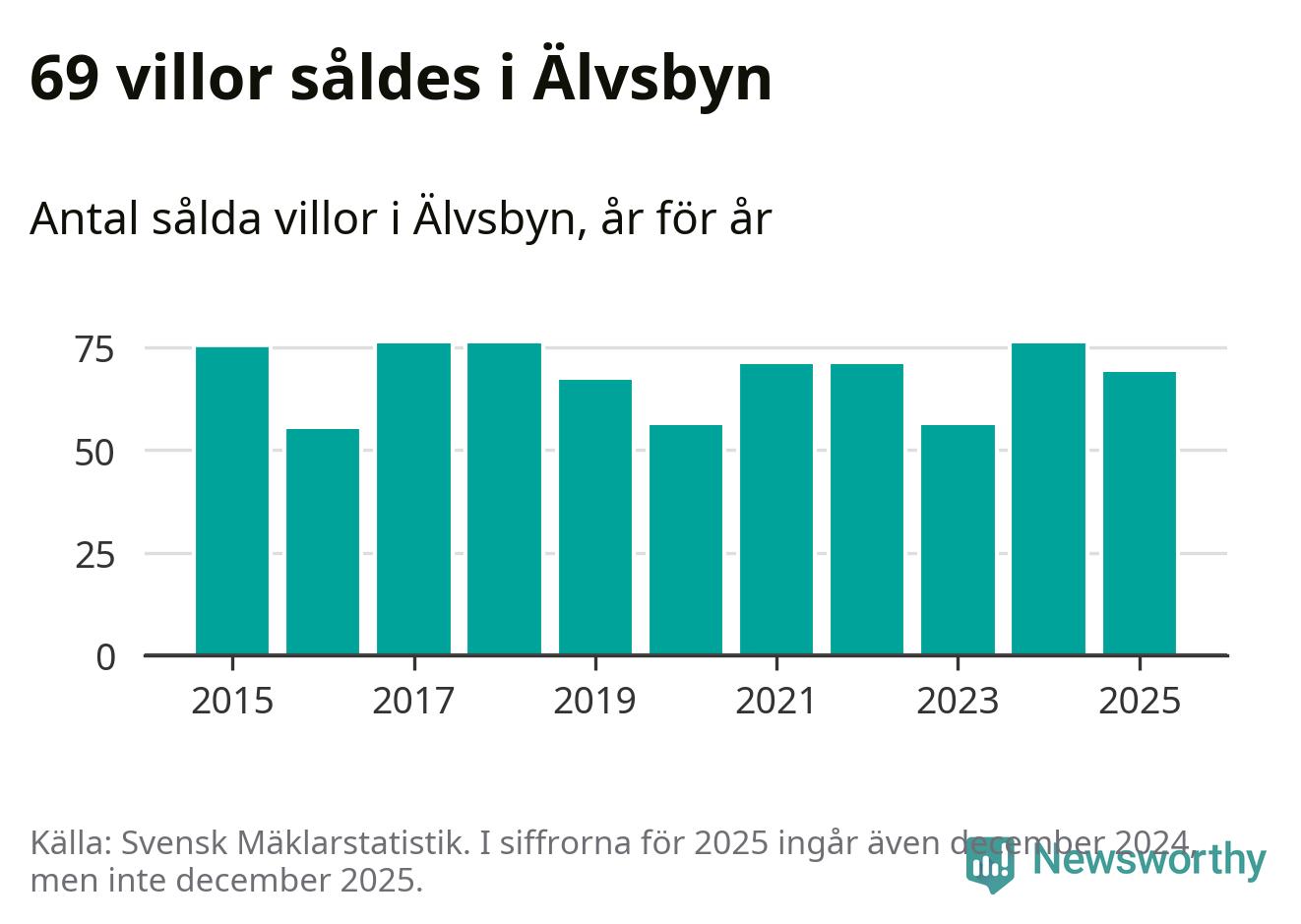 Däremot minskade antalet sålda villor. Totalt såldes 69 villor, att jämföra med 76 under 2024.