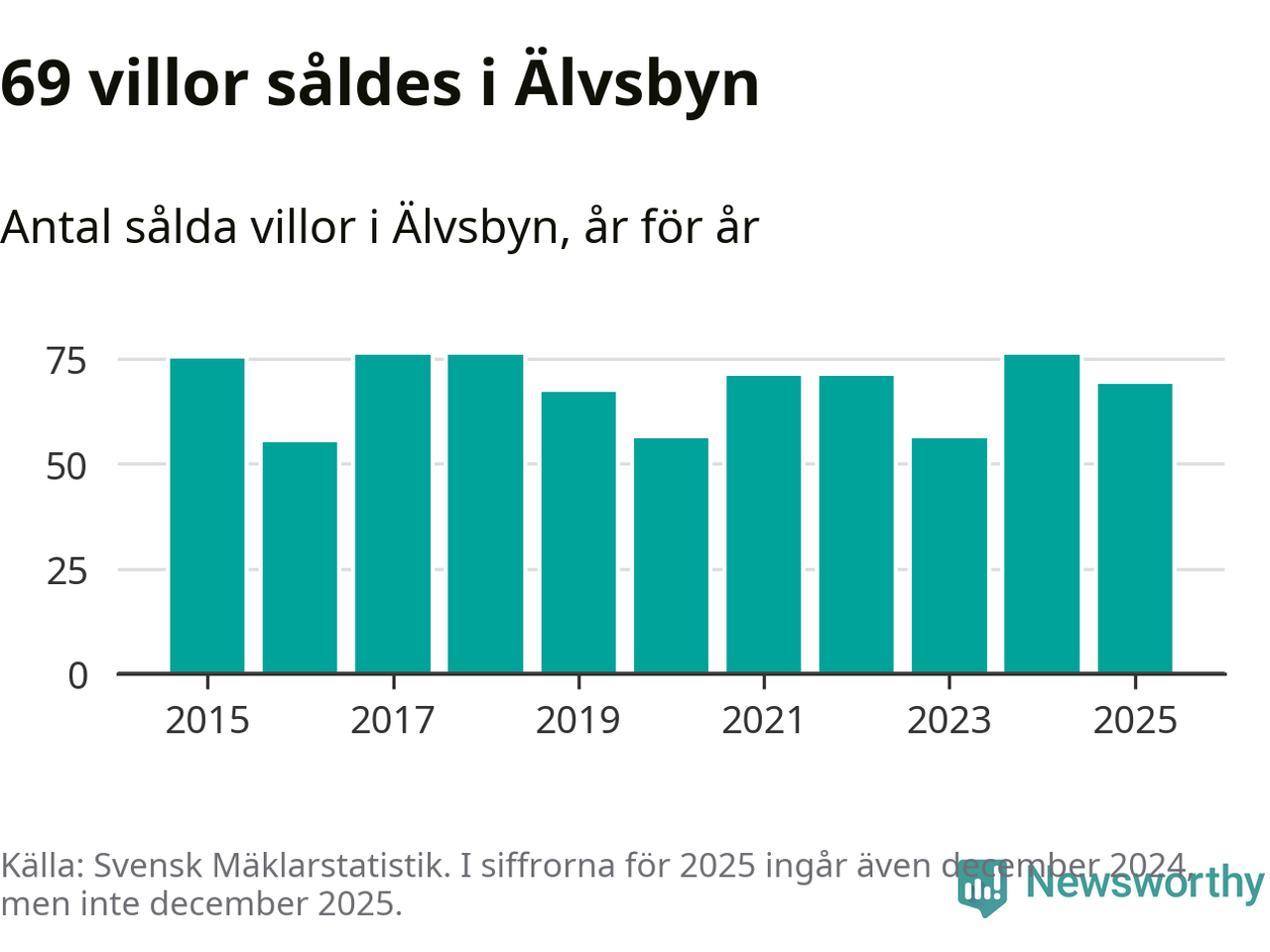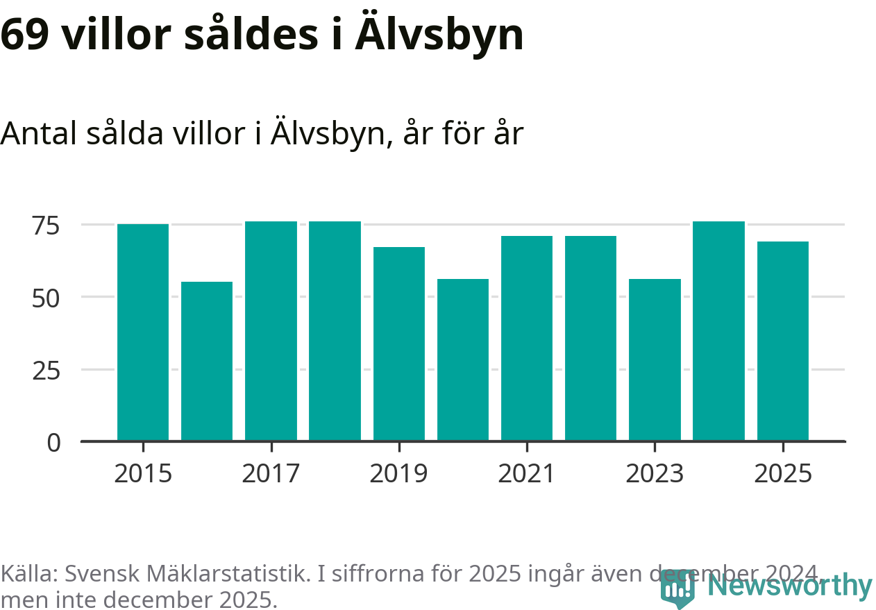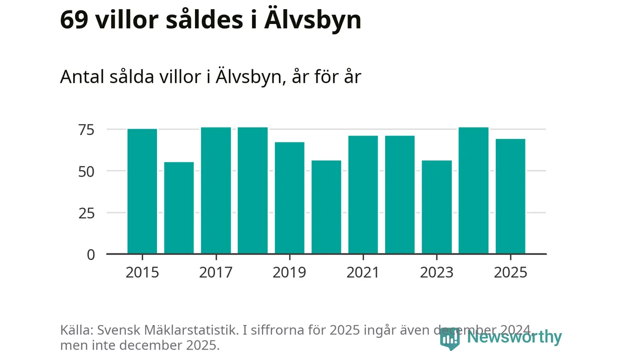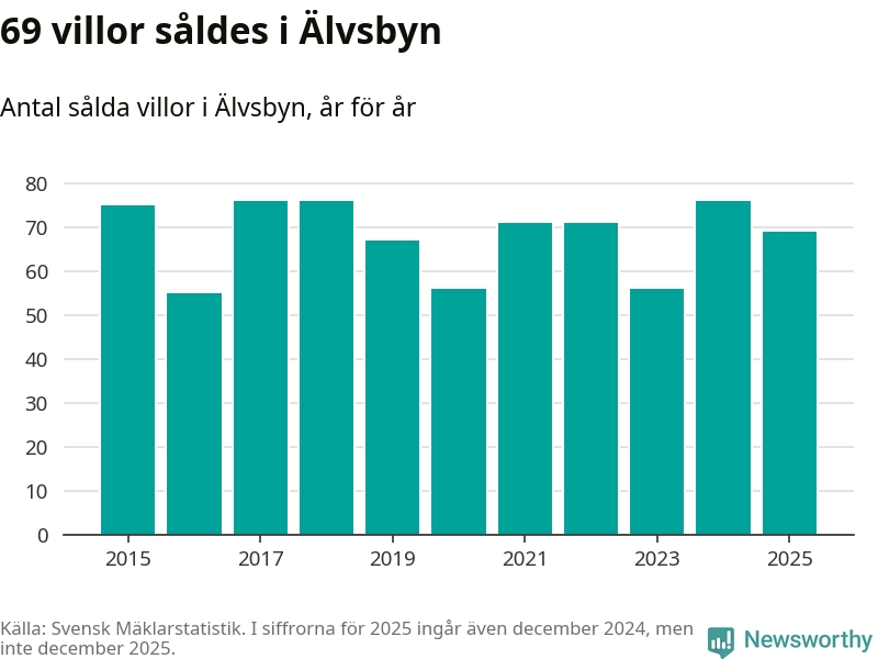 Däremot minskade antalet sålda villor. Totalt såldes 69 villor, att jämföra med 76 under 2024.