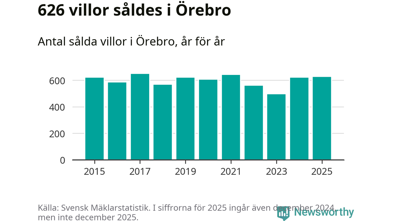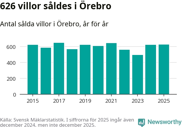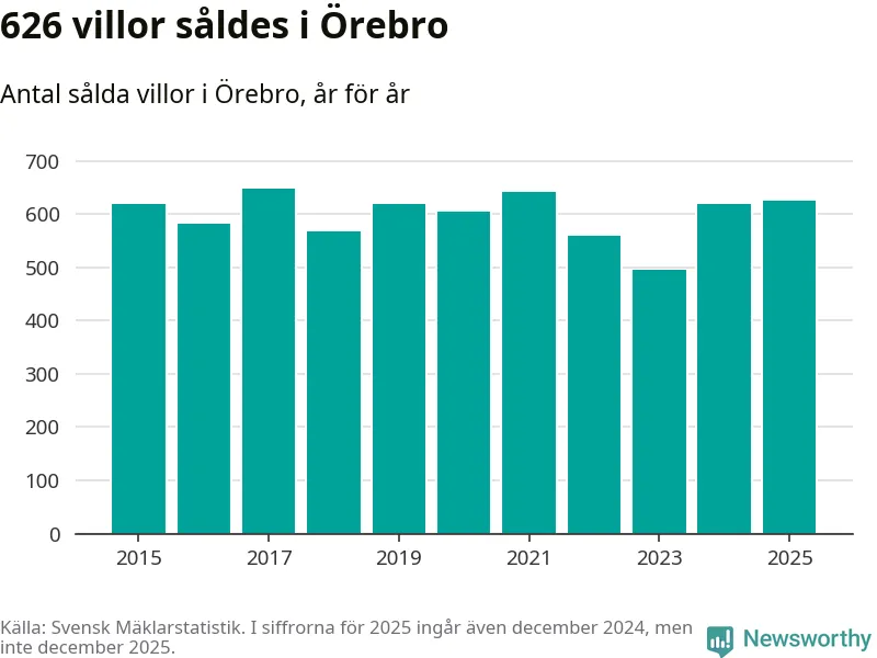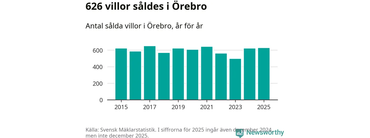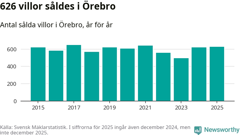 Antalet sålda villor ökade också. Totalt såldes 626 villor, att jämföra med 620 under 2024. Det är andra året i rad som antalet sålda villor ökar i kommunen.