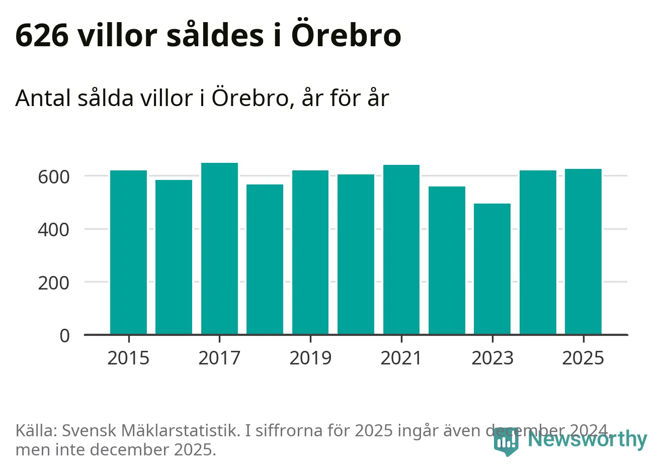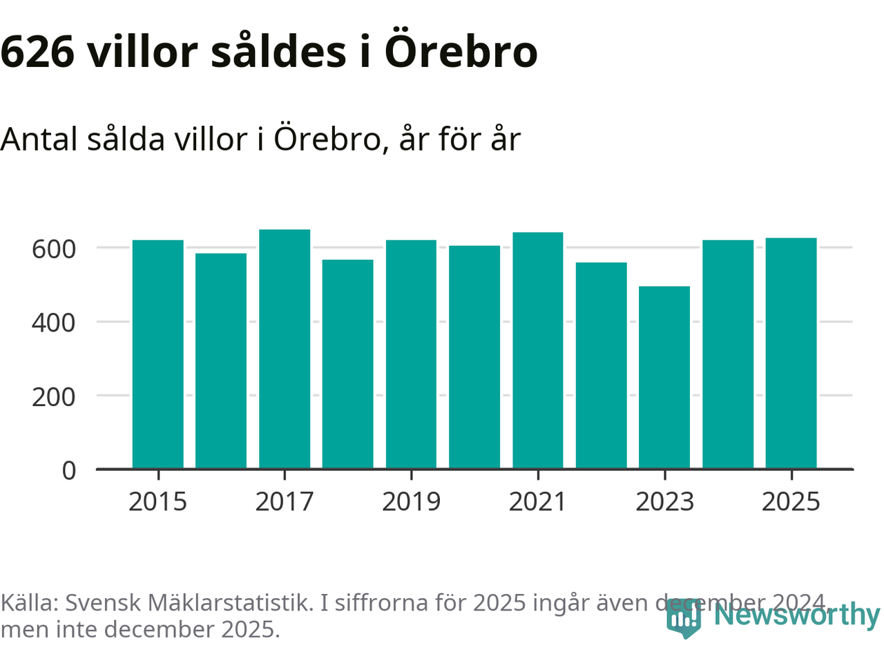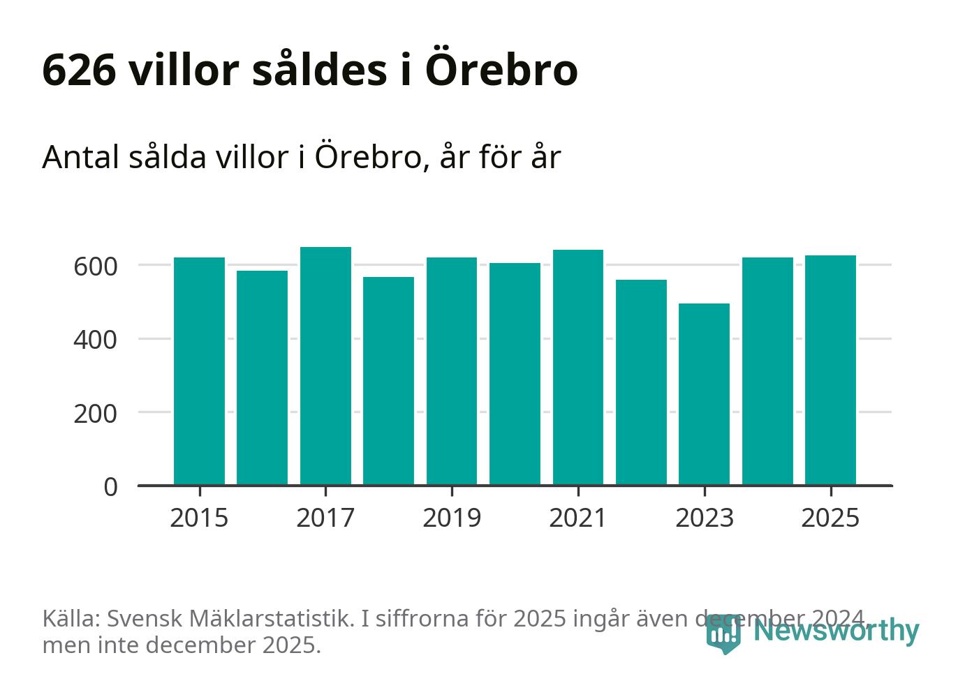 Antalet sålda villor ökade också. Totalt såldes 626 villor, att jämföra med 620 under 2024. Det är andra året i rad som antalet sålda villor ökar i kommunen.