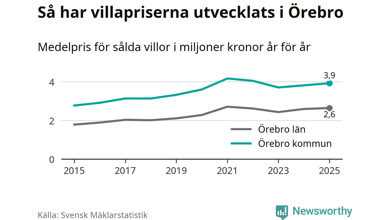 Bostadsmarknaden i Sverige närmar sig nivån före räntesmockan 2022. I Örebro kommun ökade villapriserna för andra året i rad.