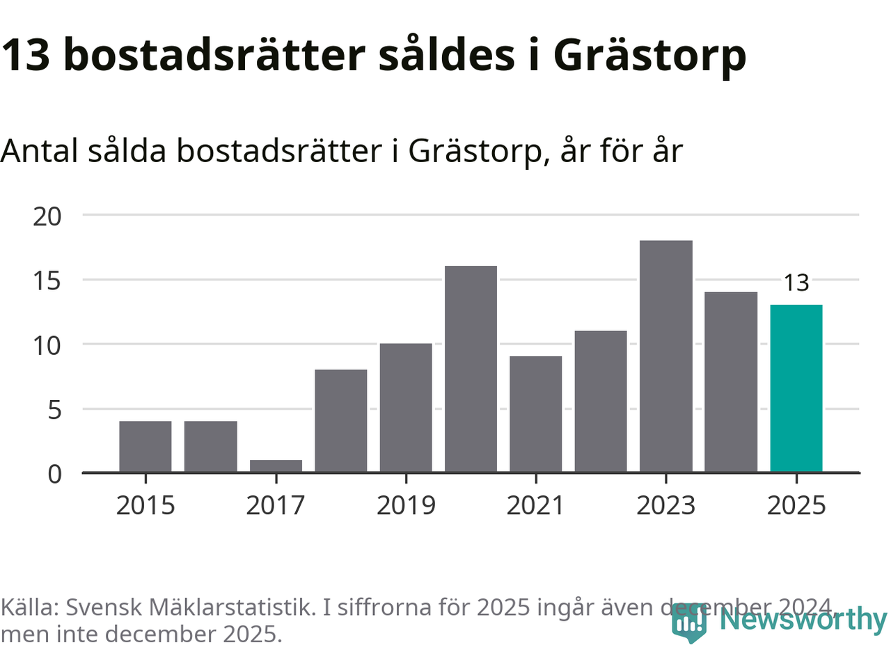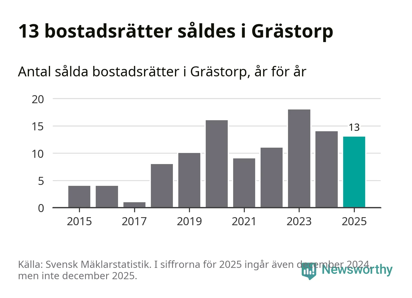 Det visar årsstatistik från Svensk Mäklarstatistik som Newsworthy har sammanställt.