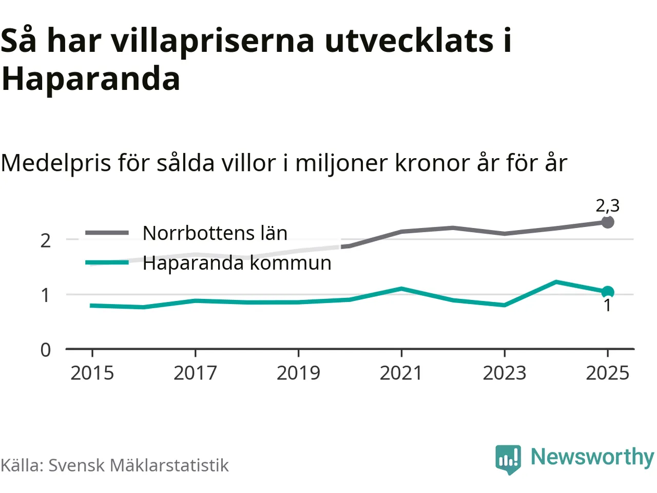 Bostadsmarknaden i Sverige närmar sig nivån före räntesmockan 2022. I Haparanda sjönk dock villapriserna.
