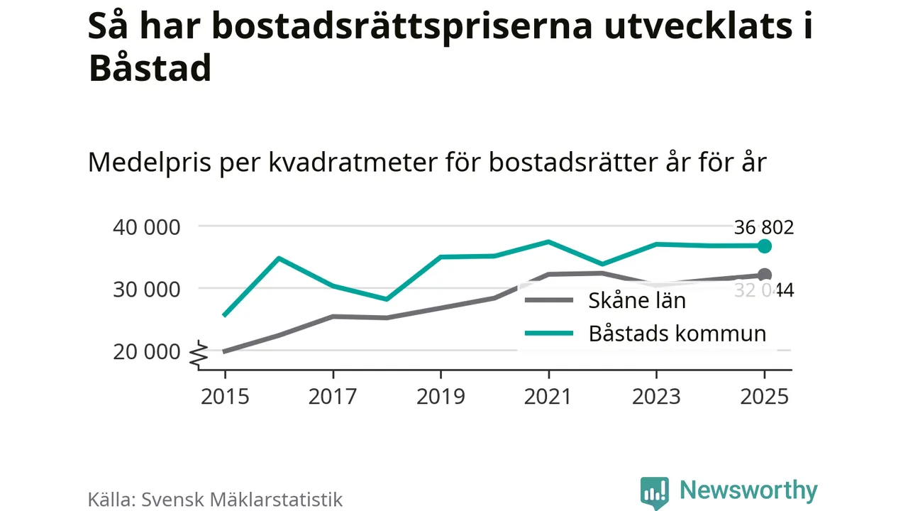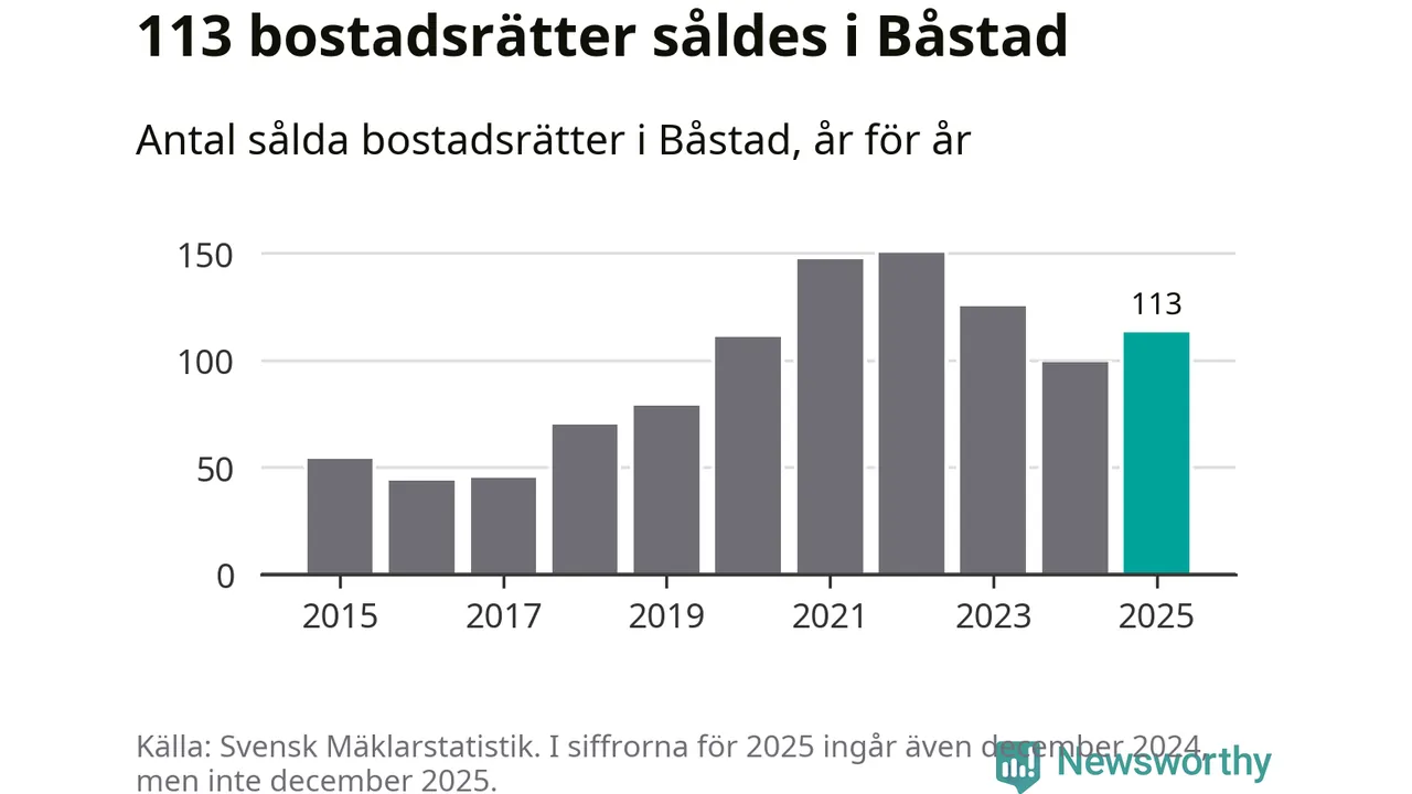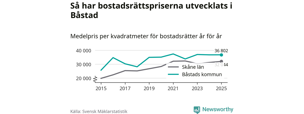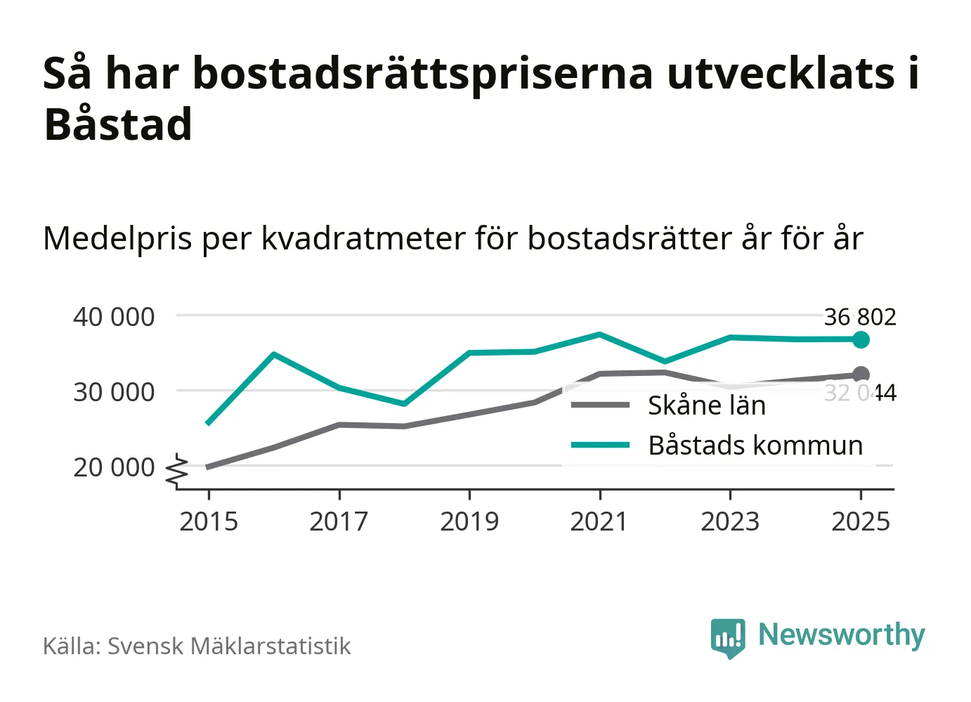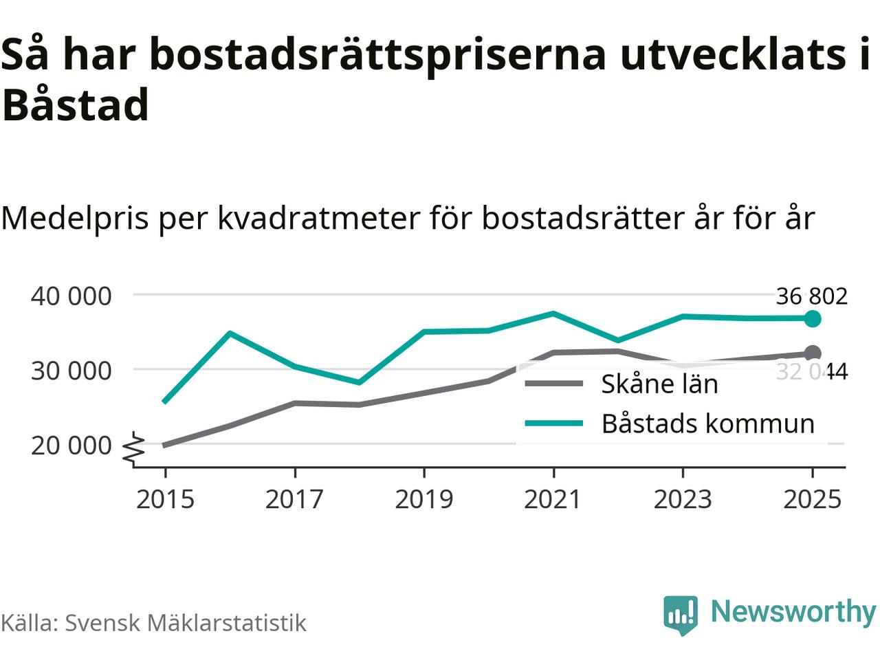 Det såldes totalt 113 bostadsrätter i Båstads kommun under året. Genomsnittspriset per kvadratmeter landade på 36 802 kronor, vilket är ungefär samma nivå som förra året.
