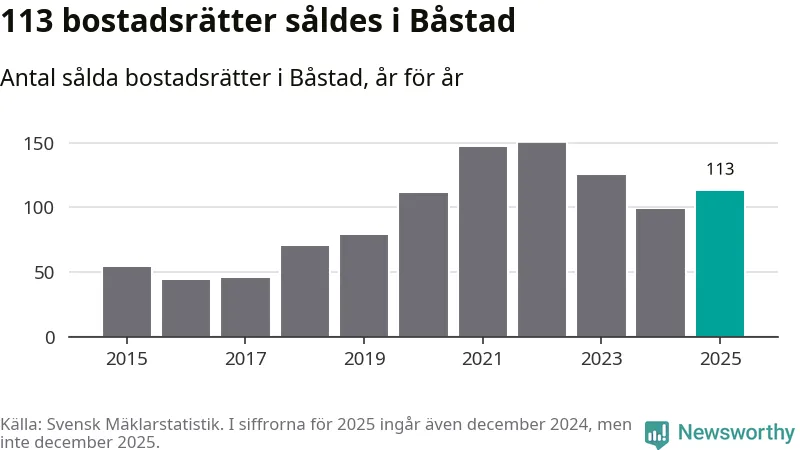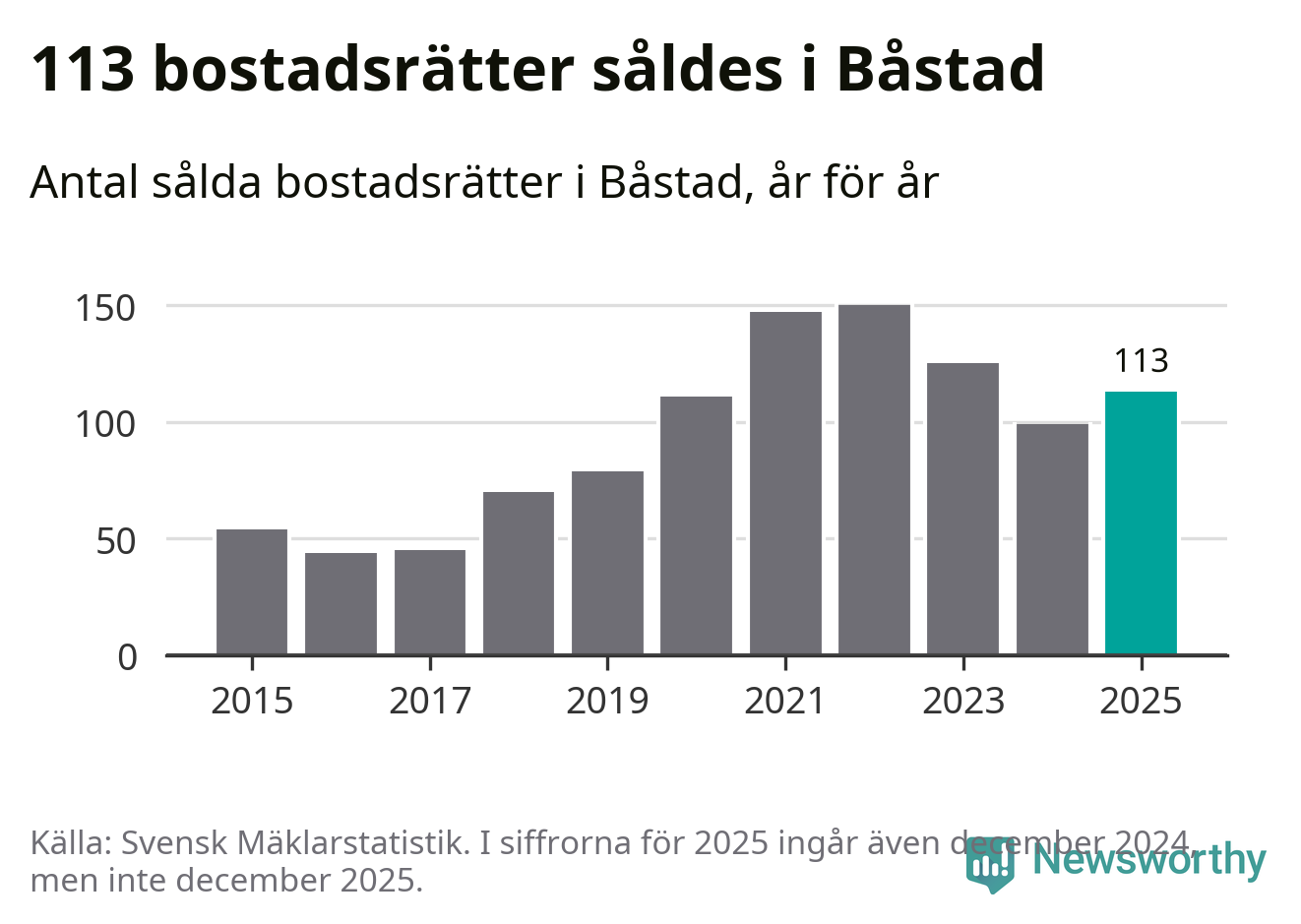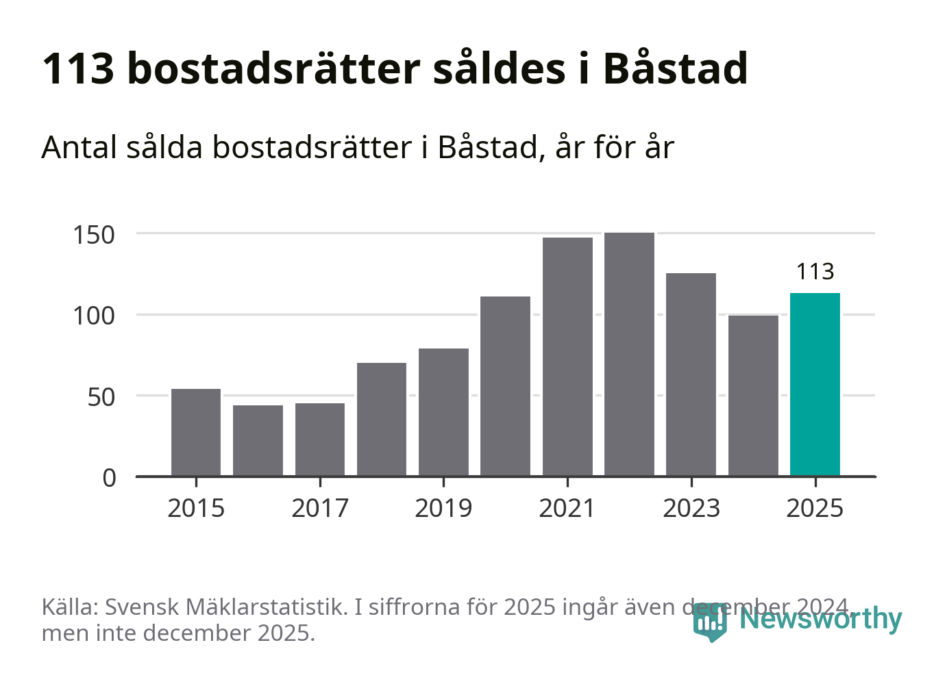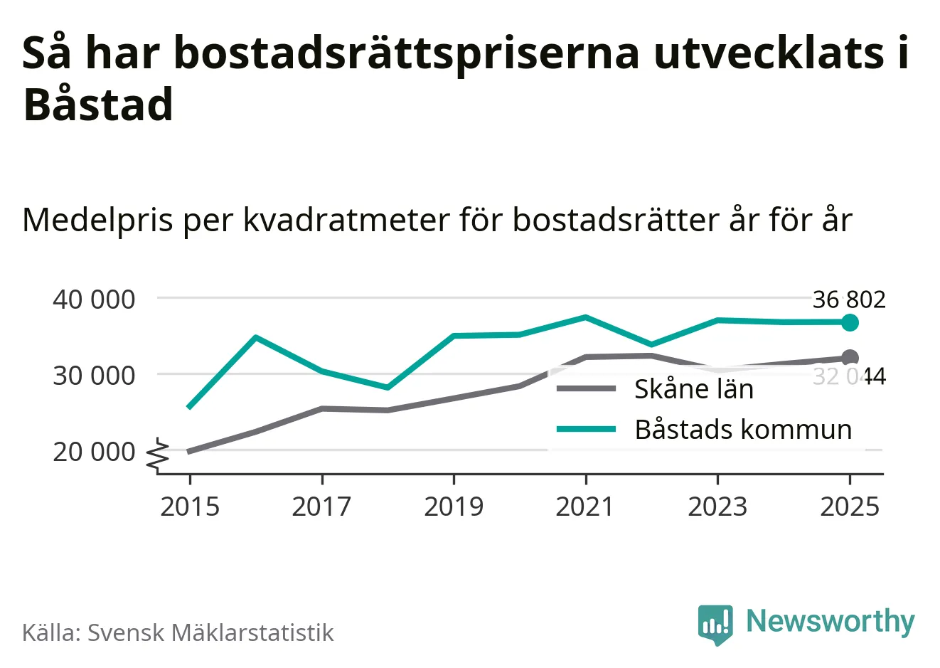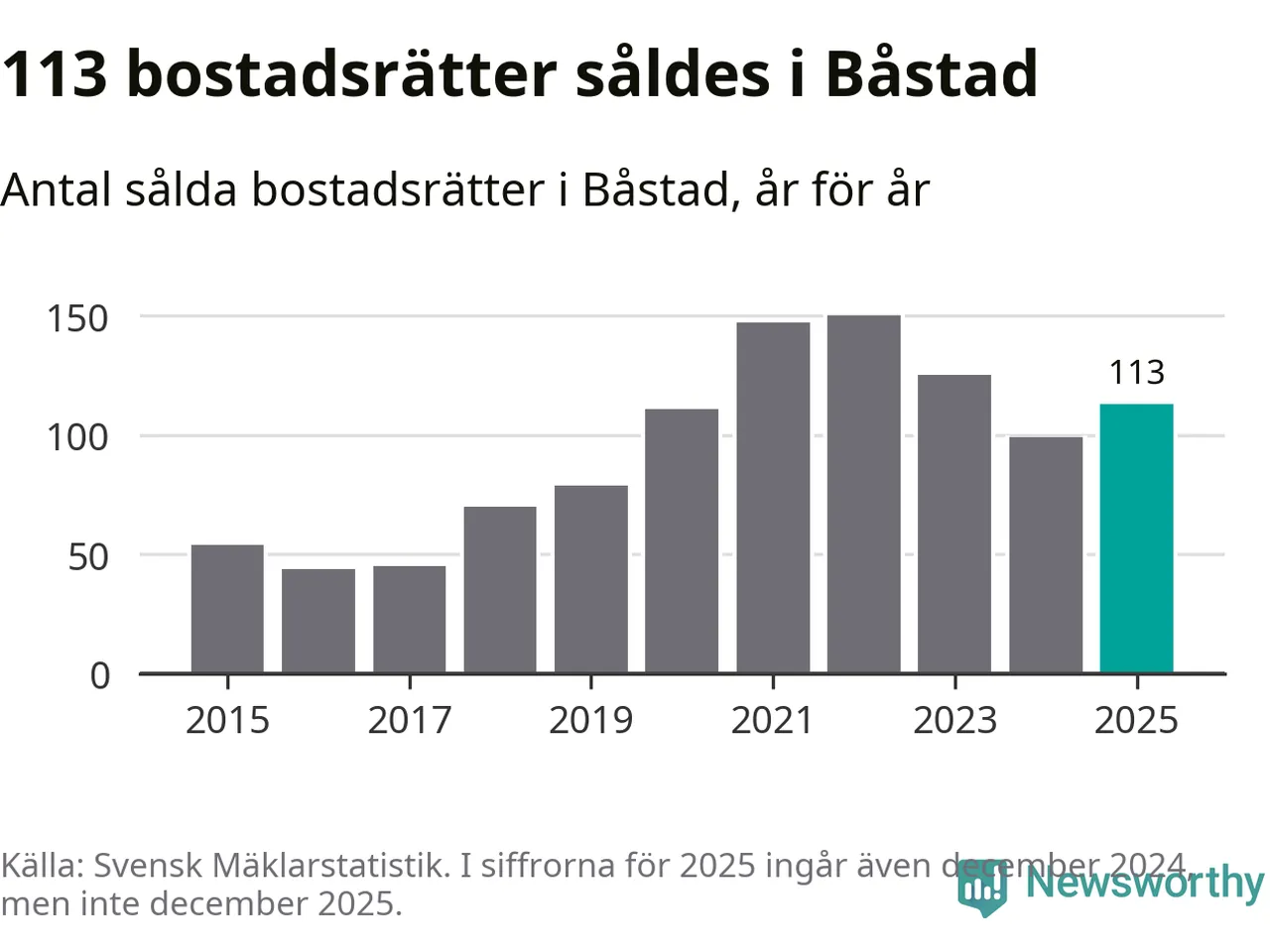 Det såldes totalt 113 bostadsrätter i Båstads kommun under året. Genomsnittspriset per kvadratmeter landade på 36 802 kronor, vilket är ungefär samma nivå som förra året.