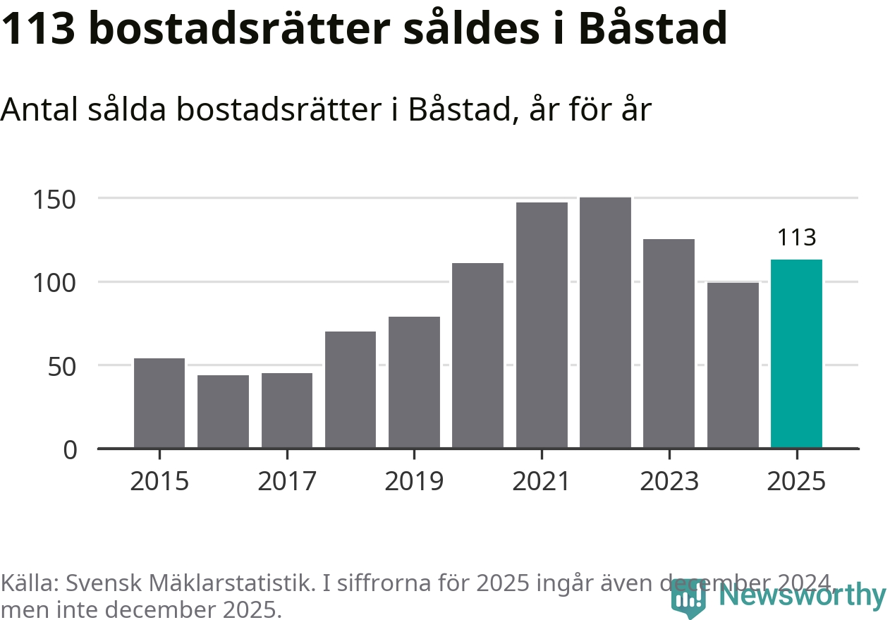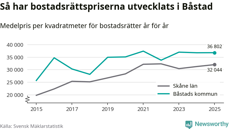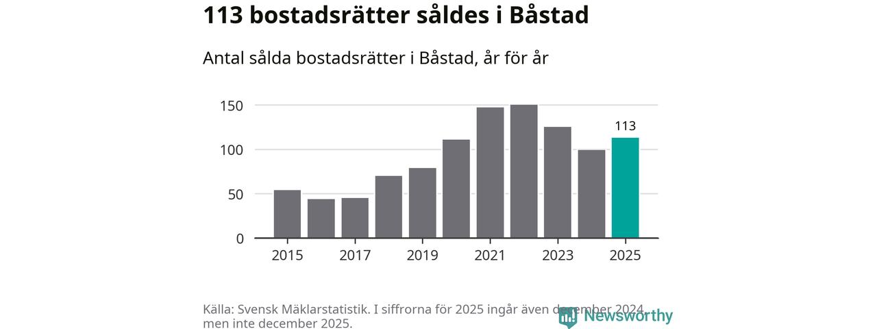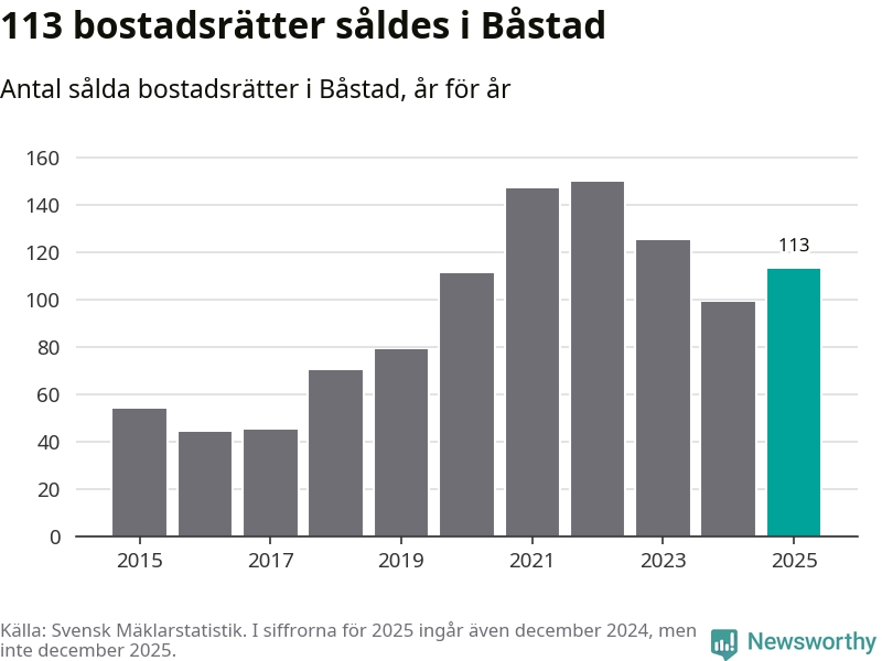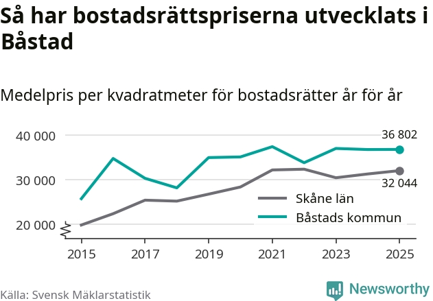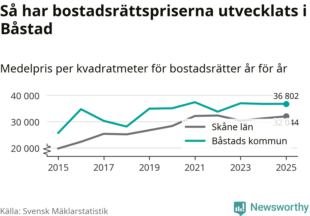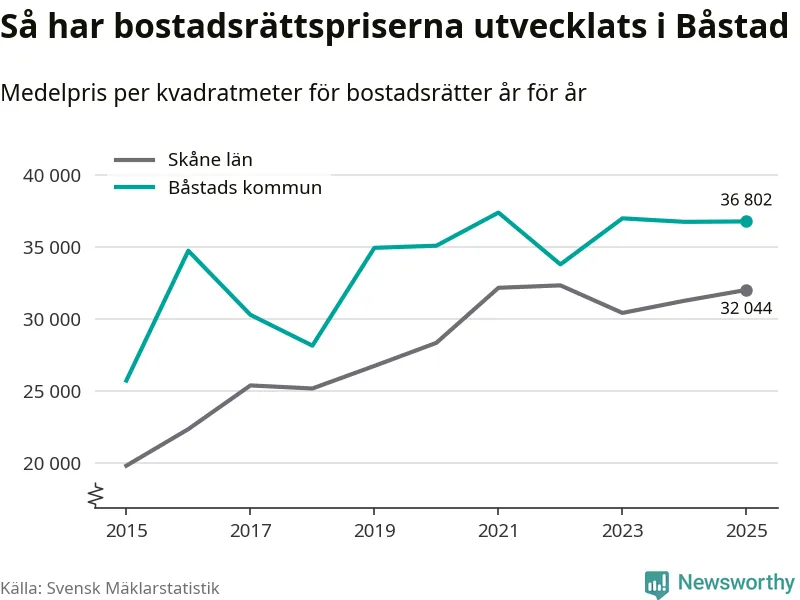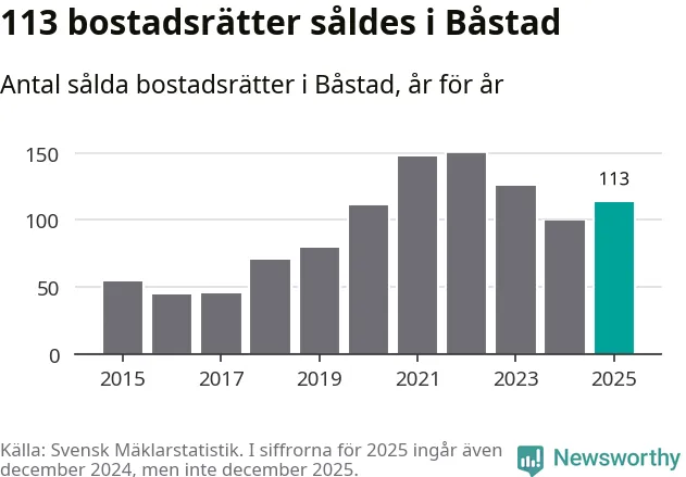 Det såldes totalt 113 bostadsrätter i Båstads kommun under året. Genomsnittspriset per kvadratmeter landade på 36 802 kronor, vilket är ungefär samma nivå som förra året.