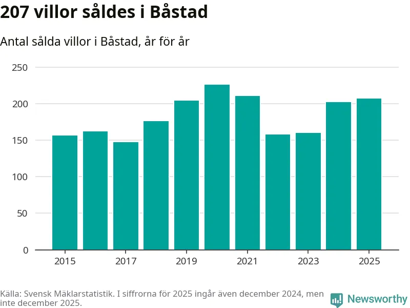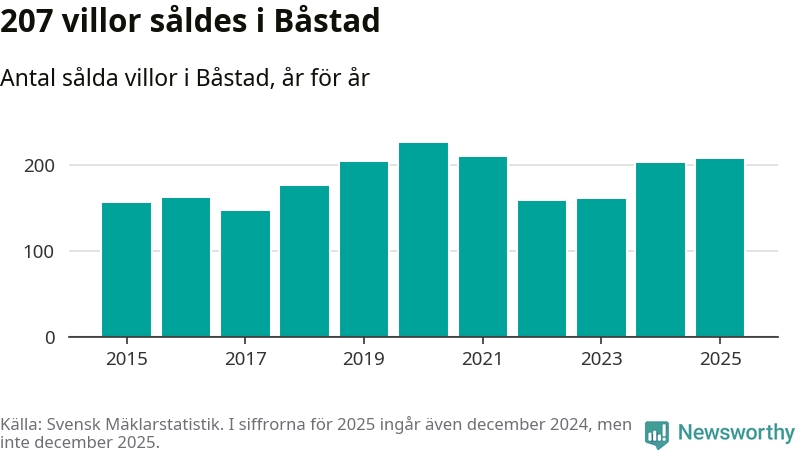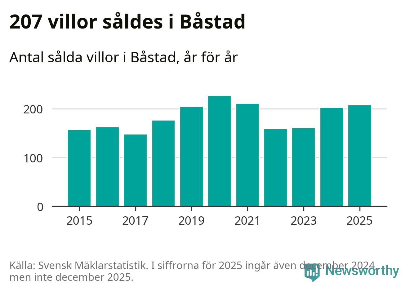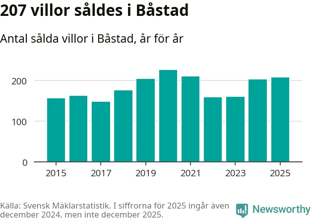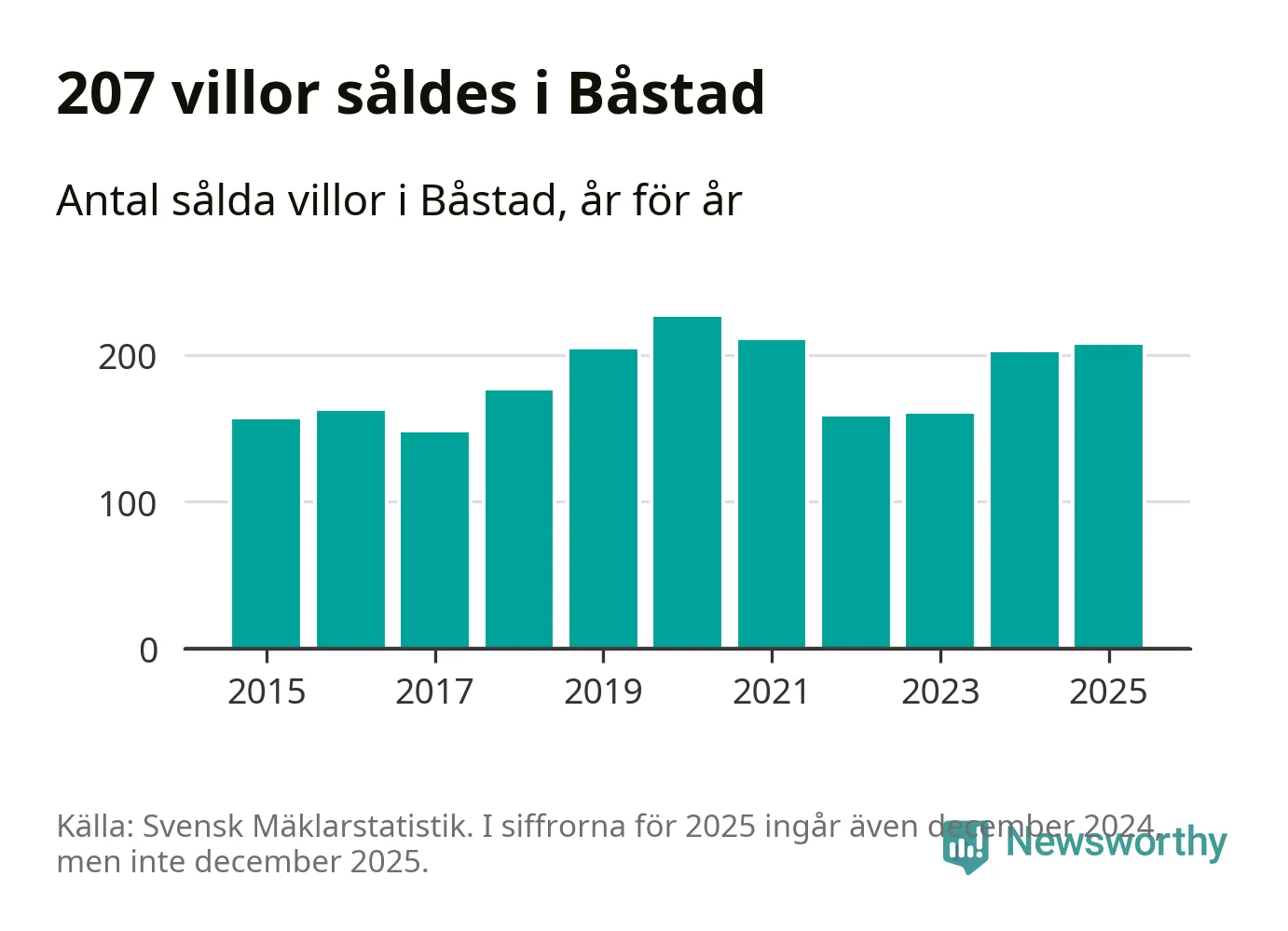 Antalet sålda villor ökade också. Totalt såldes 207 villor, att jämföra med 202 under 2024. Det är tredje året i rad som antalet sålda villor ökar i kommunen.
