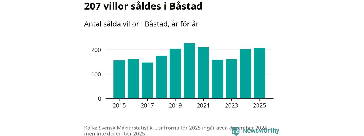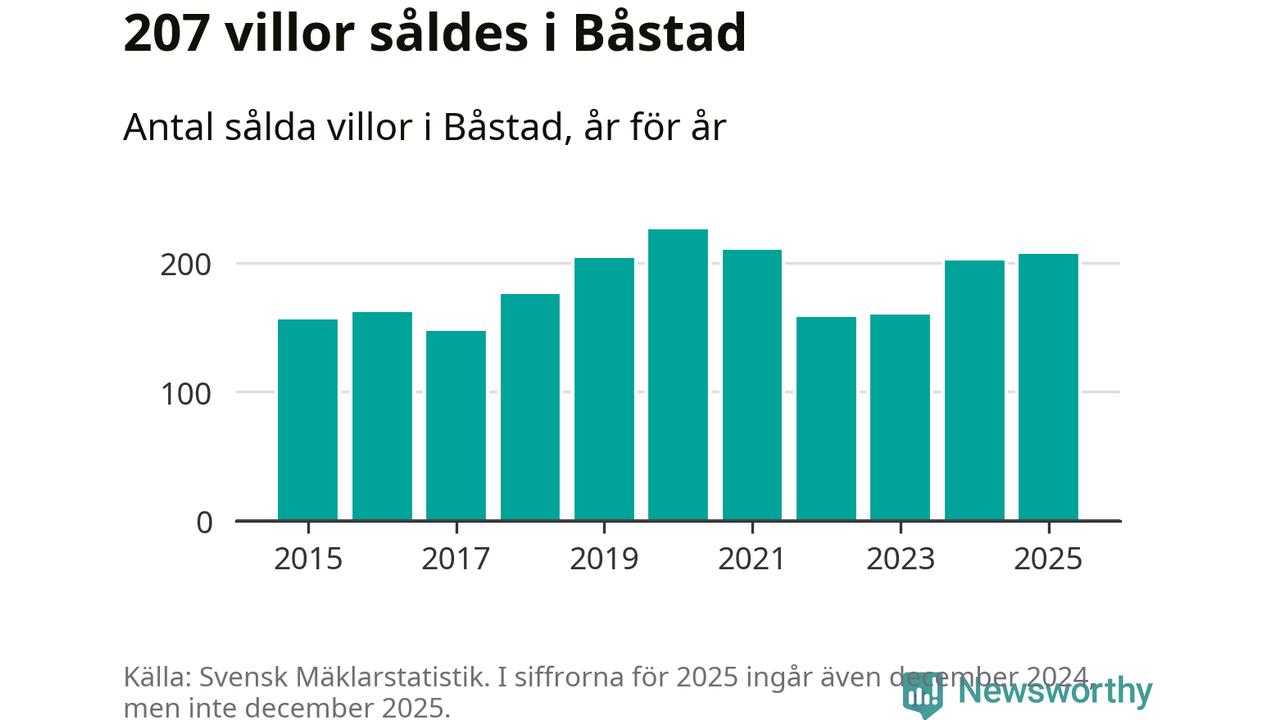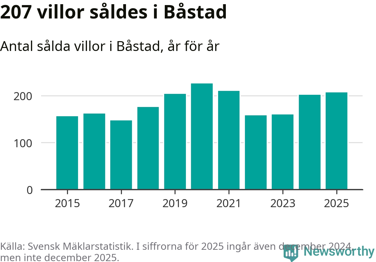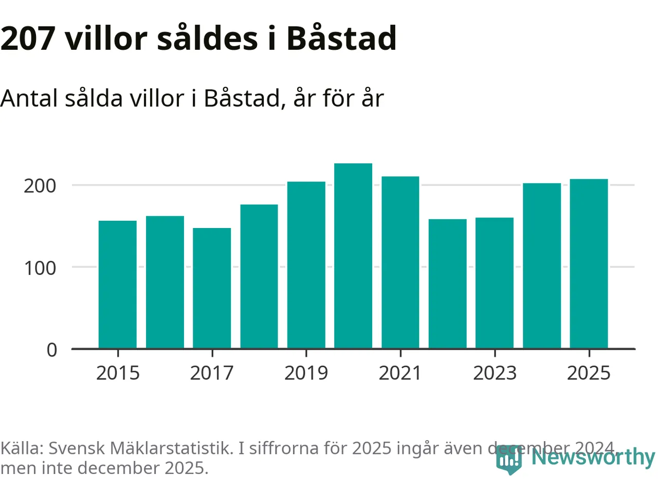 Antalet sålda villor ökade också. Totalt såldes 207 villor, att jämföra med 202 under 2024. Det är tredje året i rad som antalet sålda villor ökar i kommunen.