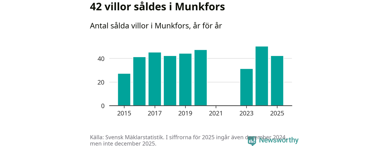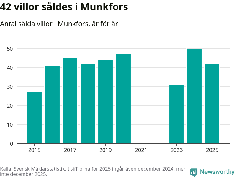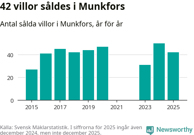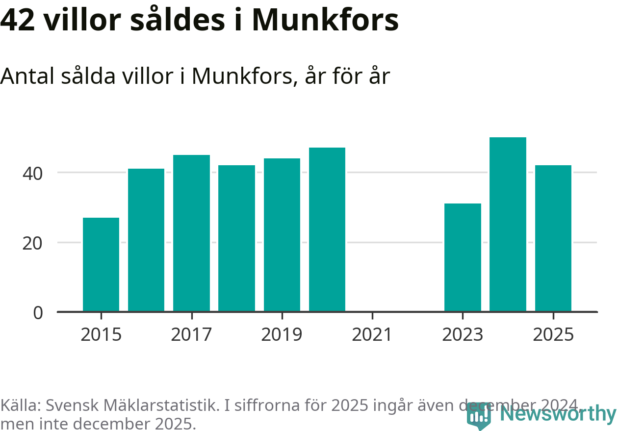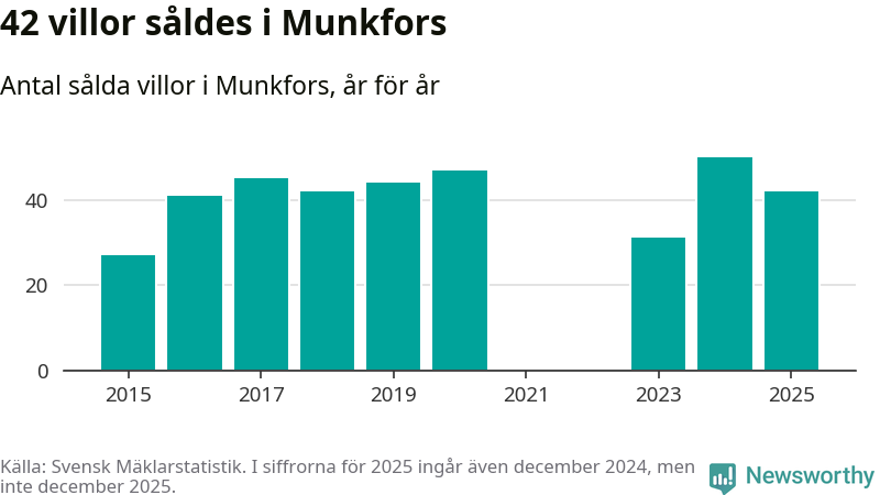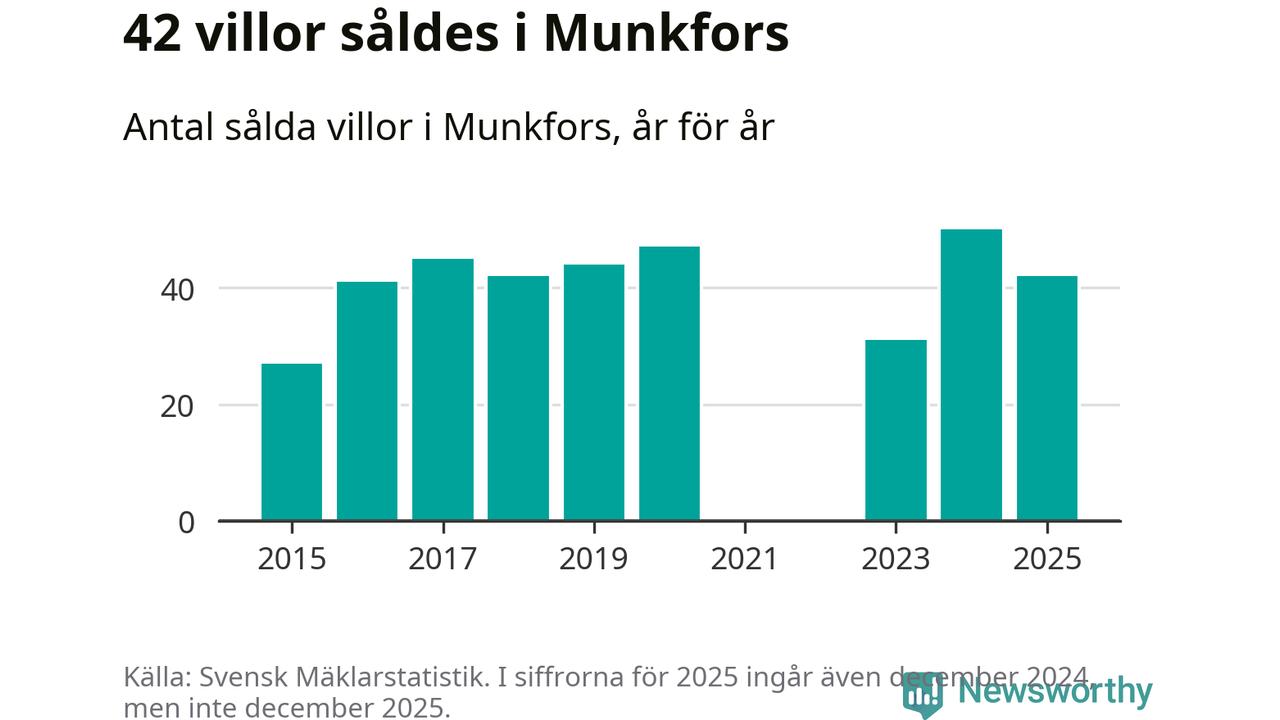 Däremot minskade antalet sålda villor. Totalt såldes 42 villor, att jämföra med 50 under 2024.