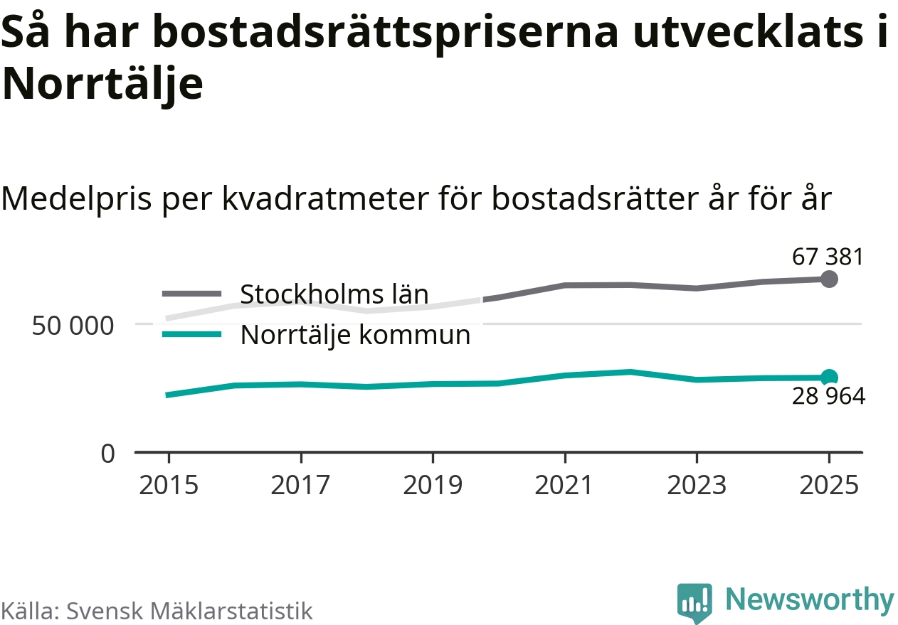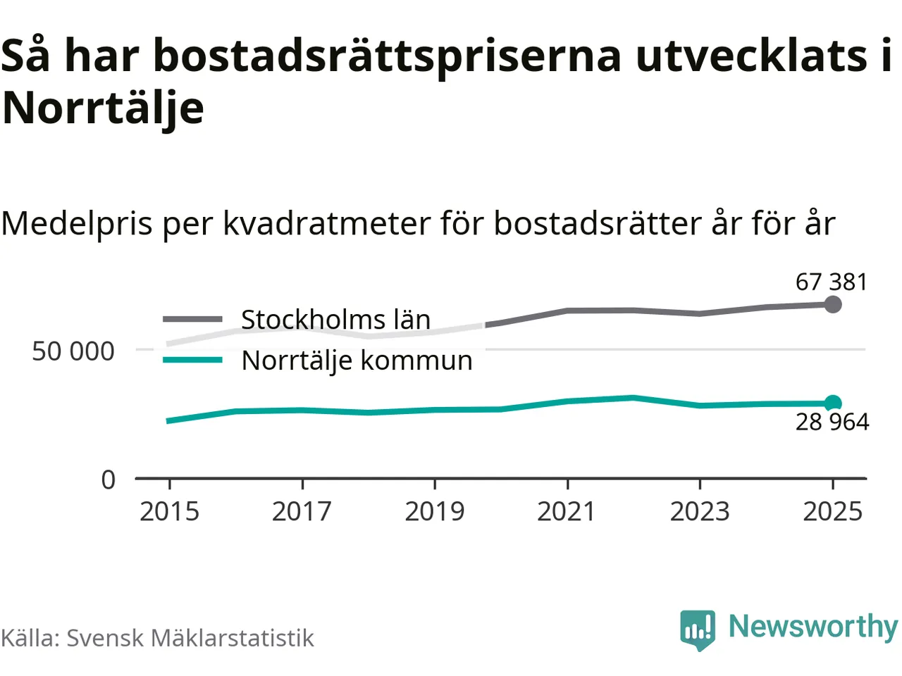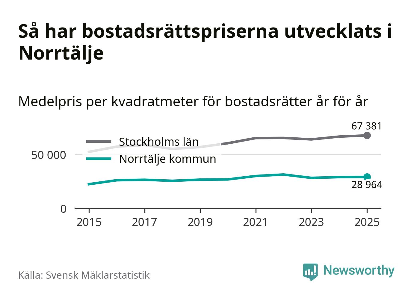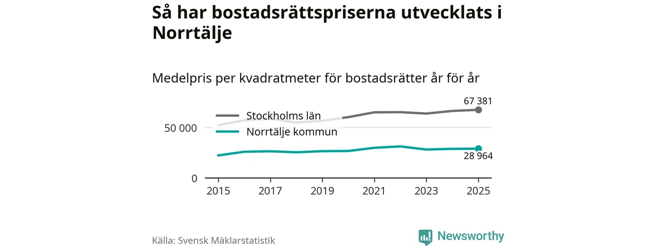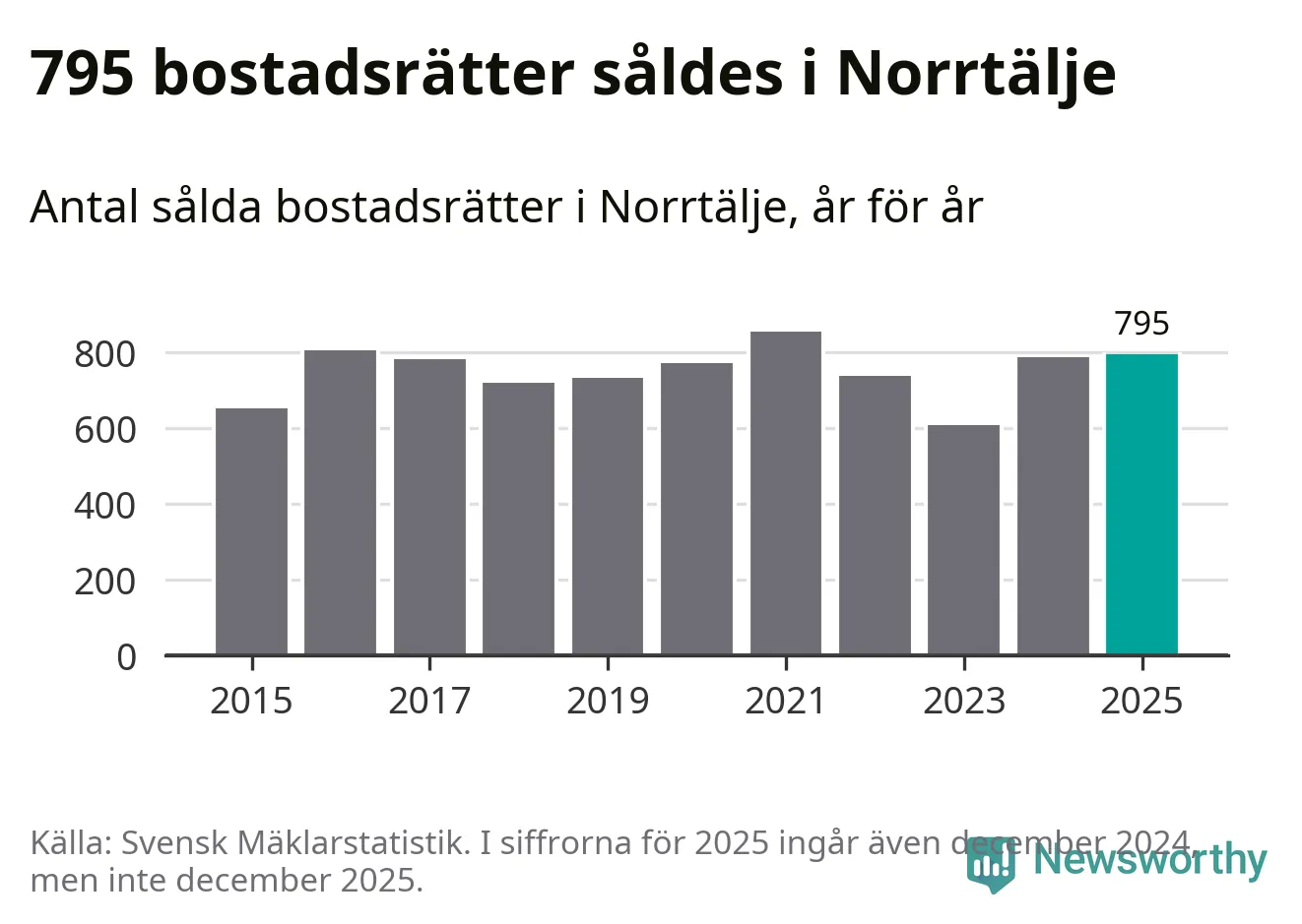 Det såldes totalt 795 bostadsrätter i Norrtälje kommun under året. Genomsnittspriset per kvadratmeter landade på 28 964 kronor, vilket är ungefär samma nivå som förra året.