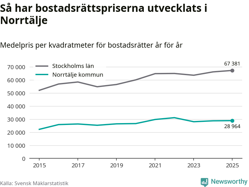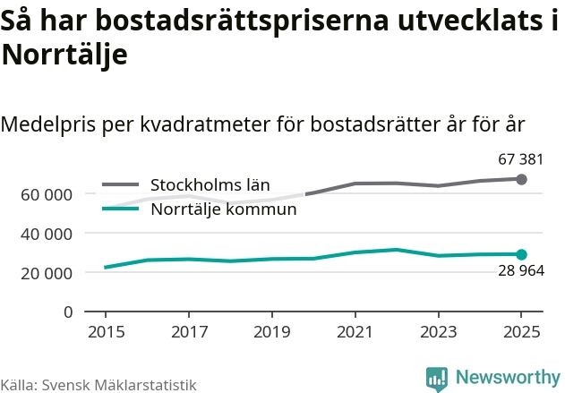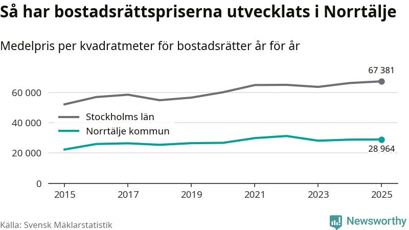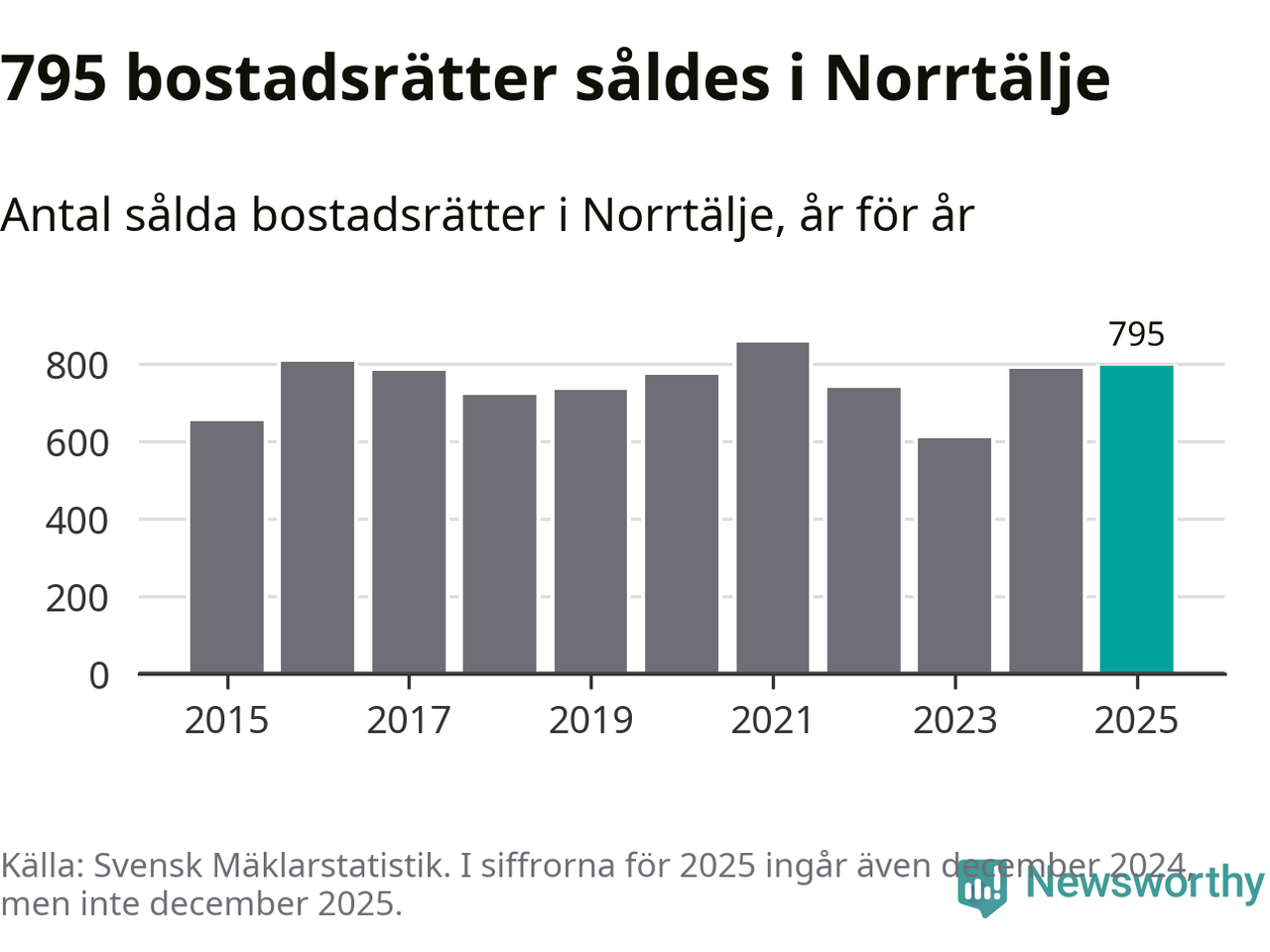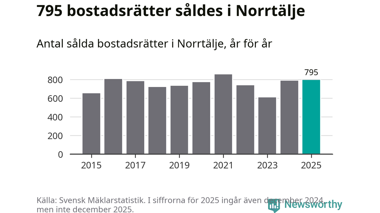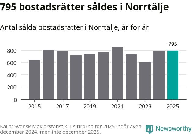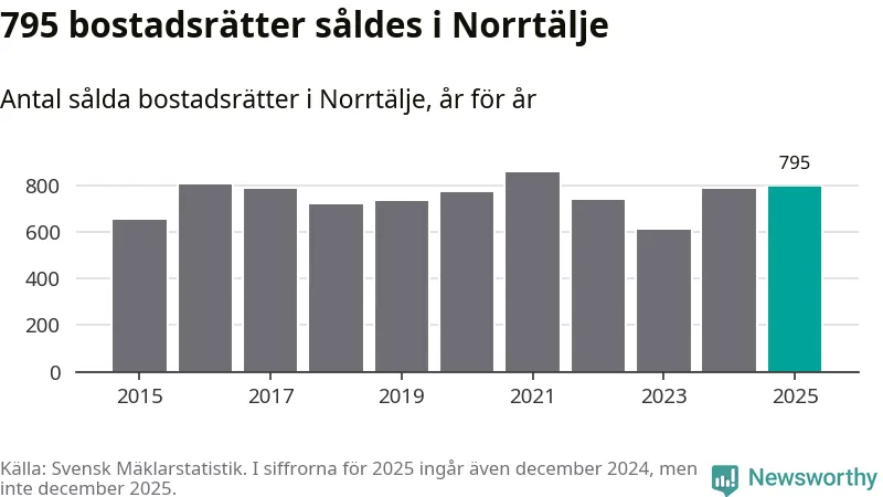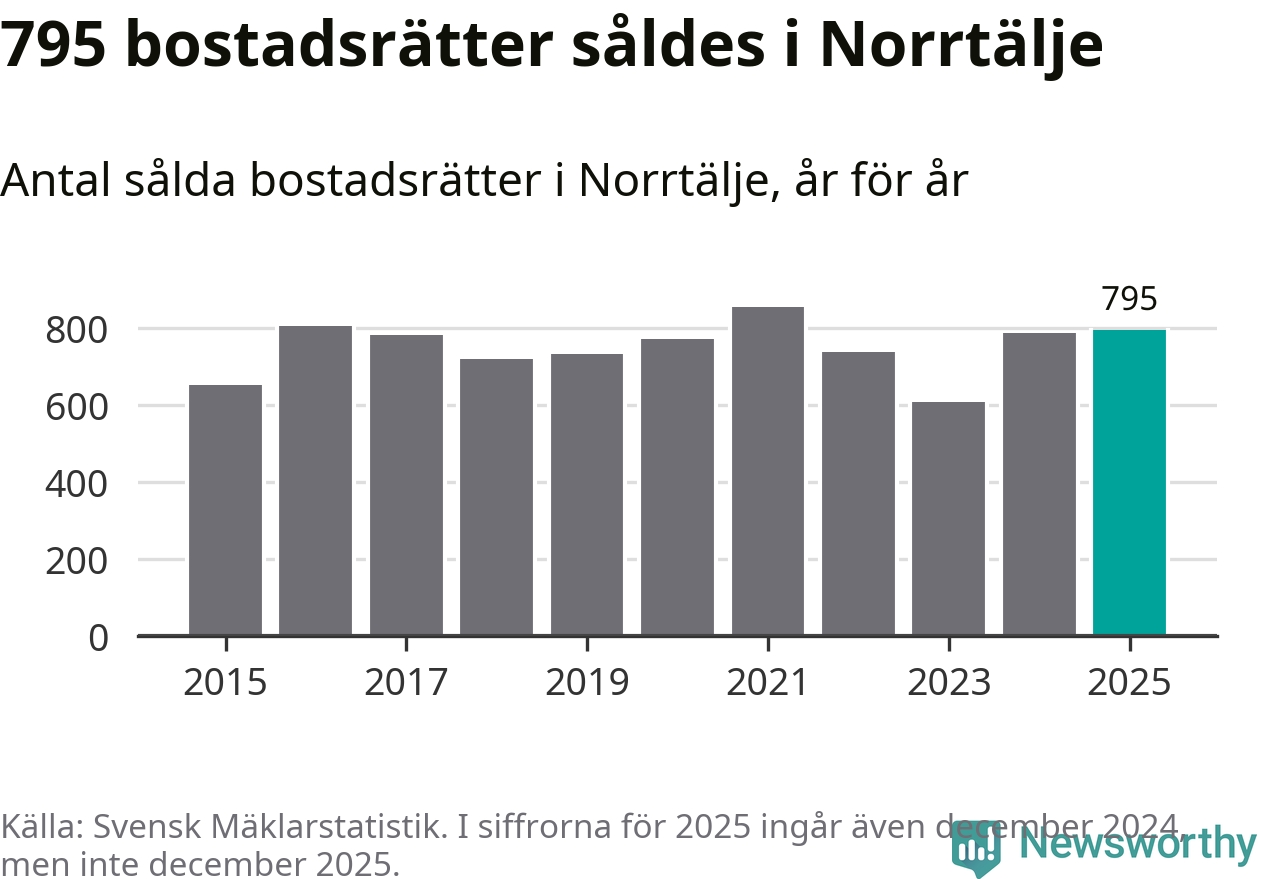 Det såldes totalt 795 bostadsrätter i Norrtälje kommun under året. Genomsnittspriset per kvadratmeter landade på 28 964 kronor, vilket är ungefär samma nivå som förra året.