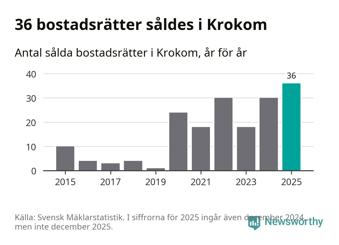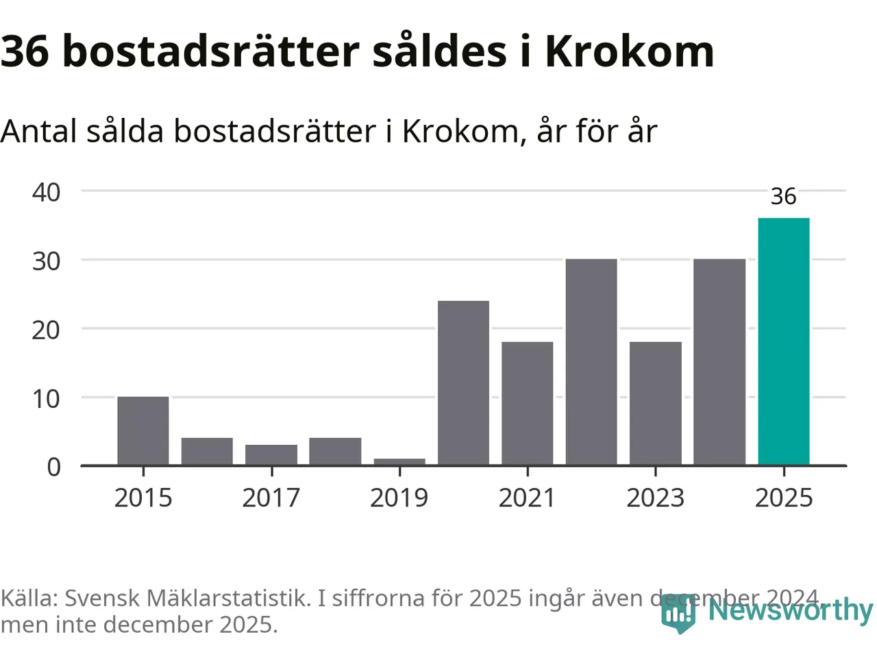 Det visar årsstatistik från Svensk Mäklarstatistik som Newsworthy har sammanställt.