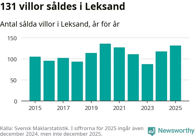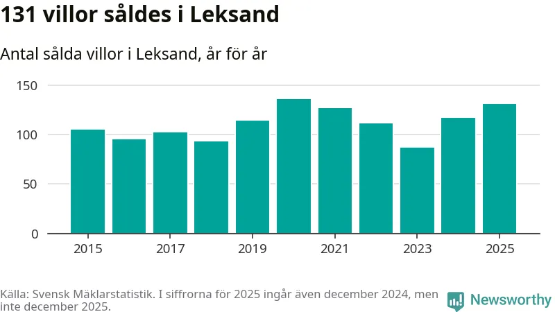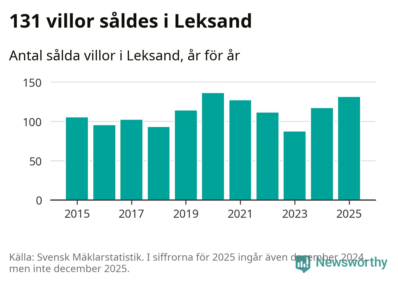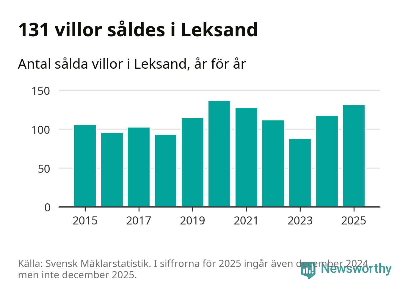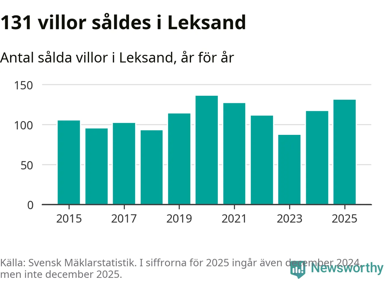 Däremot ökade antalet sålda villor. Totalt såldes 131 villor, att jämföra med 117 under 2024. Det är andra året i rad som antalet sålda villor ökar i kommunen.