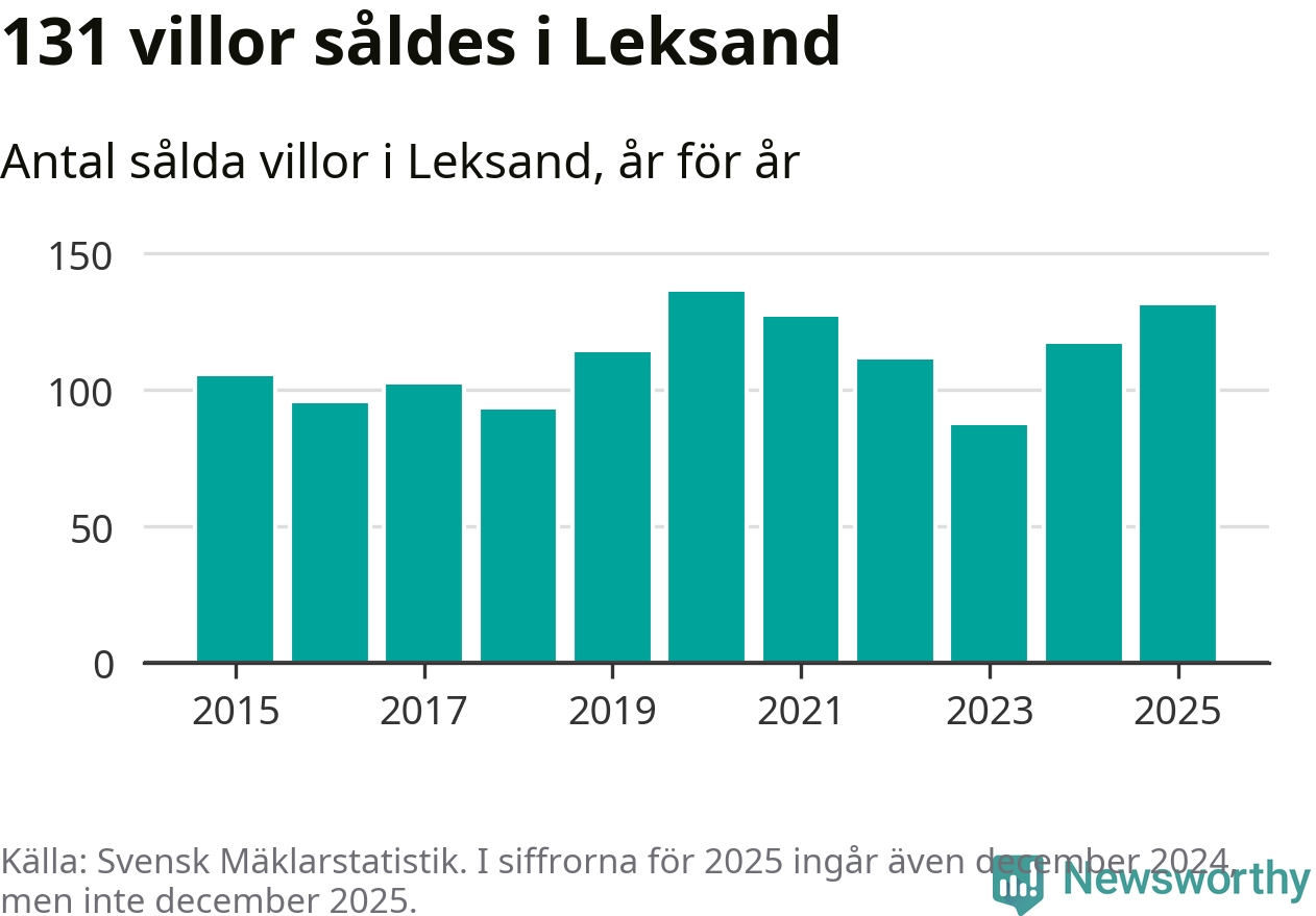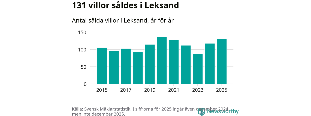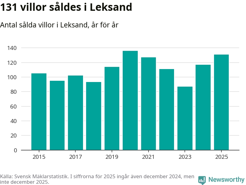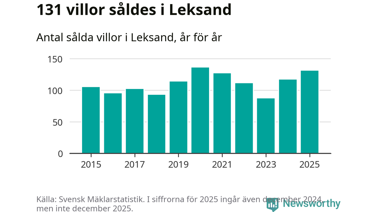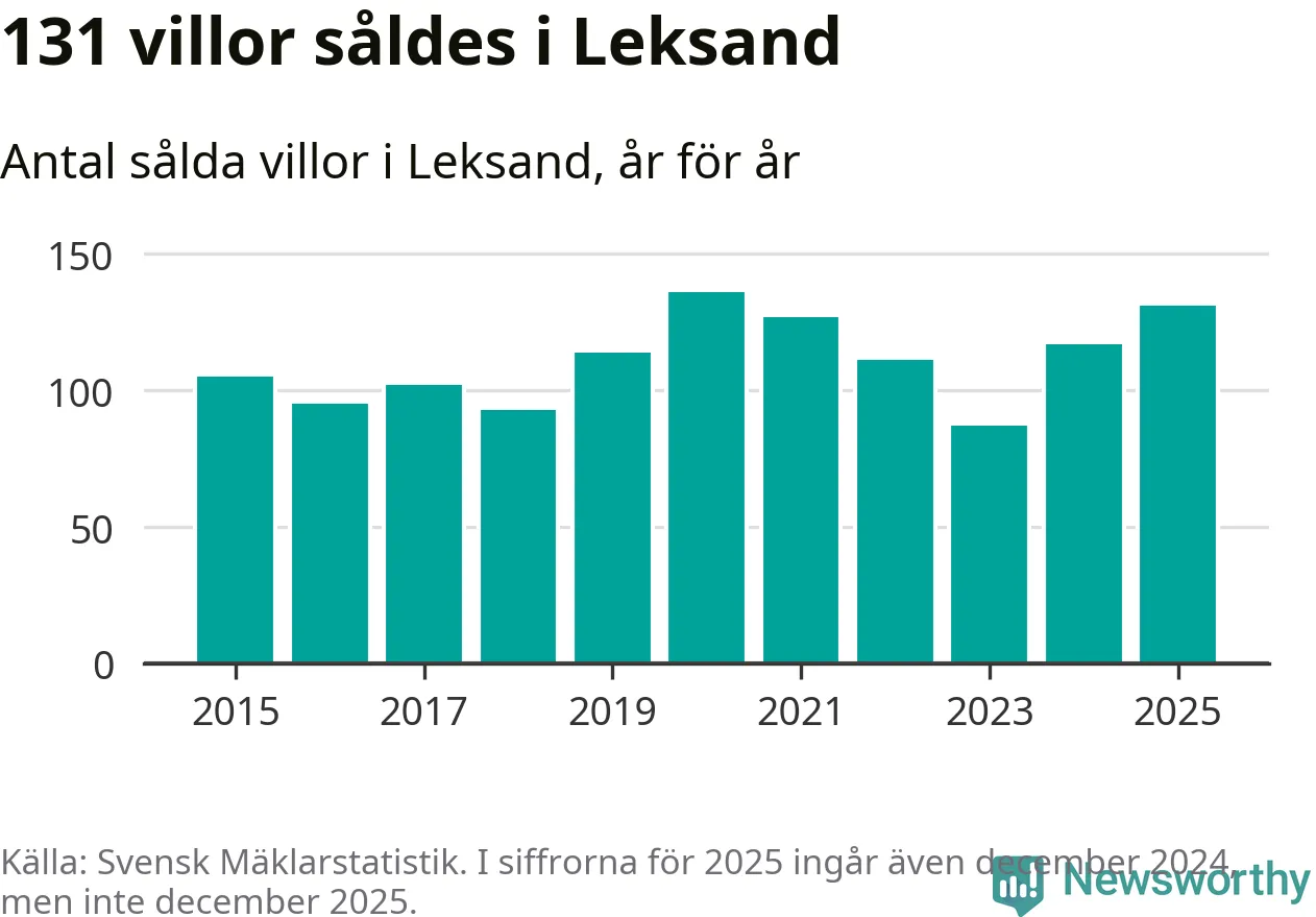 Däremot ökade antalet sålda villor. Totalt såldes 131 villor, att jämföra med 117 under 2024. Det är andra året i rad som antalet sålda villor ökar i kommunen.