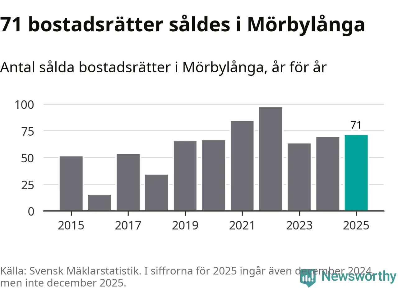 Det visar årsstatistik från Svensk Mäklarstatistik som Newsworthy har sammanställt.