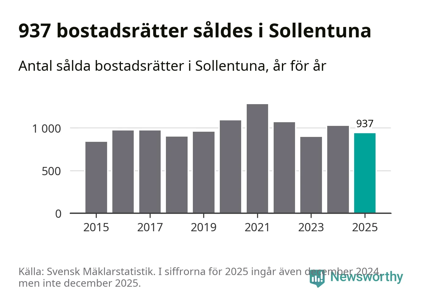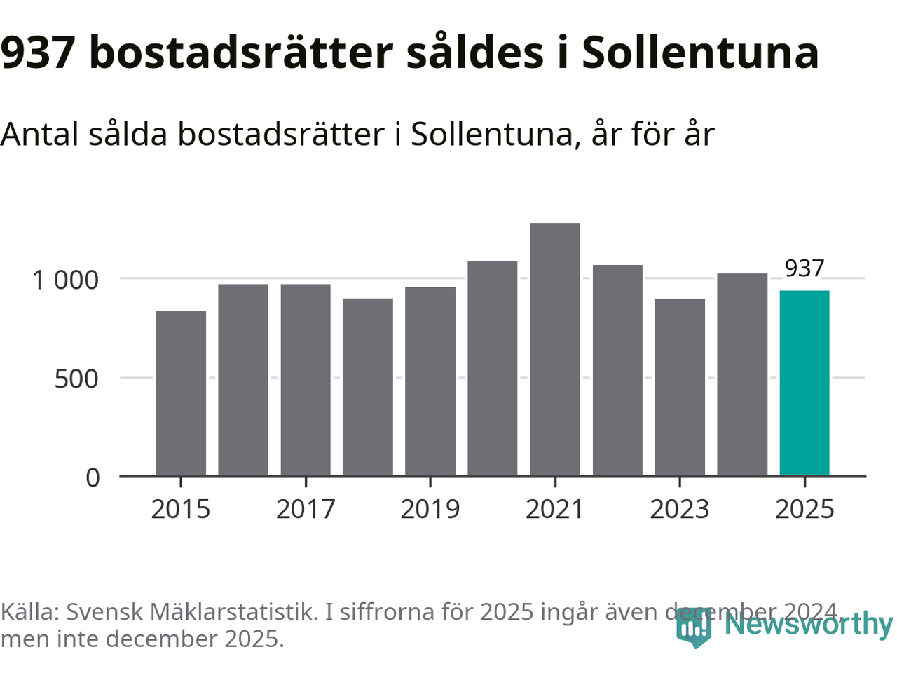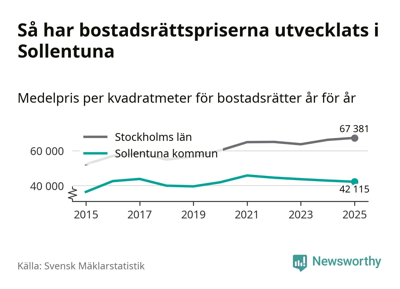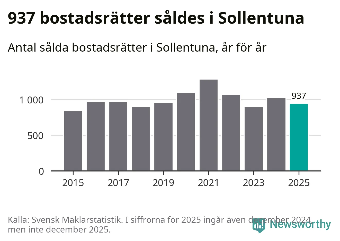 Det visar årsstatistik från Svensk Mäklarstatistik som Newsworthy har sammanställt.