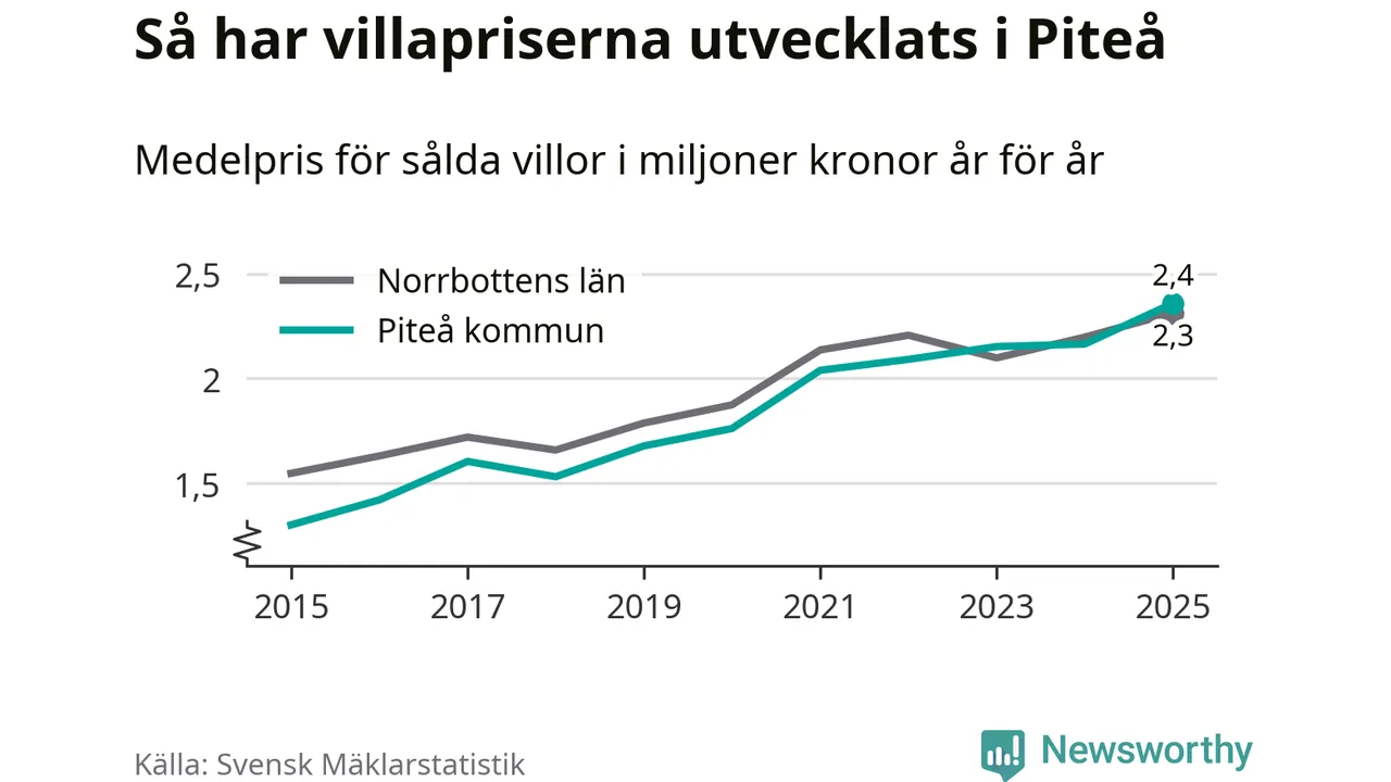 Bostadsmarknaden i Sverige närmar sig nivån före räntesmockan 2022. I Piteå nådde priserna på villor en ny rekordnivå.