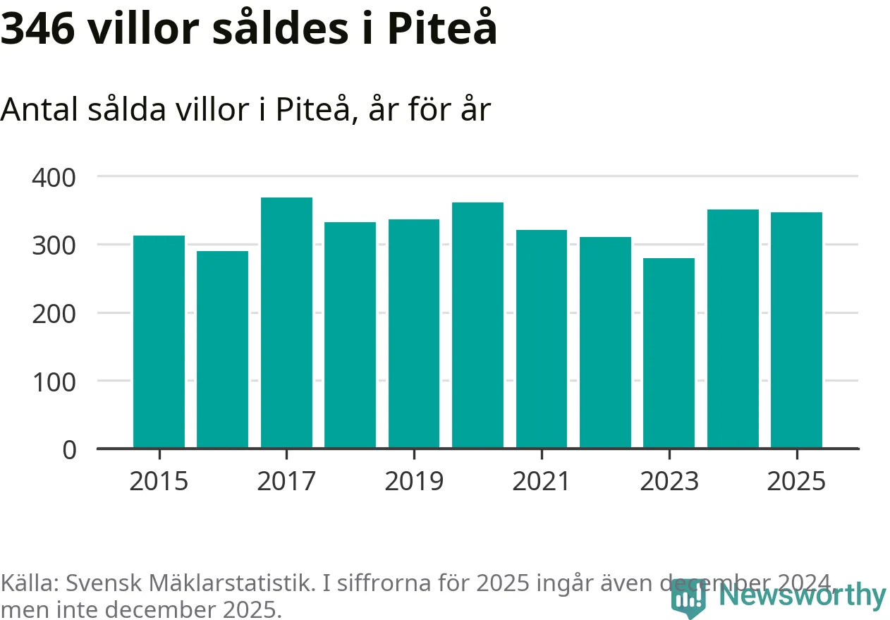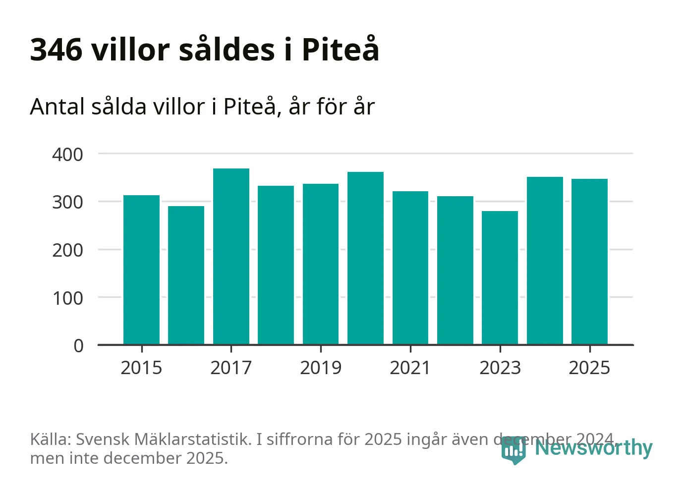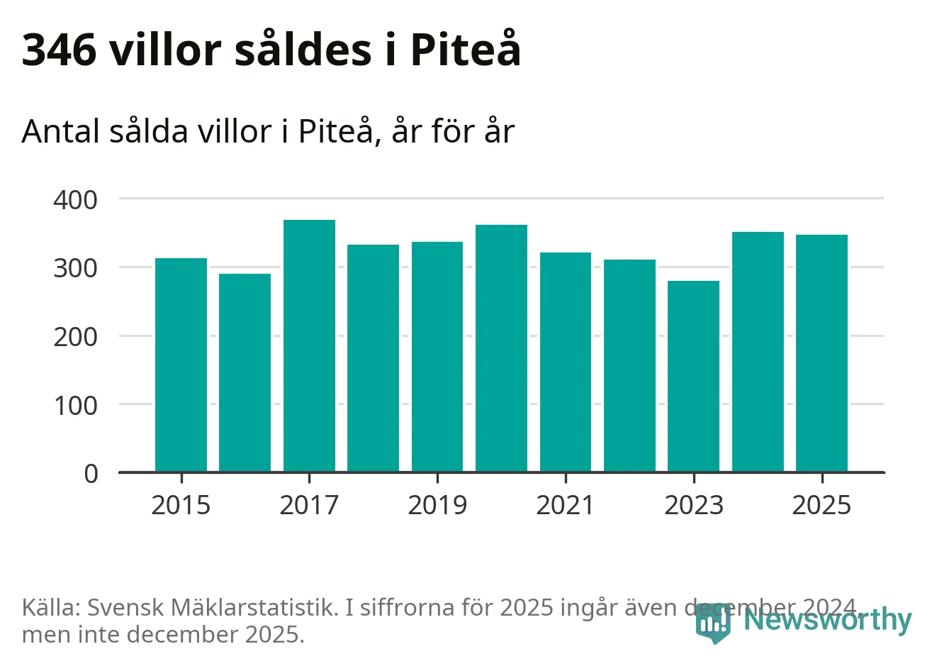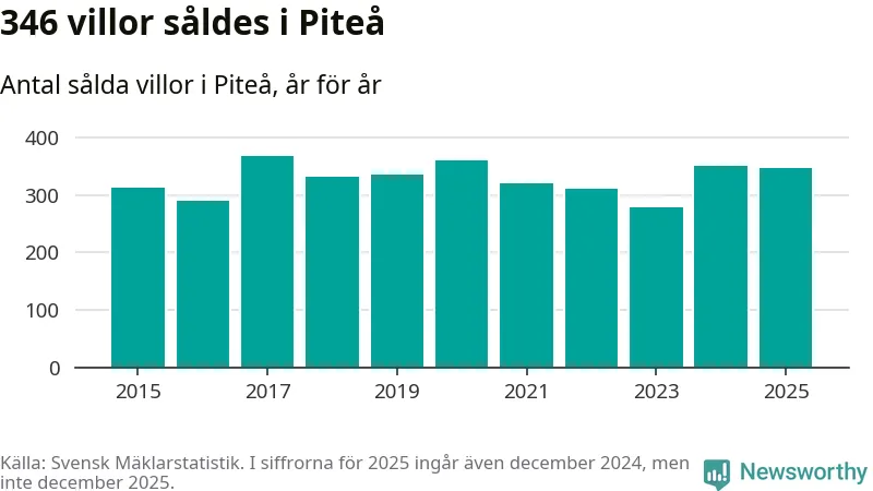 Däremot minskade antalet sålda villor något. Totalt såldes 346 villor, att jämföra med 350 under 2024.