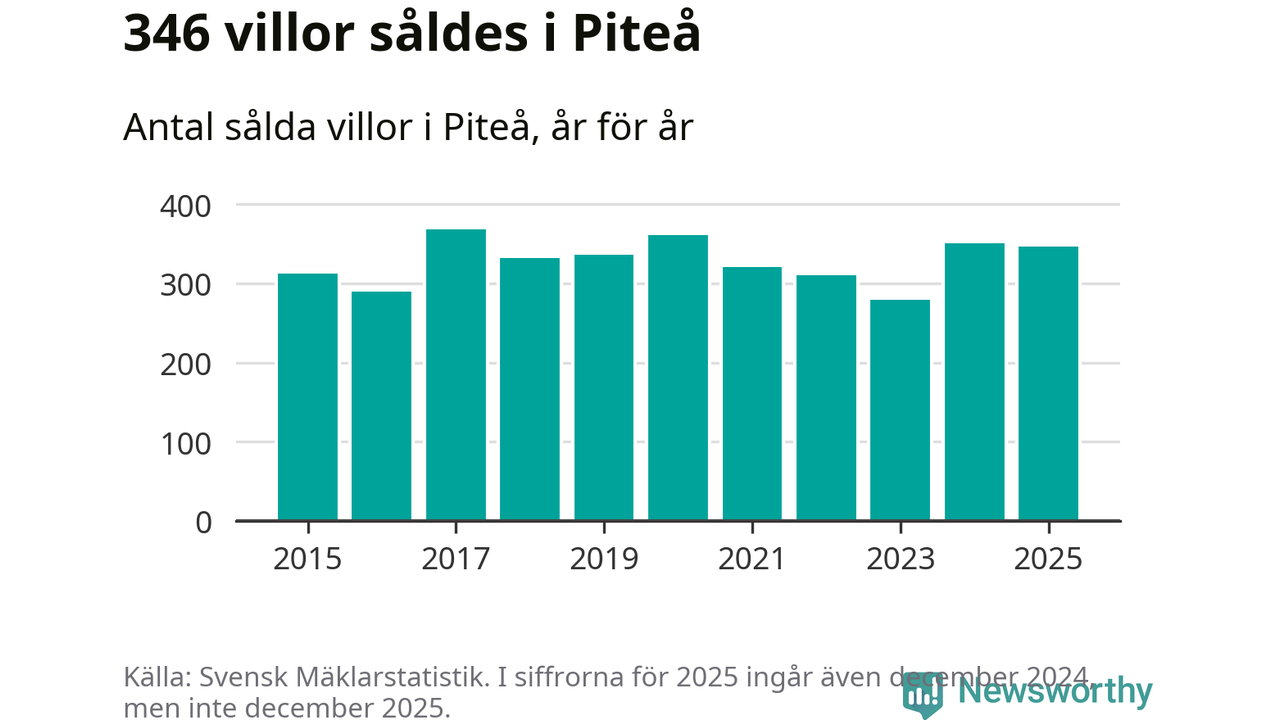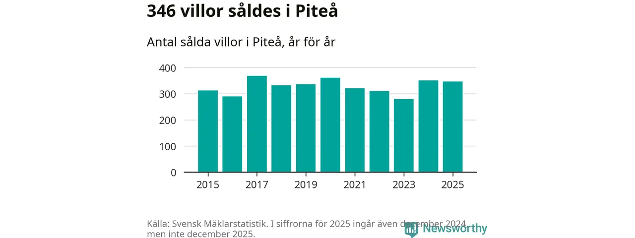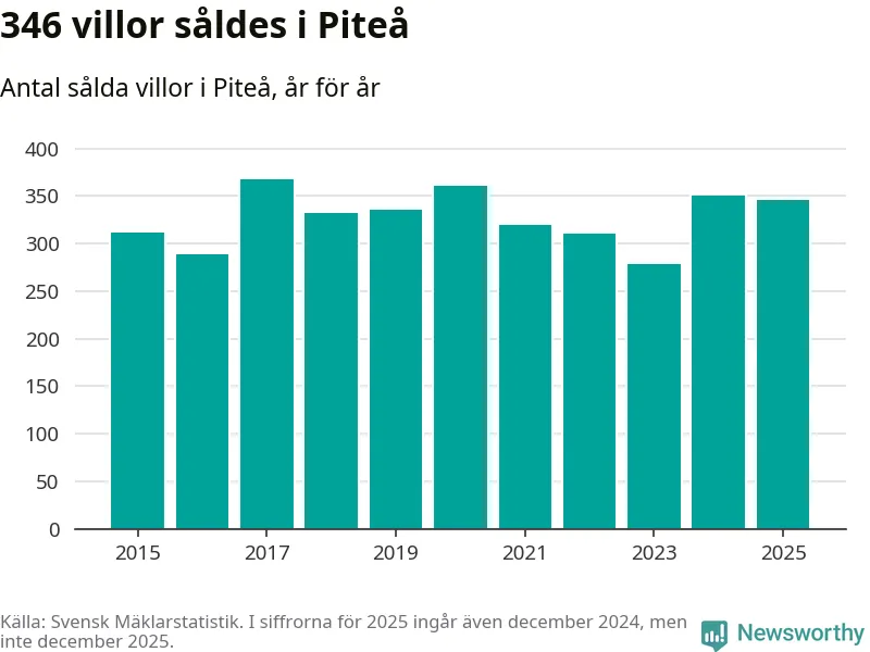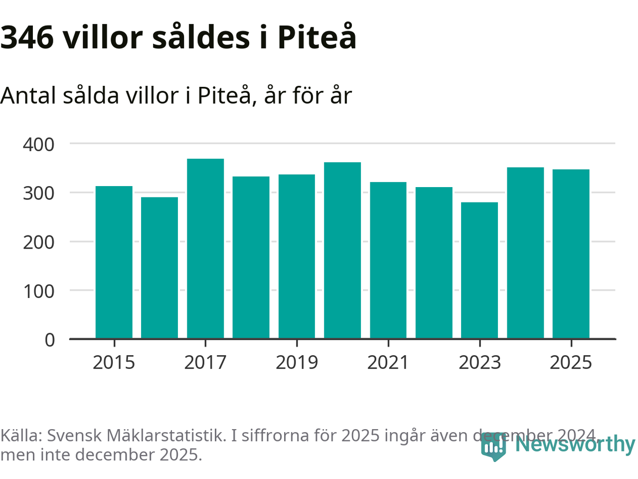 Däremot minskade antalet sålda villor något. Totalt såldes 346 villor, att jämföra med 350 under 2024.