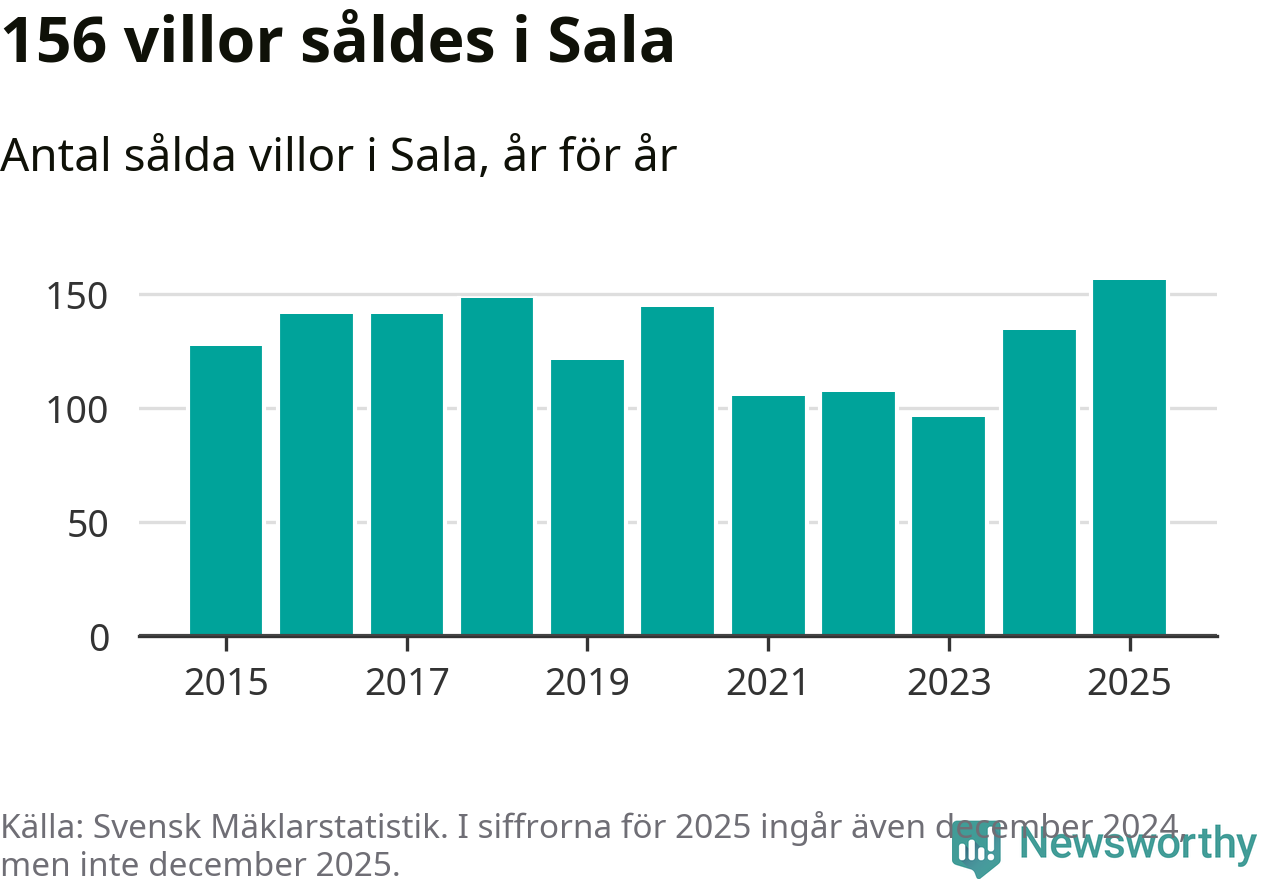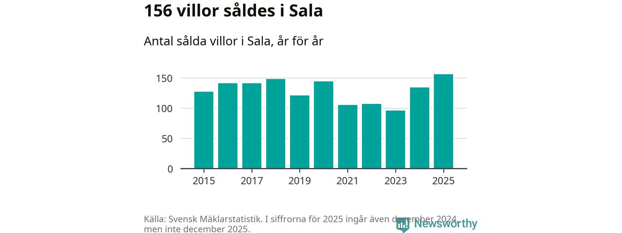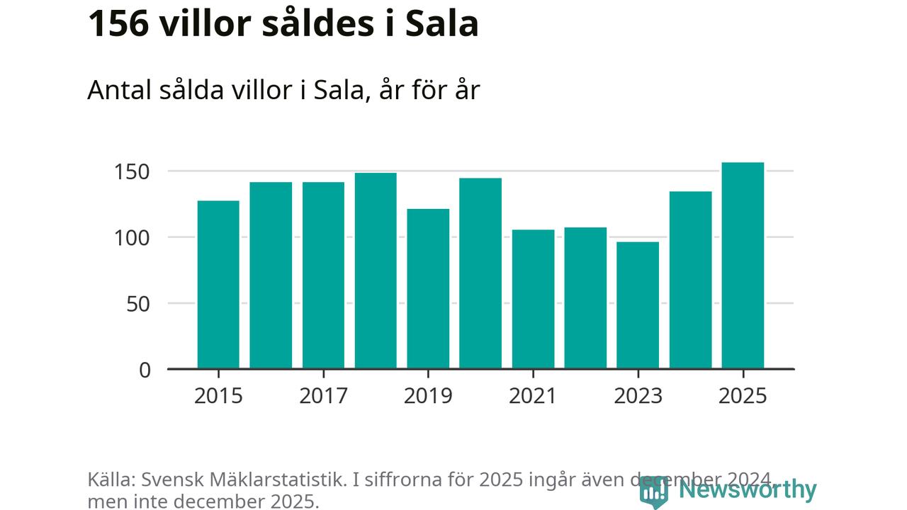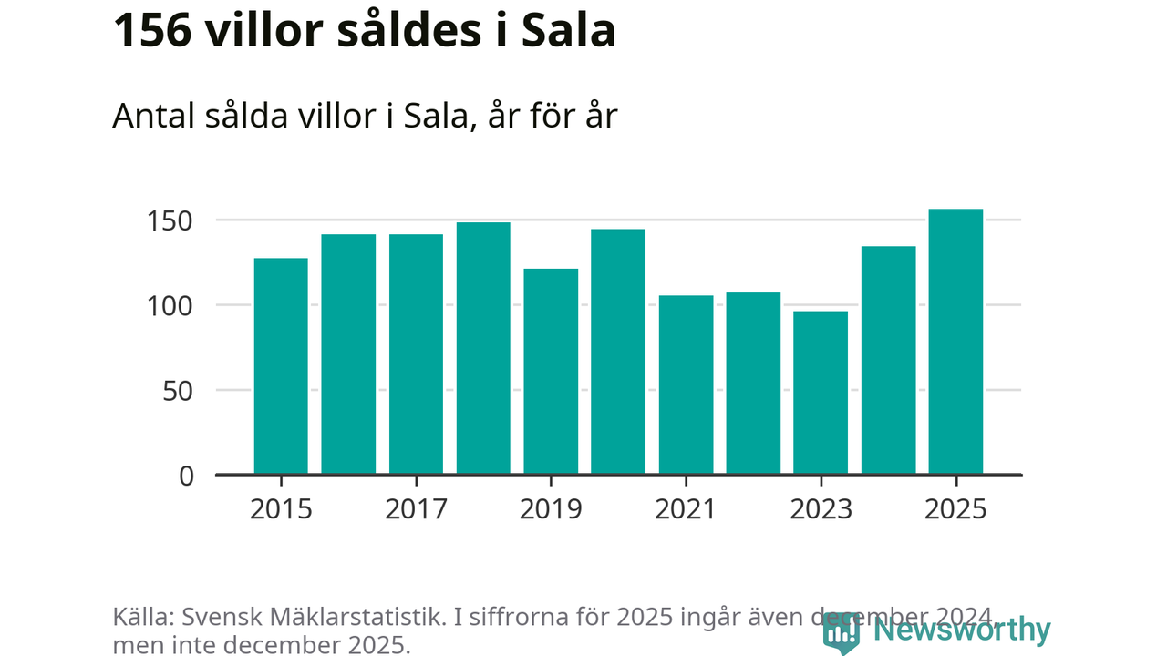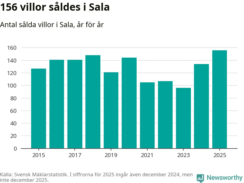 Däremot ökade antalet sålda villor. Totalt såldes 156 villor, att jämföra med 134 under 2024. Det är fler än något annat år sedan 2015.