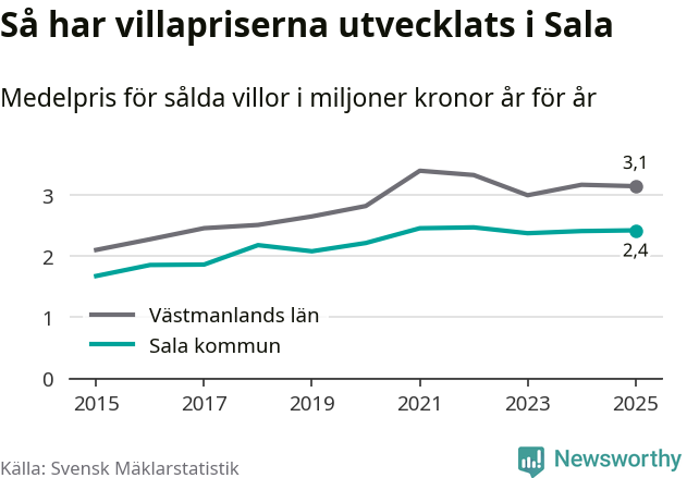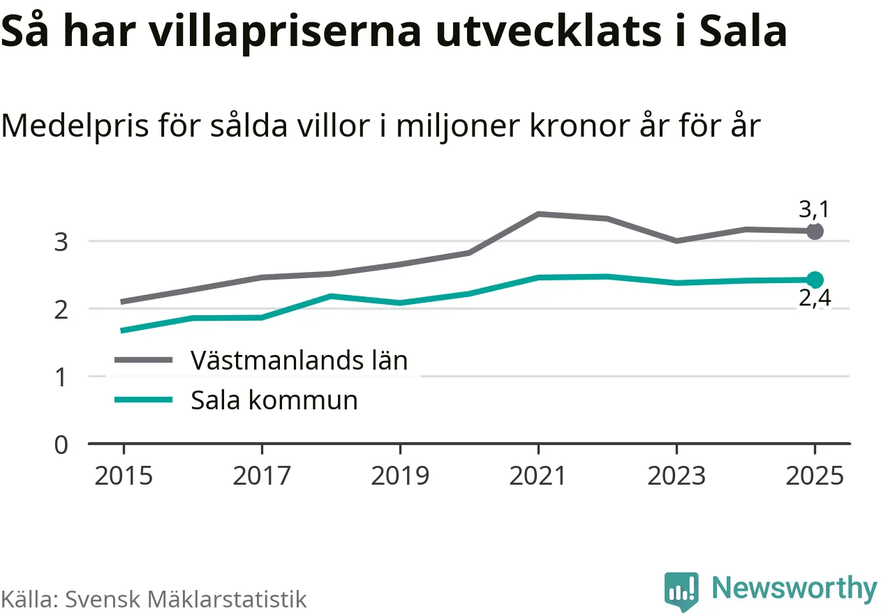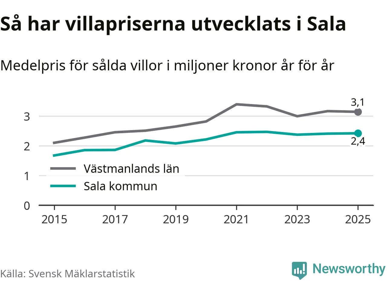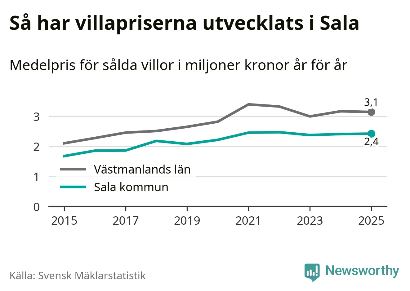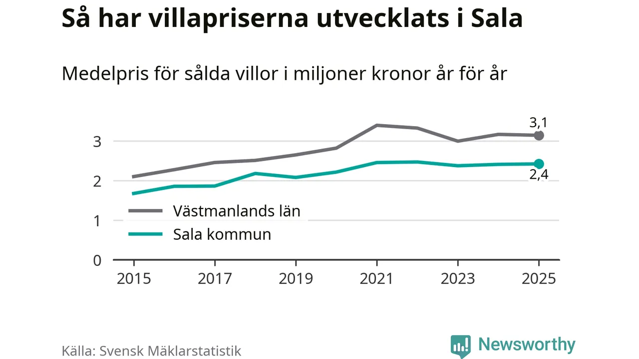 Bostadsmarknaden i Sverige närmar sig nivån före räntesmockan 2022. I Sala såldes fler villor än på över ett decennium.