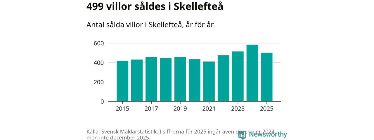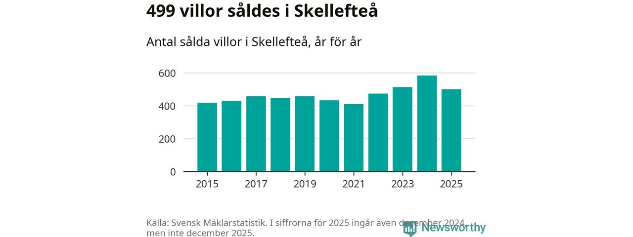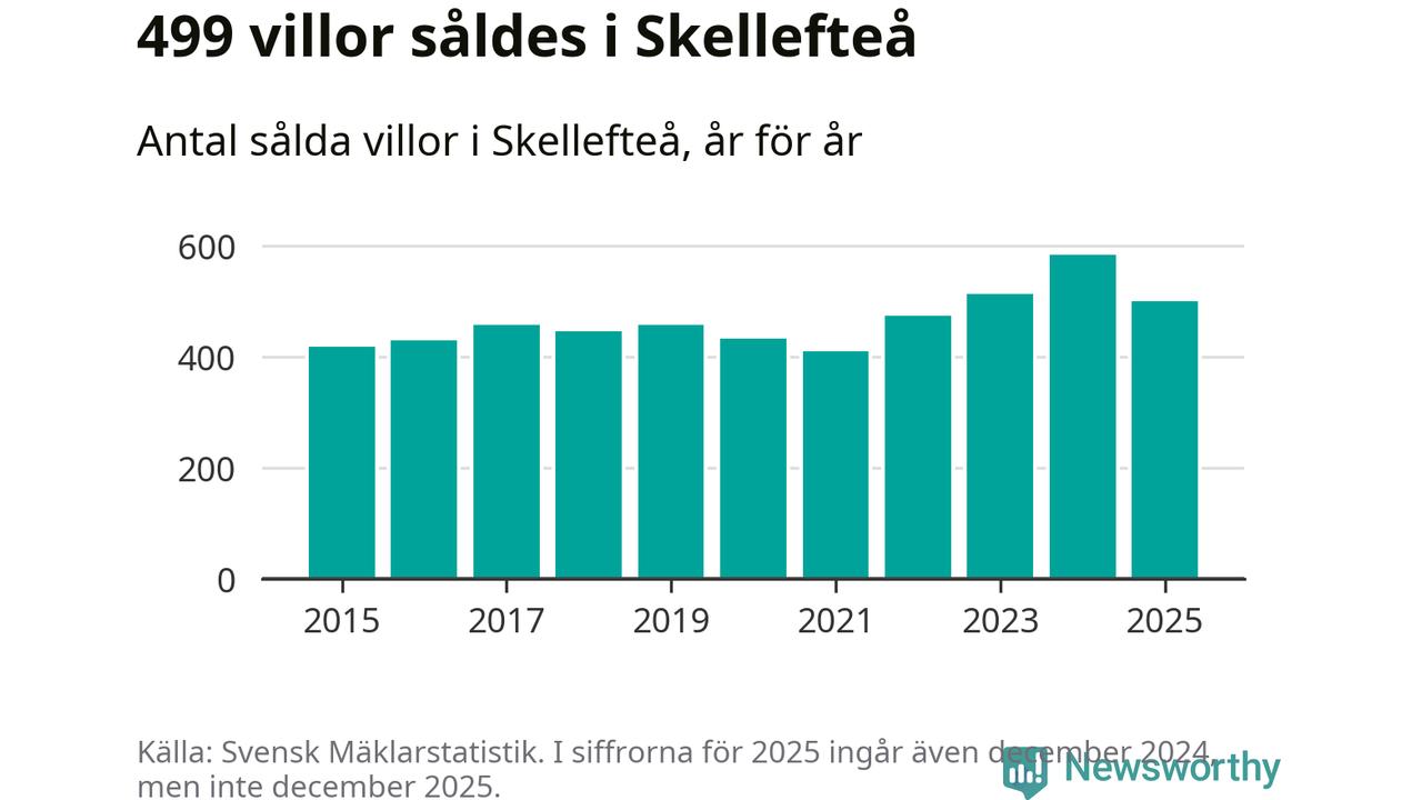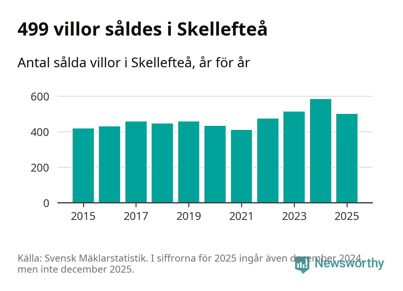 Antalet sålda villor minskade också. Totalt såldes 499 villor, att jämföra med 583 under 2024.