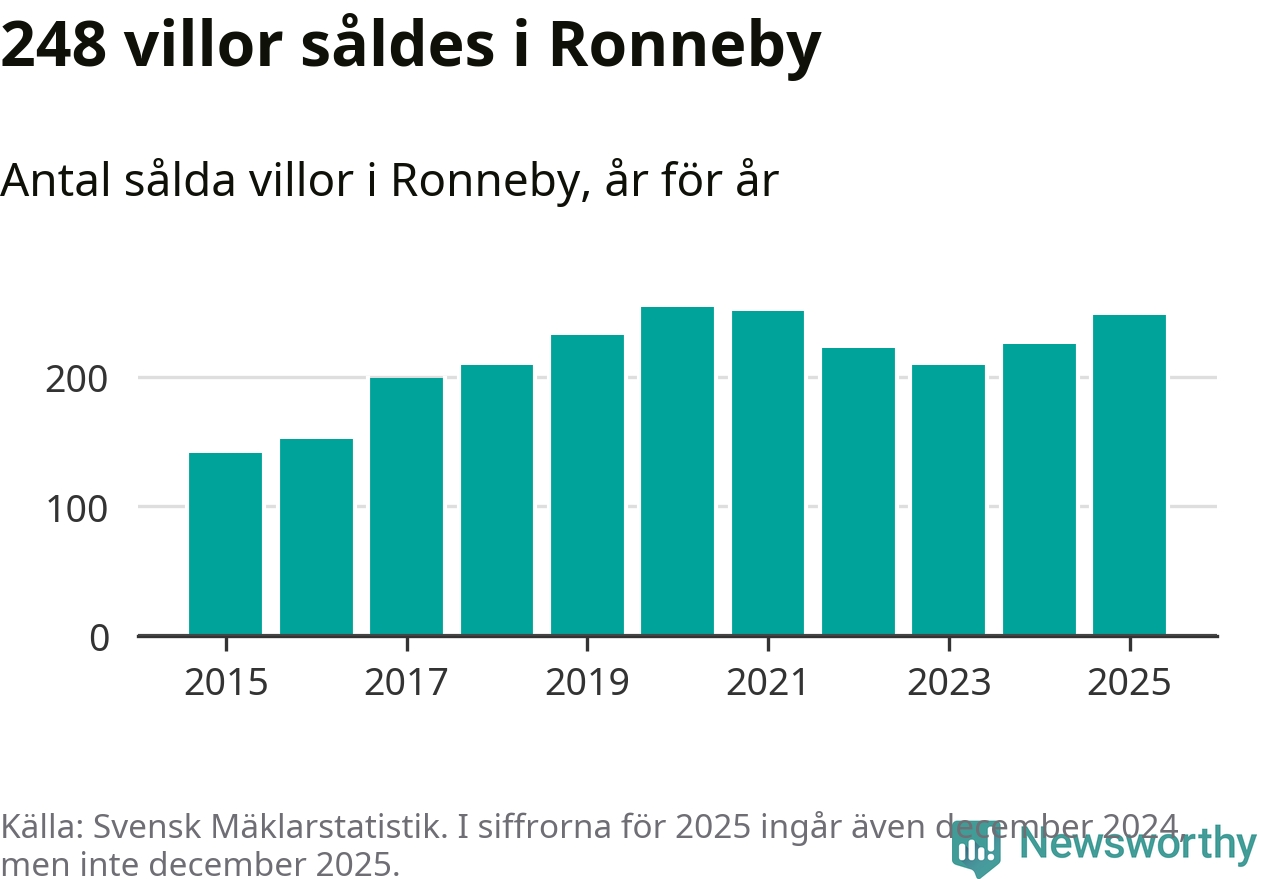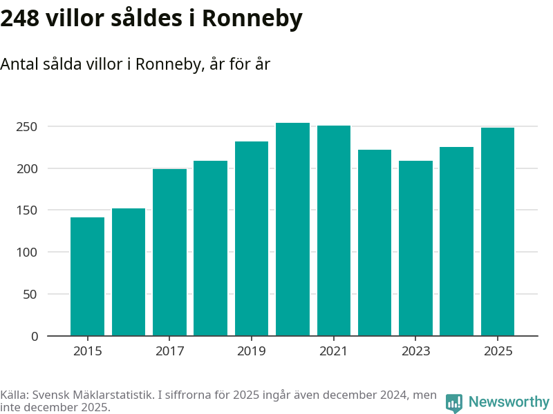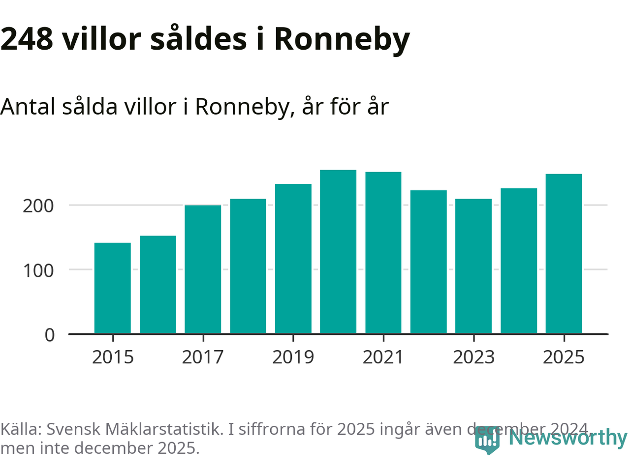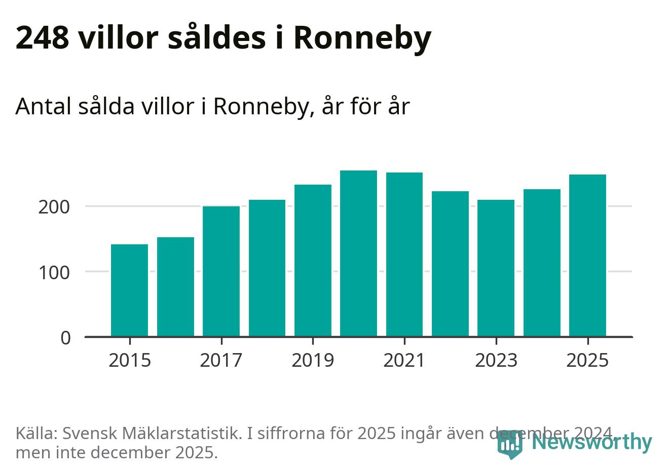 Däremot ökade antalet sålda villor. Totalt såldes 248 villor, att jämföra med 225 under 2024. Det är andra året i rad som antalet sålda villor ökar i kommunen.