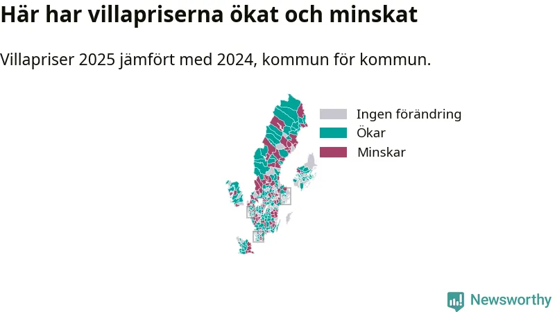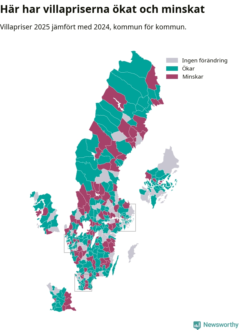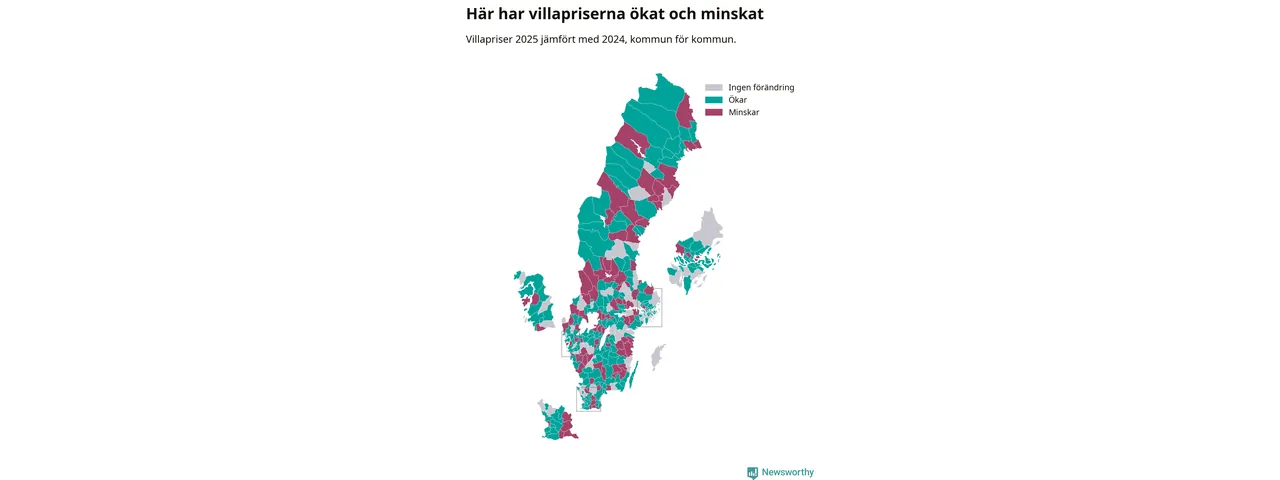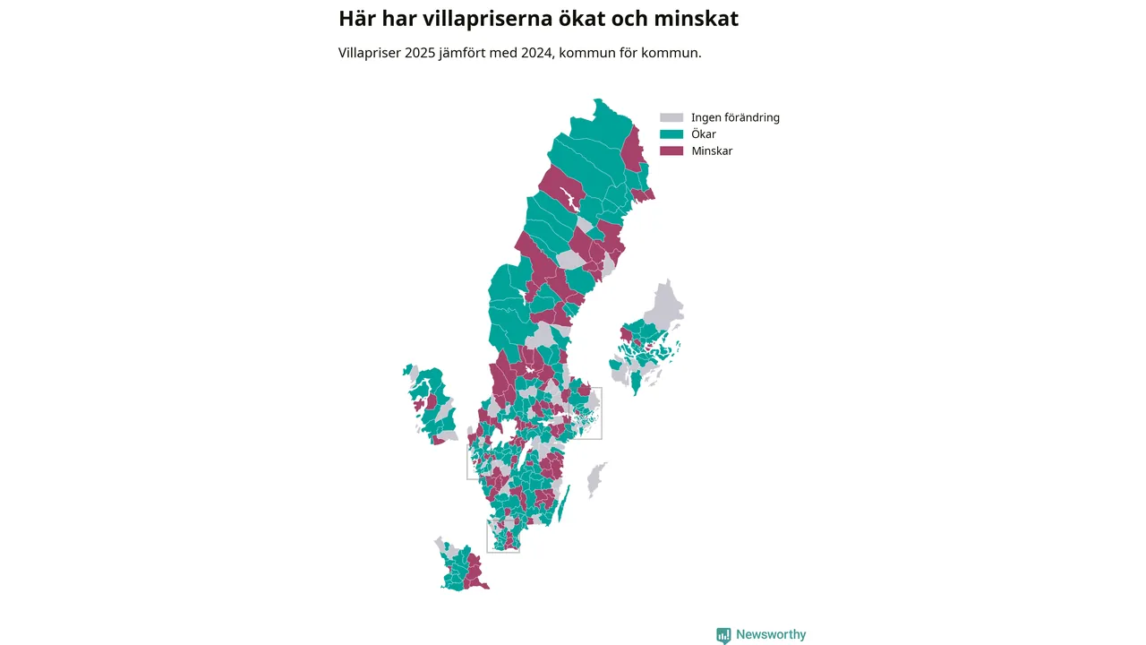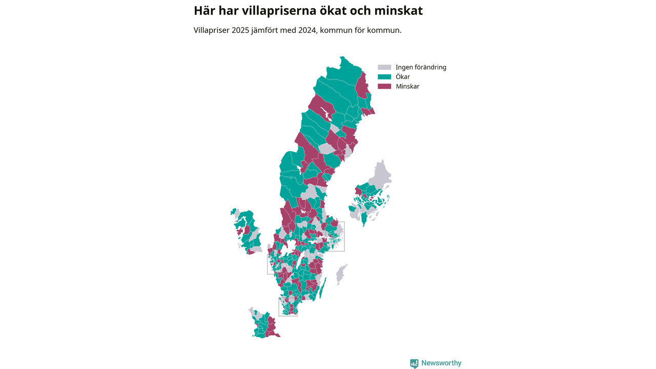 Totalt såldes 59 375 villor i hela Sverige under 2025, vilket är 3 020 fler än året före. Villapriserna ökade också överlag med tre procent i riket som helhet.