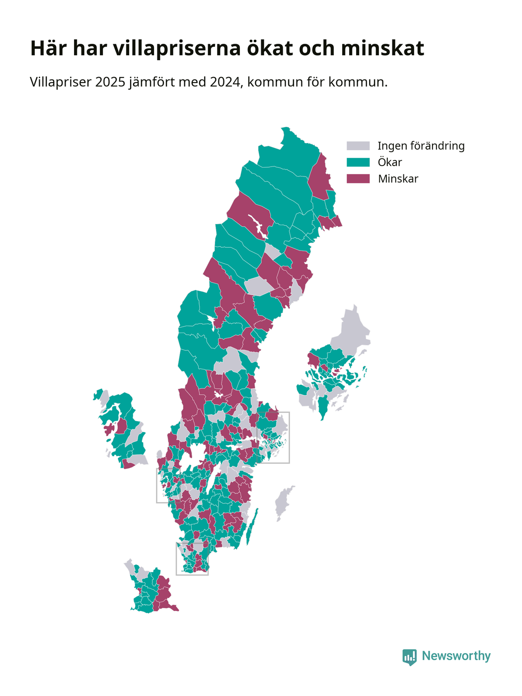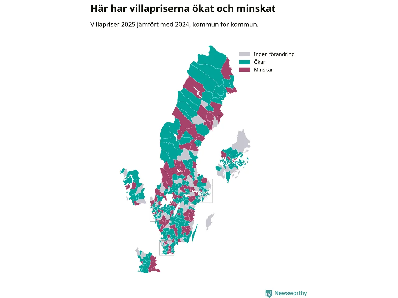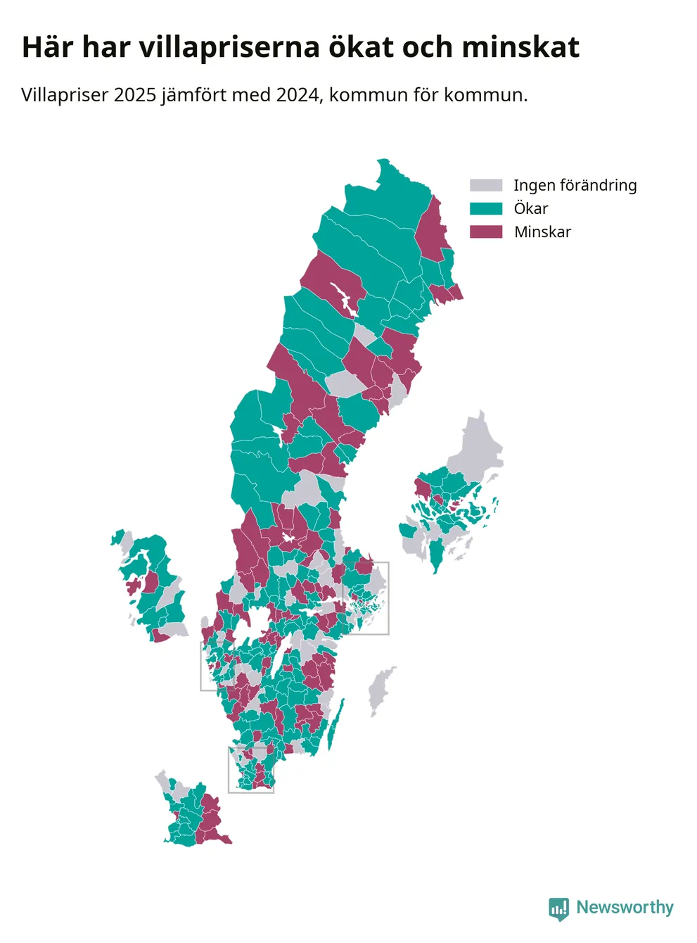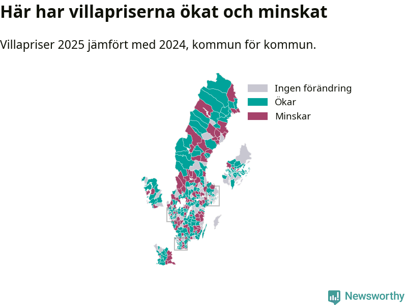 Totalt såldes 59 375 villor i hela Sverige under 2025, vilket är 3 020 fler än året före. Villapriserna ökade också överlag med tre procent i riket som helhet.