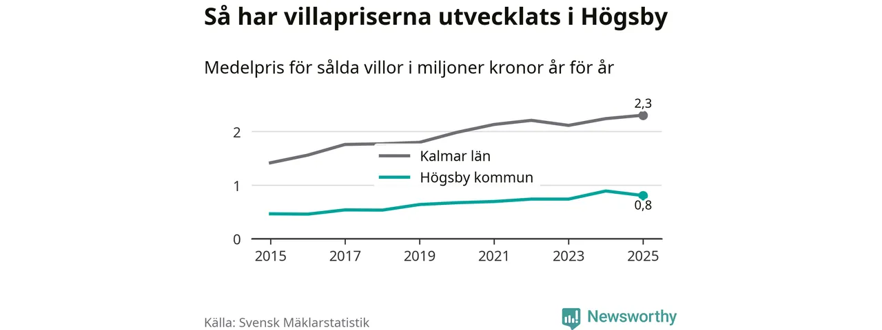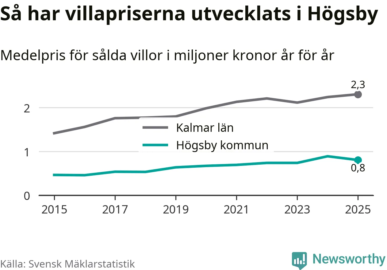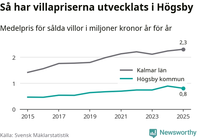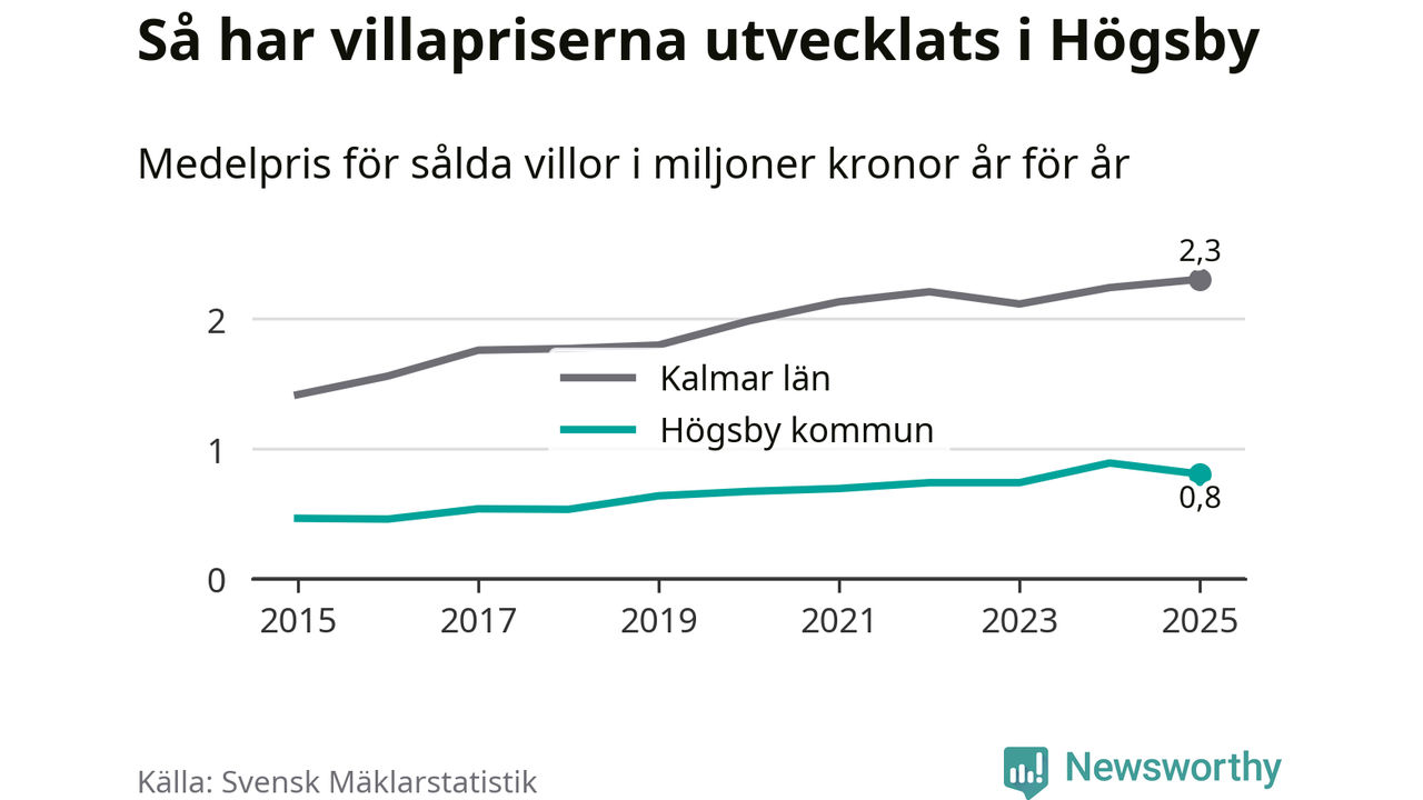 Bostadsmarknaden i Sverige närmar sig nivån före räntesmockan 2022. I Högsby sjönk dock villapriserna.