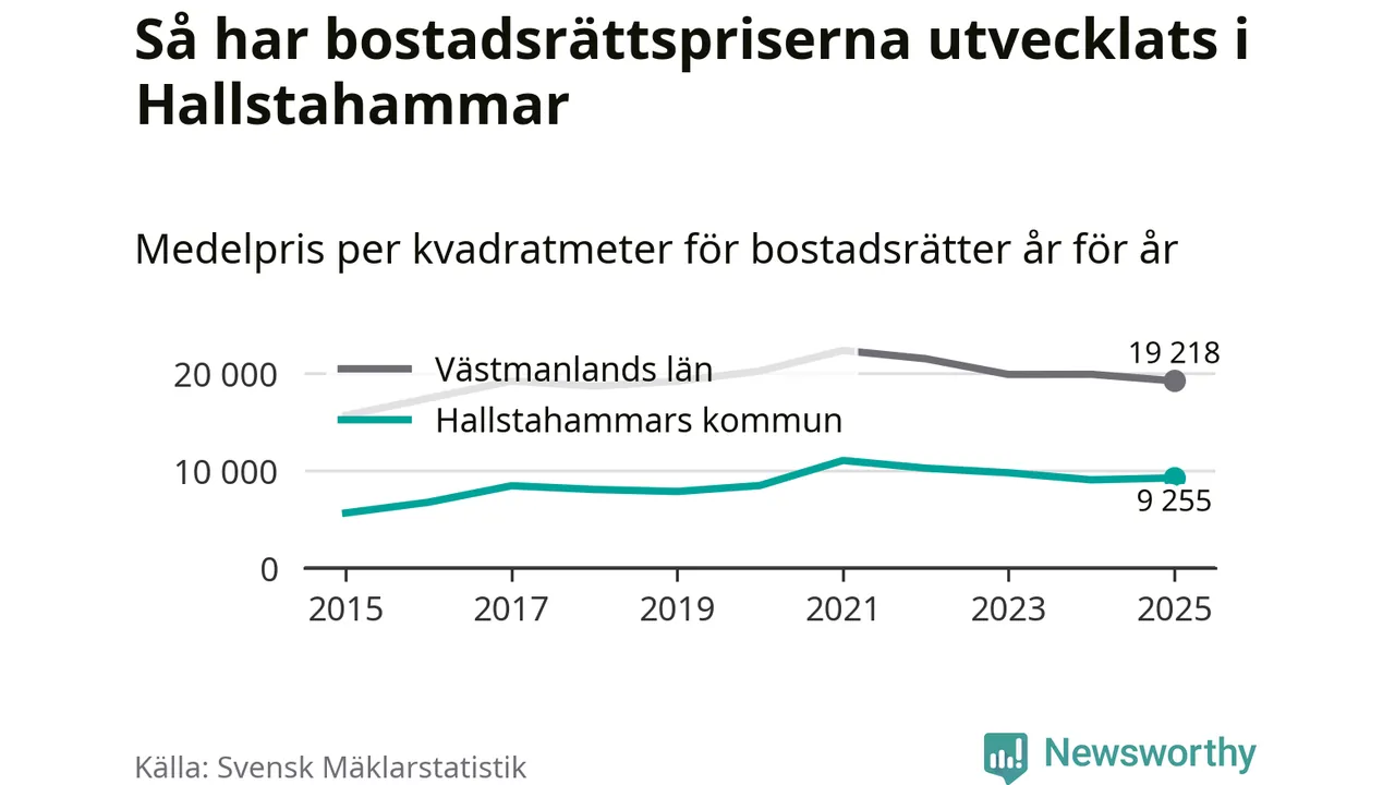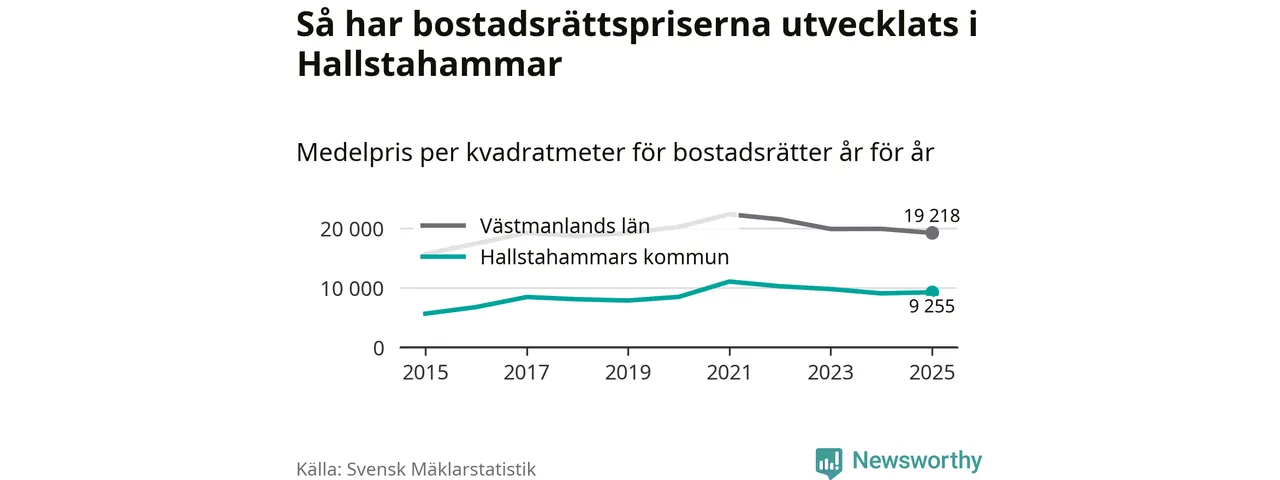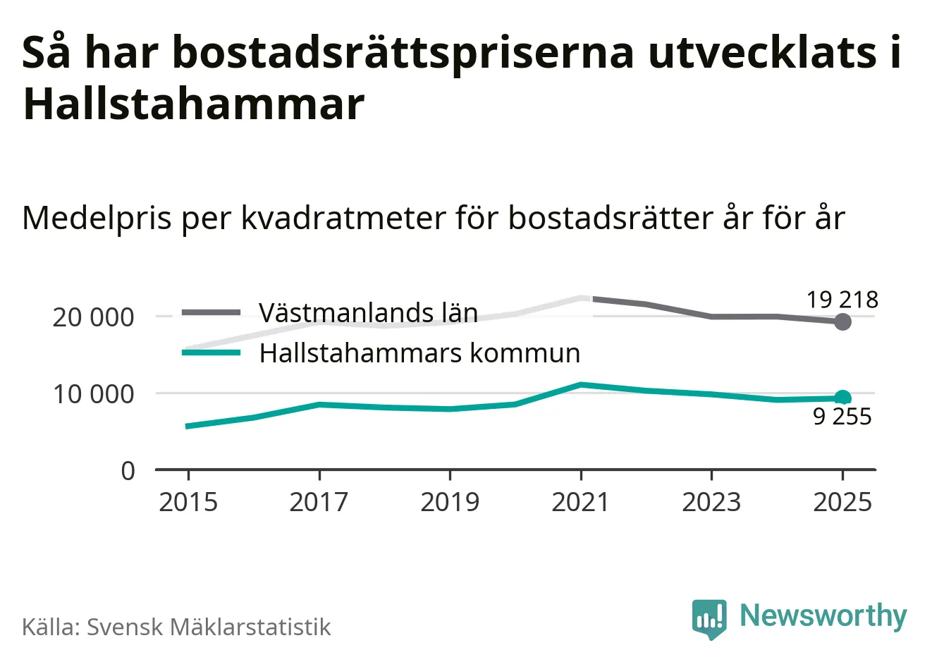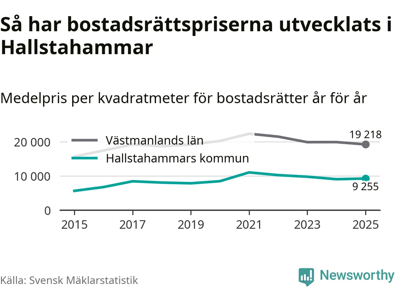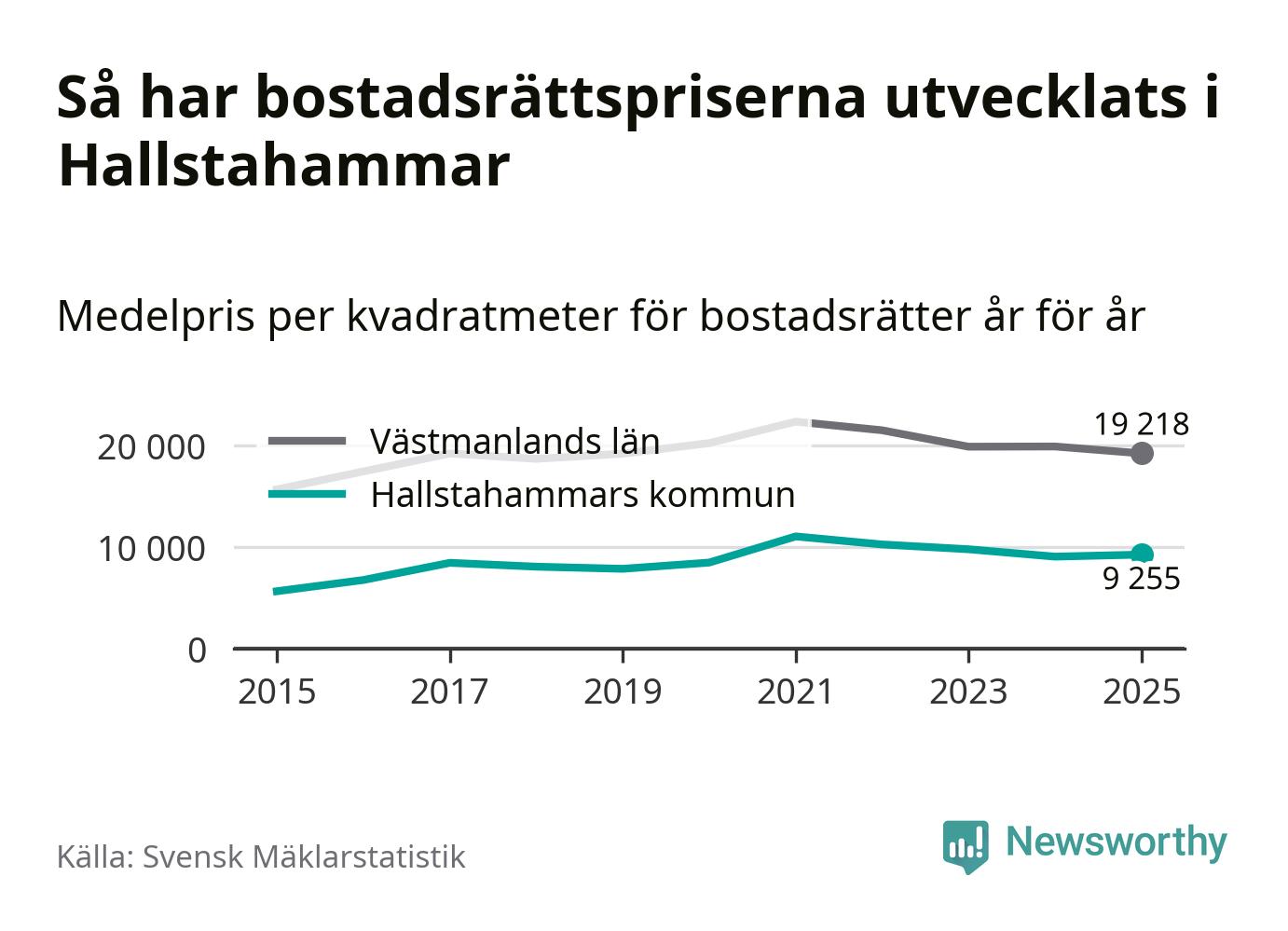 Det såldes totalt 71 bostadsrätter i Hallstahammars kommun under året. Genomsnittspriset per kvadratmeter landade på 9 255 kronor. Det är en ökning med två procent i kommunen på ett år.
