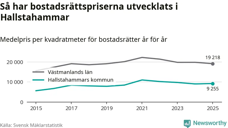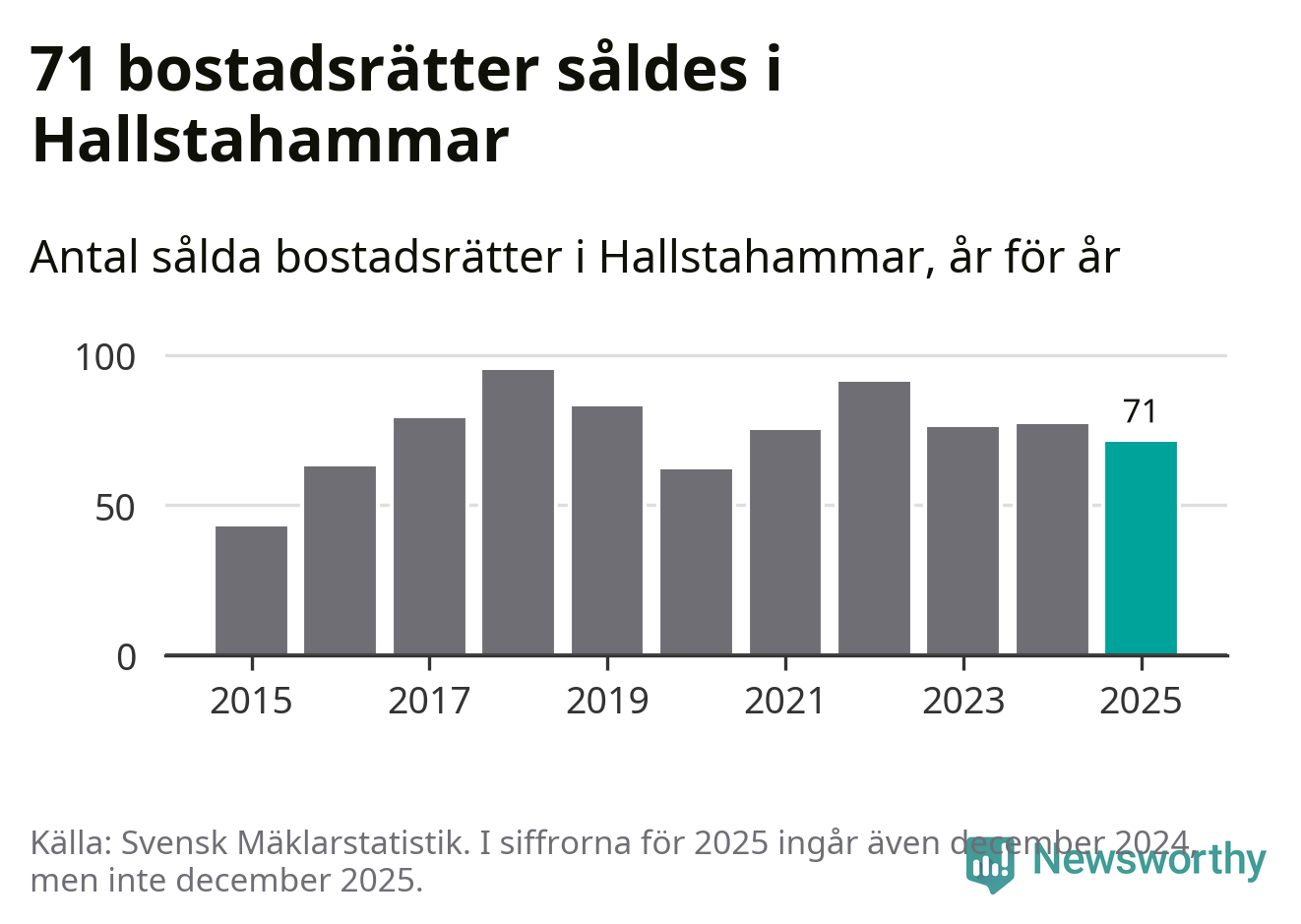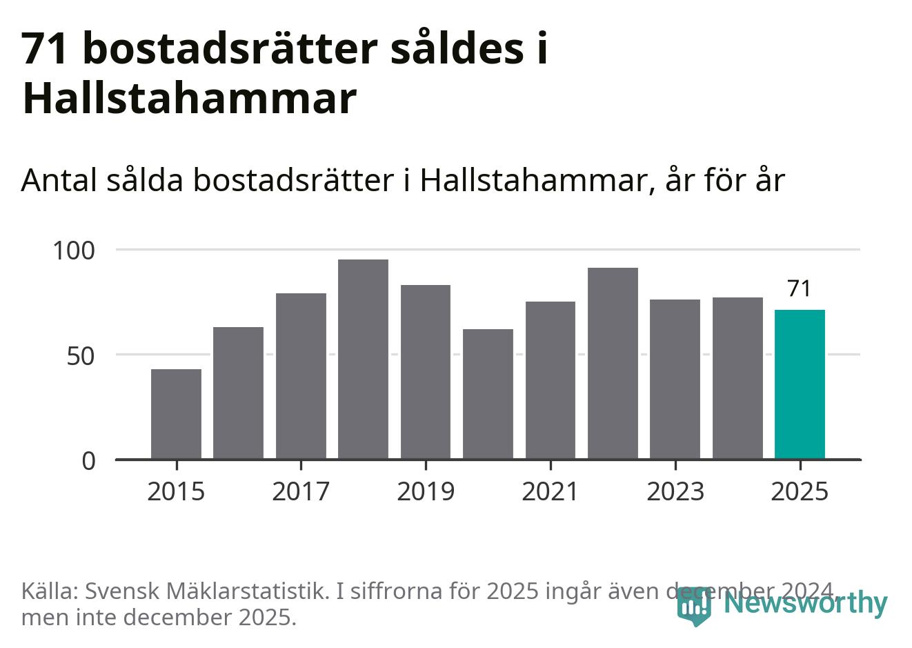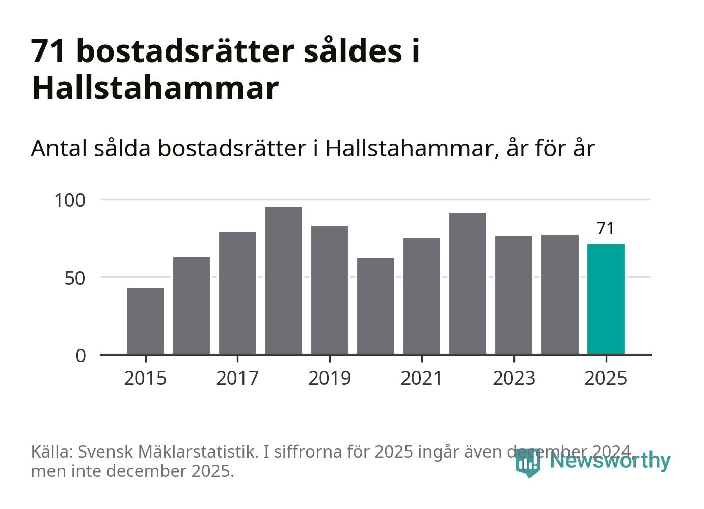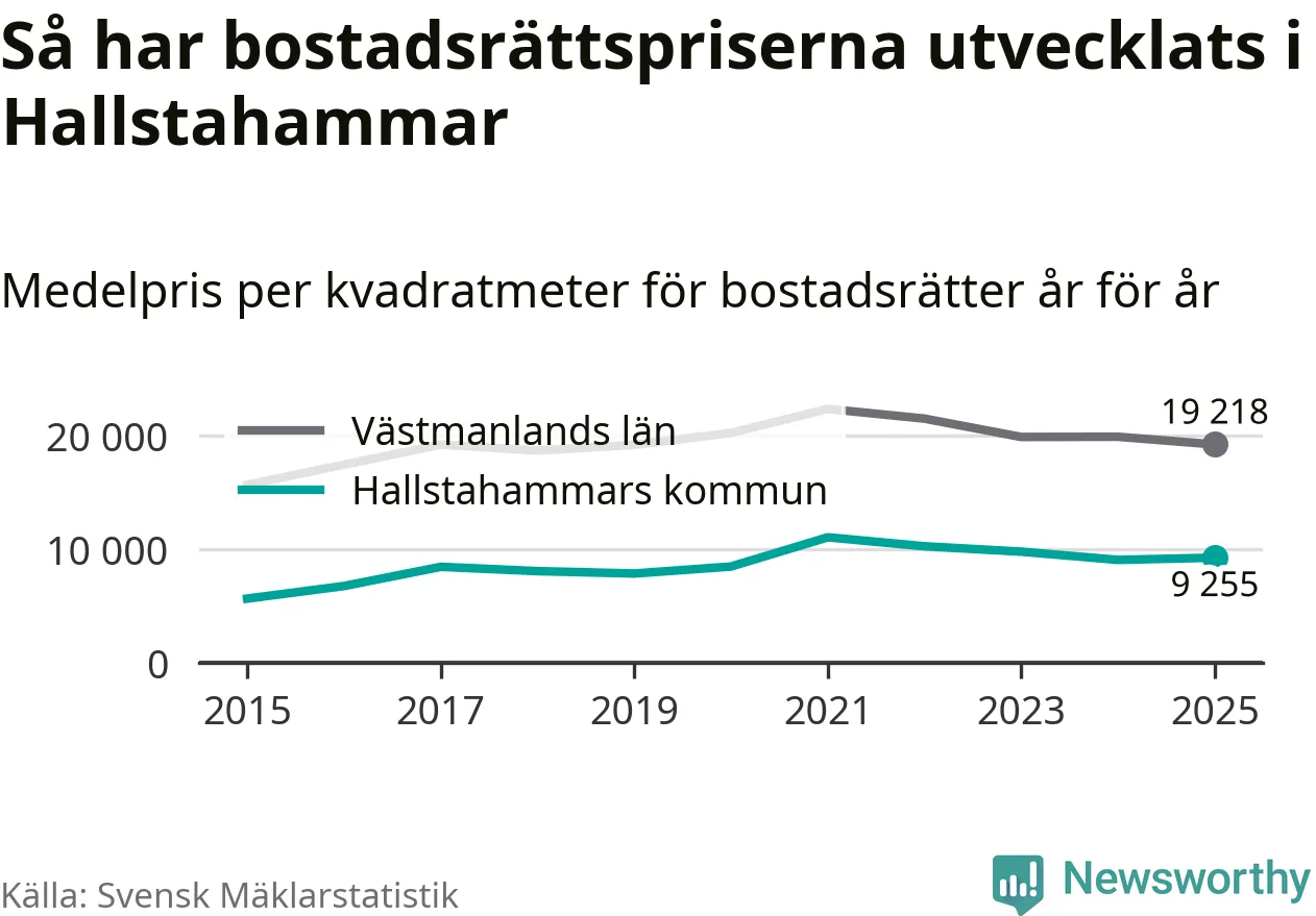 Det såldes totalt 71 bostadsrätter i Hallstahammars kommun under året. Genomsnittspriset per kvadratmeter landade på 9 255 kronor. Det är en ökning med två procent i kommunen på ett år.