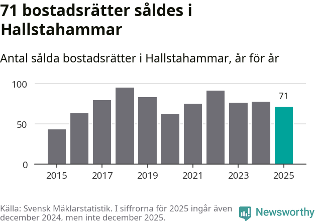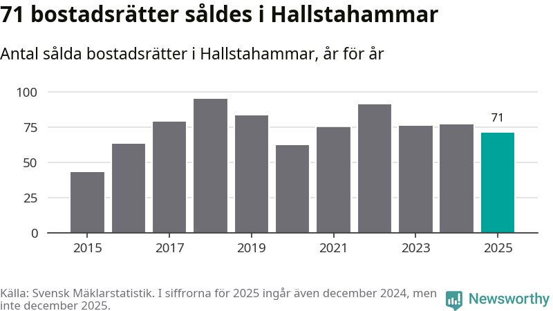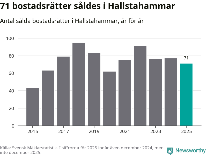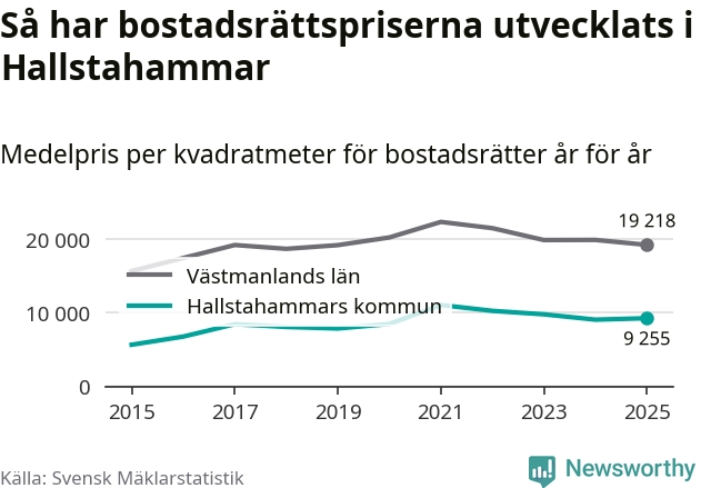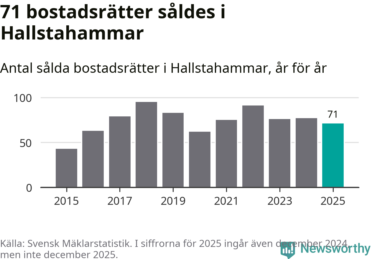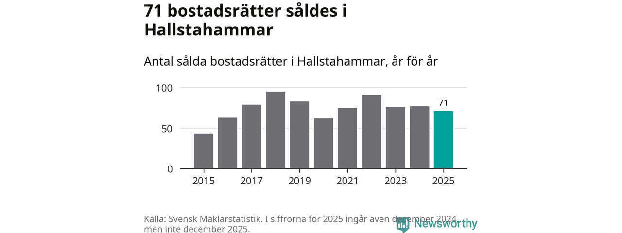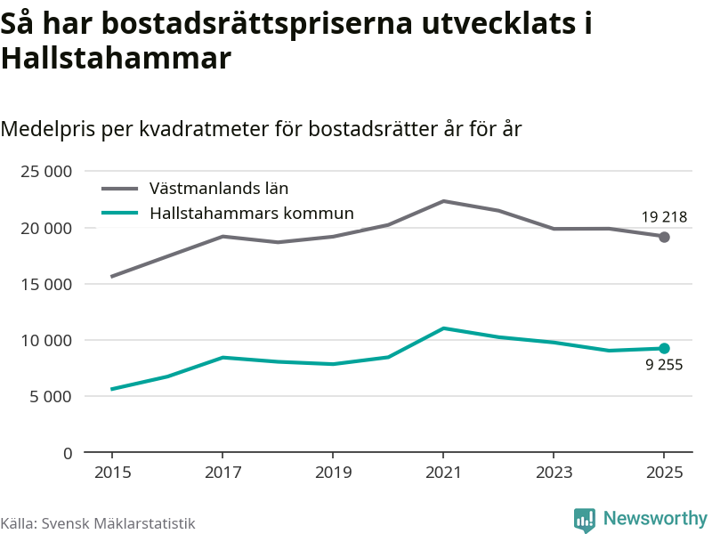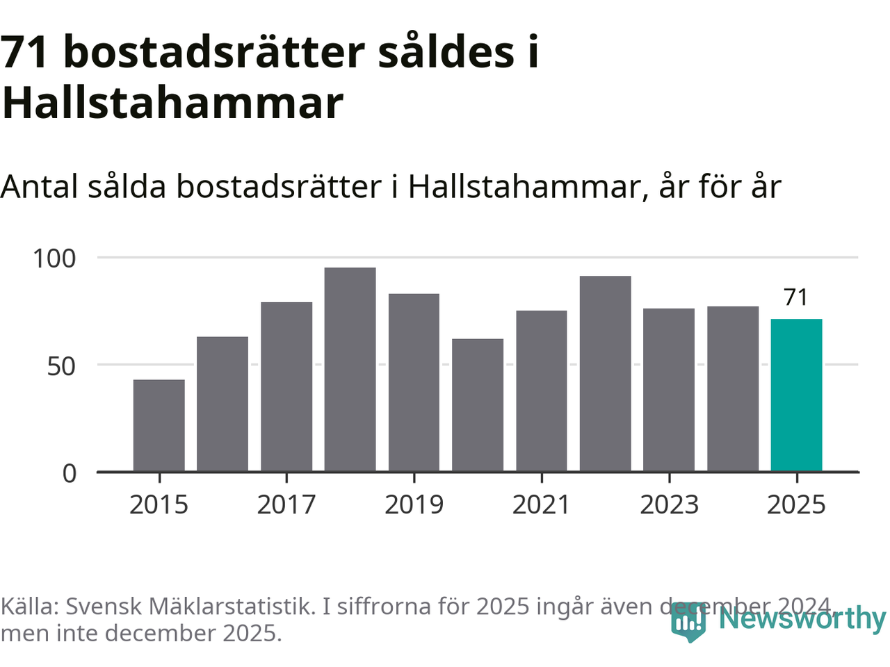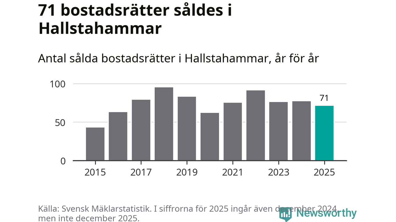 Det såldes totalt 71 bostadsrätter i Hallstahammars kommun under året. Genomsnittspriset per kvadratmeter landade på 9 255 kronor. Det är en ökning med två procent i kommunen på ett år.