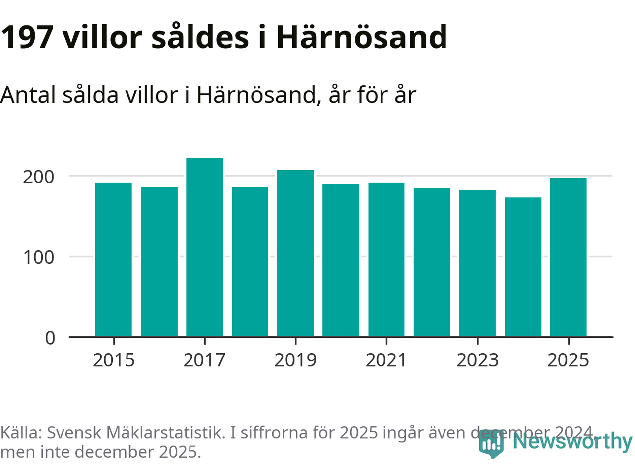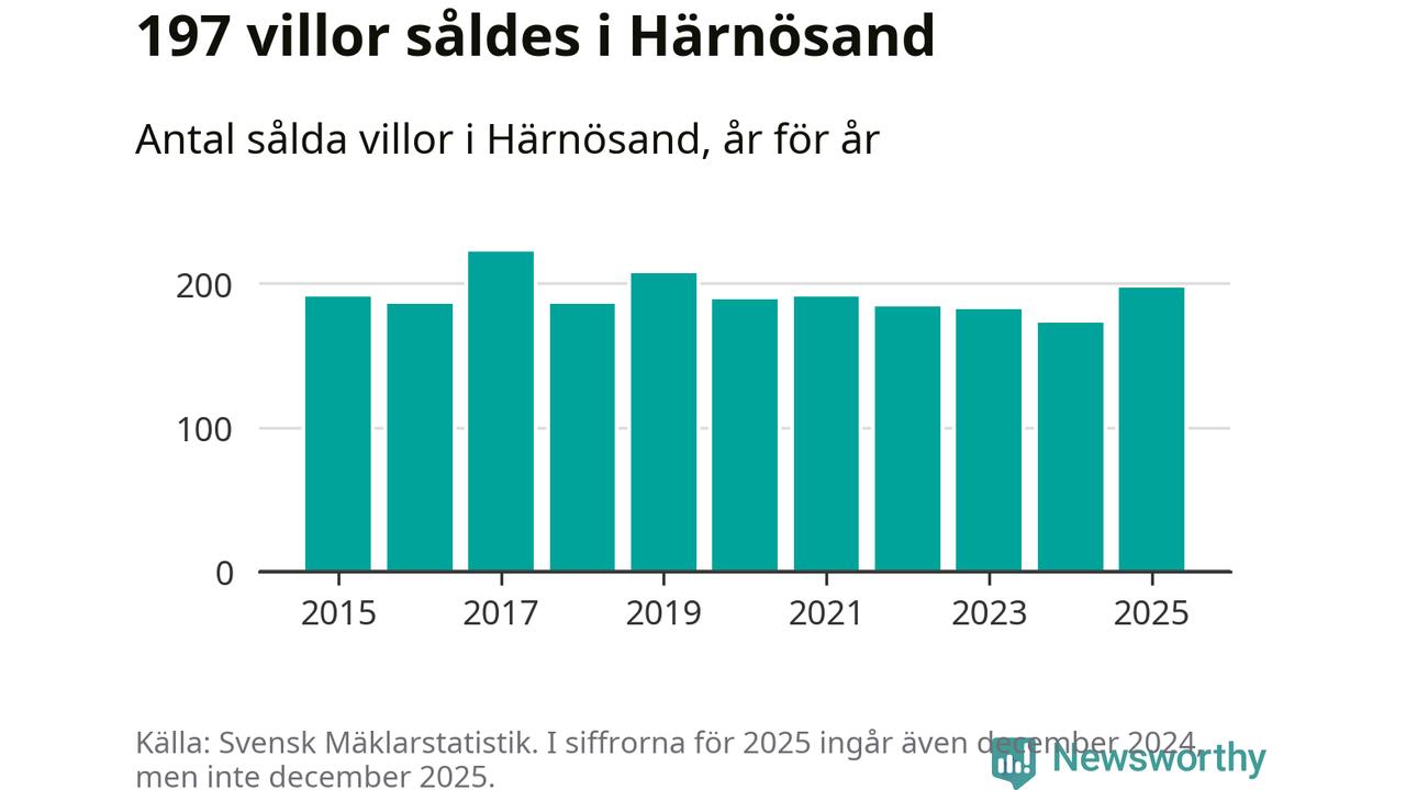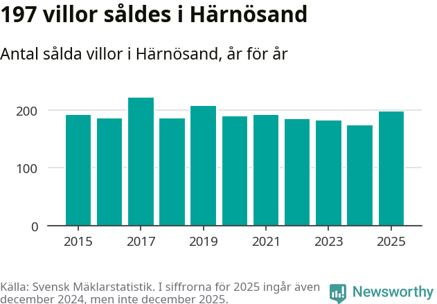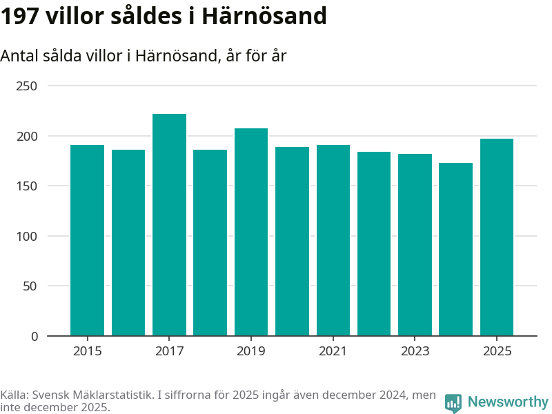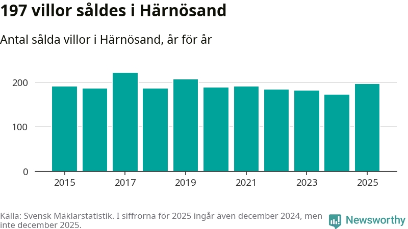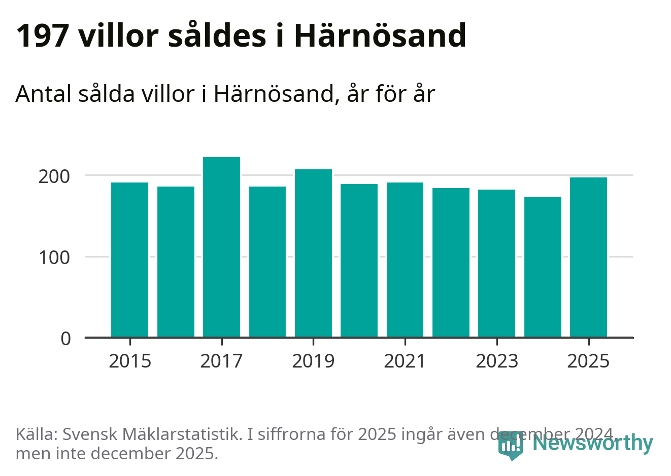 Antalet sålda villor ökade också. Totalt såldes 197 villor, att jämföra med 173 under 2024.
