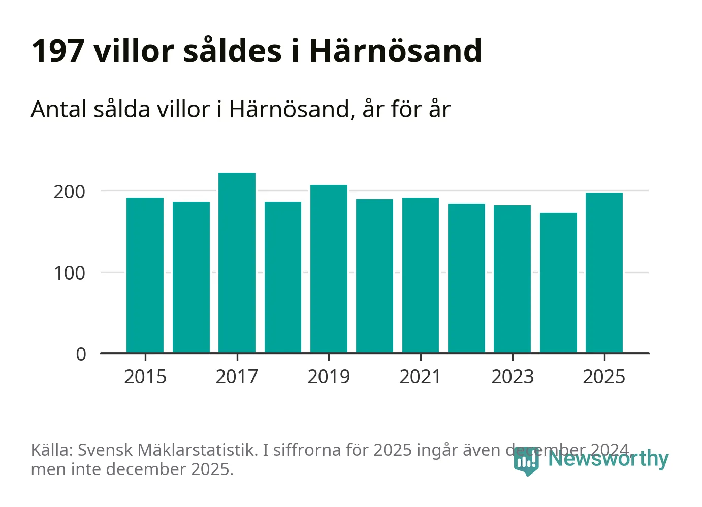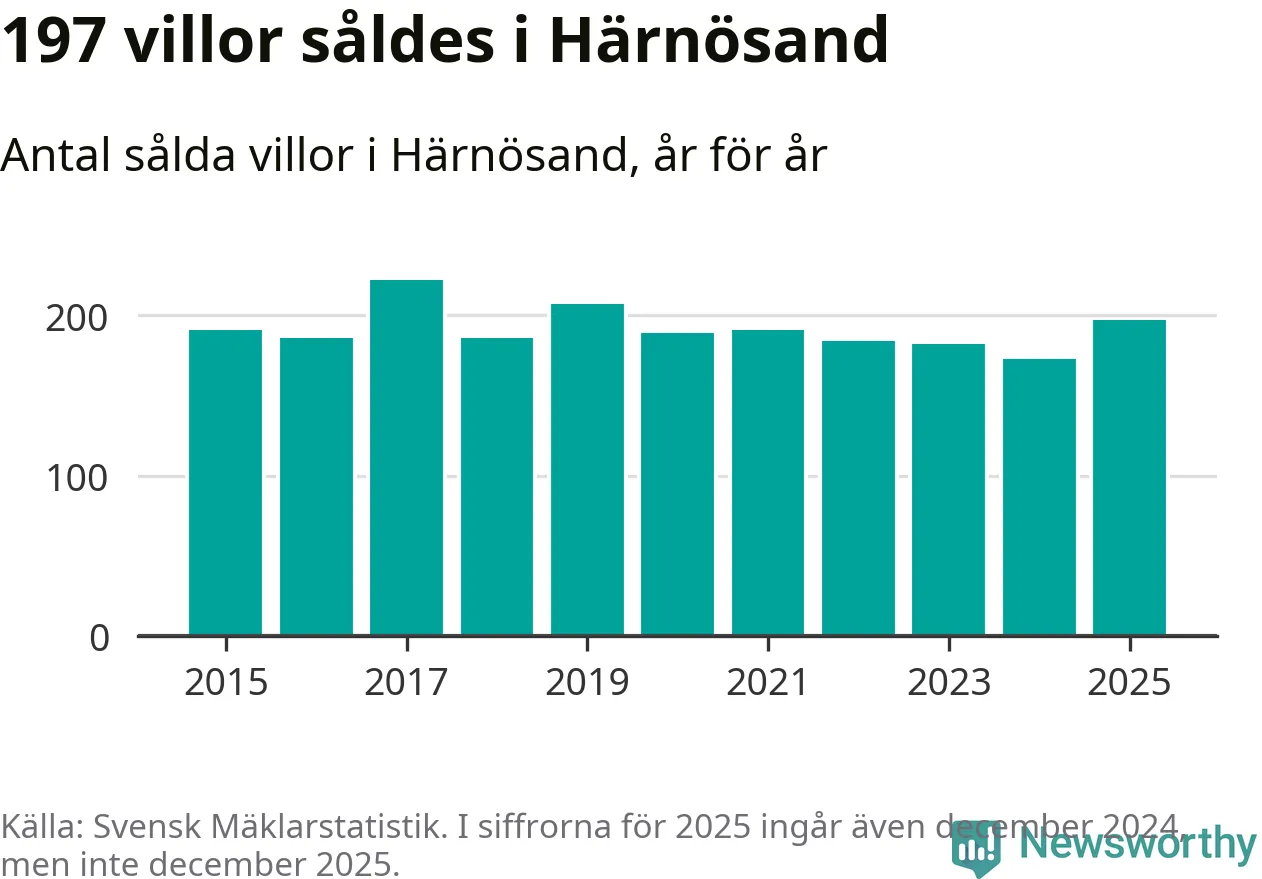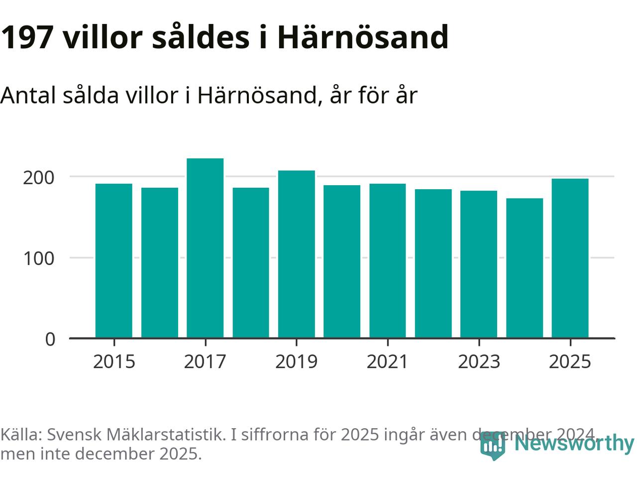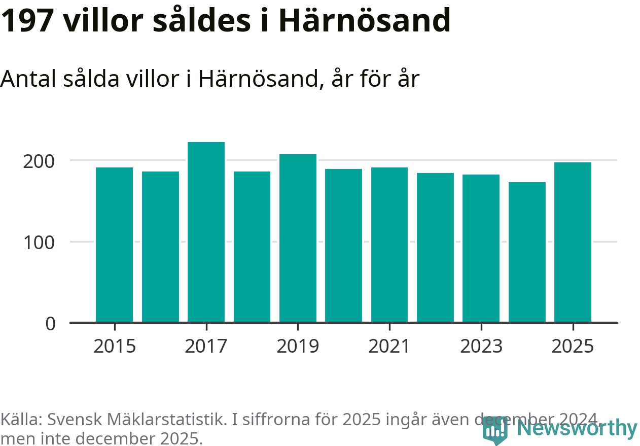 Antalet sålda villor ökade också. Totalt såldes 197 villor, att jämföra med 173 under 2024.