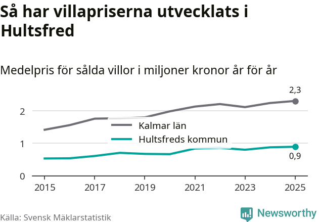 Bostadsmarknaden i Sverige närmar sig nivån före räntesmockan 2022. I Hultsfred nådde priserna på villor en ny rekordnivå.