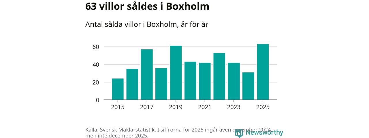 Bostadsmarknaden i Sverige närmar sig nivån före räntesmockan 2022. I Boxholm såldes fler villor än på över ett decennium.