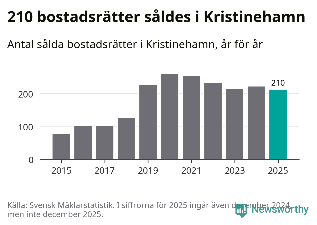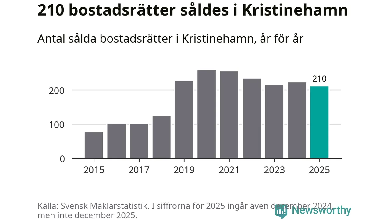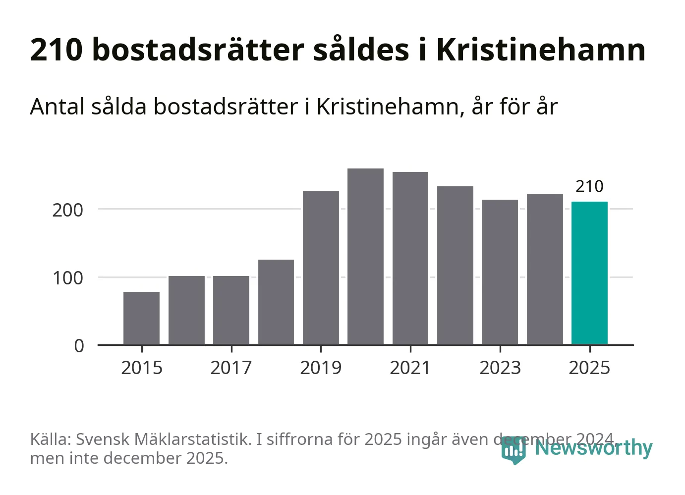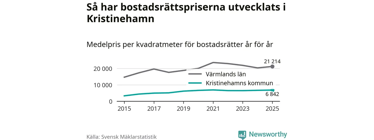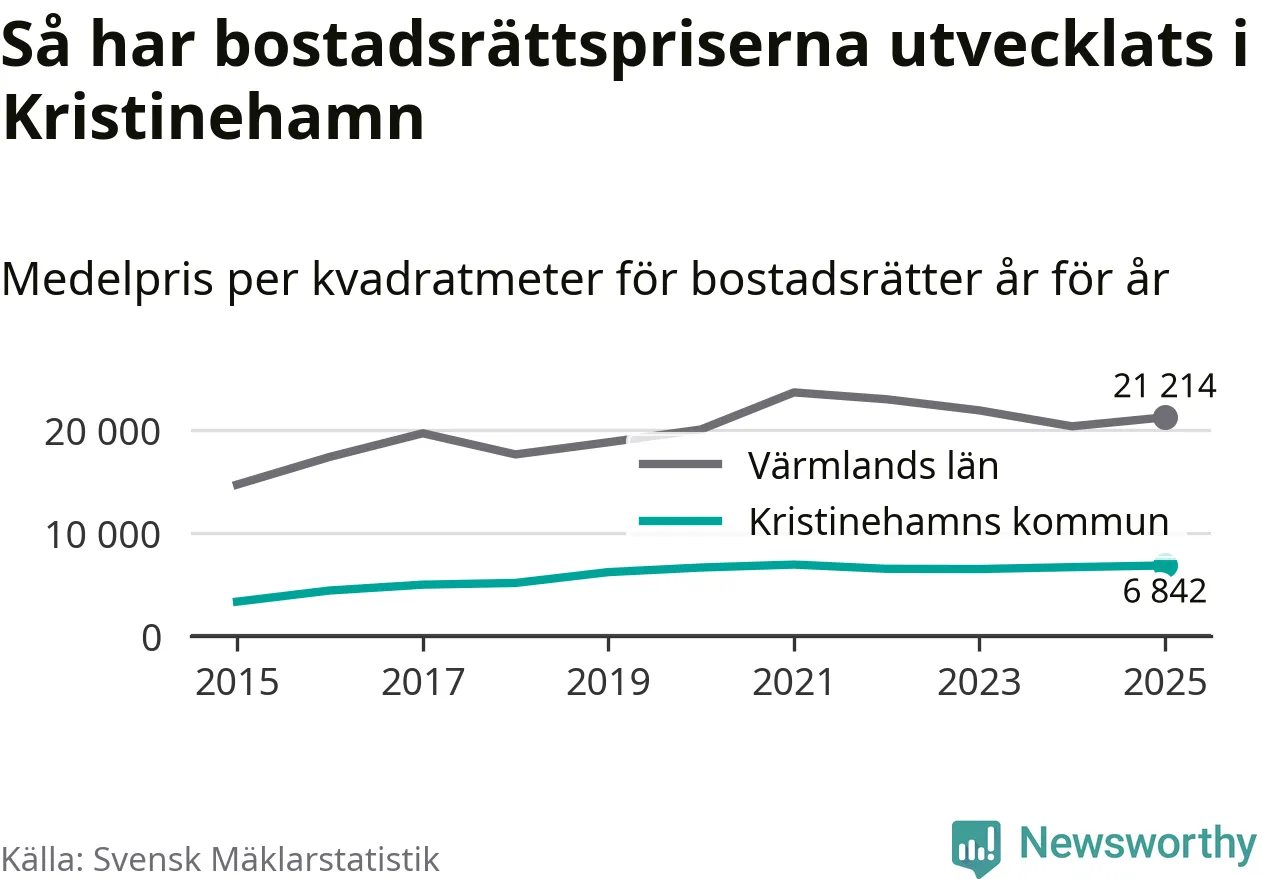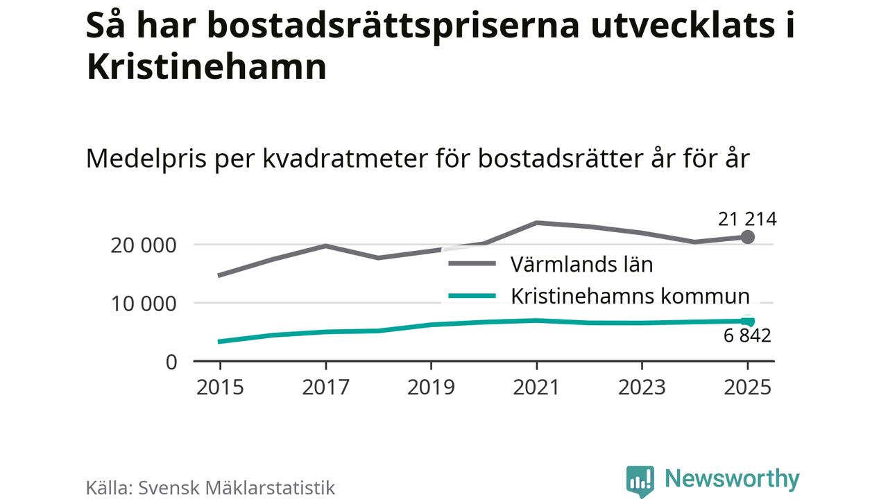 Det såldes totalt 210 bostadsrätter i Kristinehamns kommun under året. Genomsnittspriset per kvadratmeter landade på 6 842 kronor. Det är en ökning med två procent i kommunen på ett år.