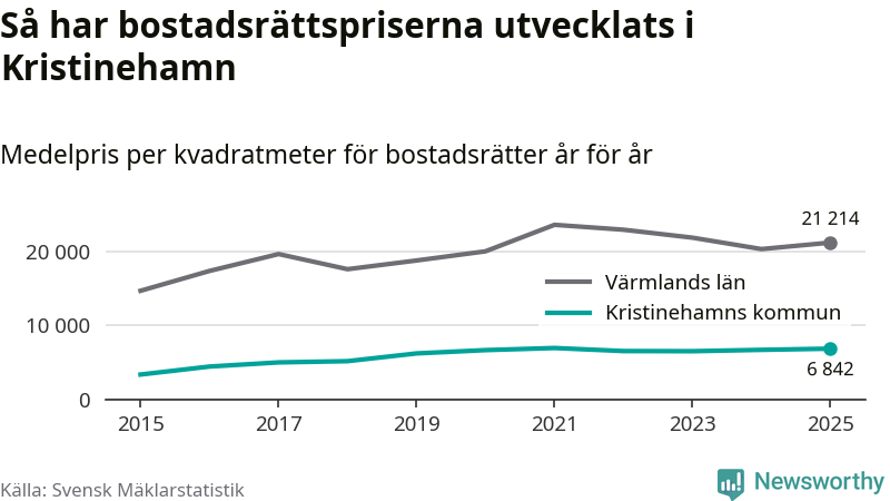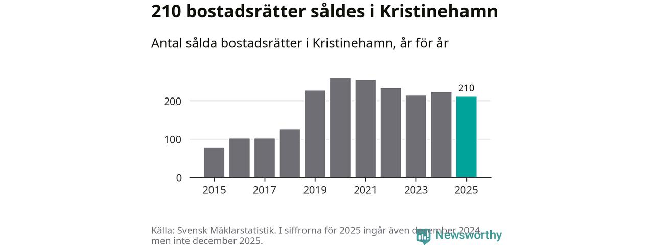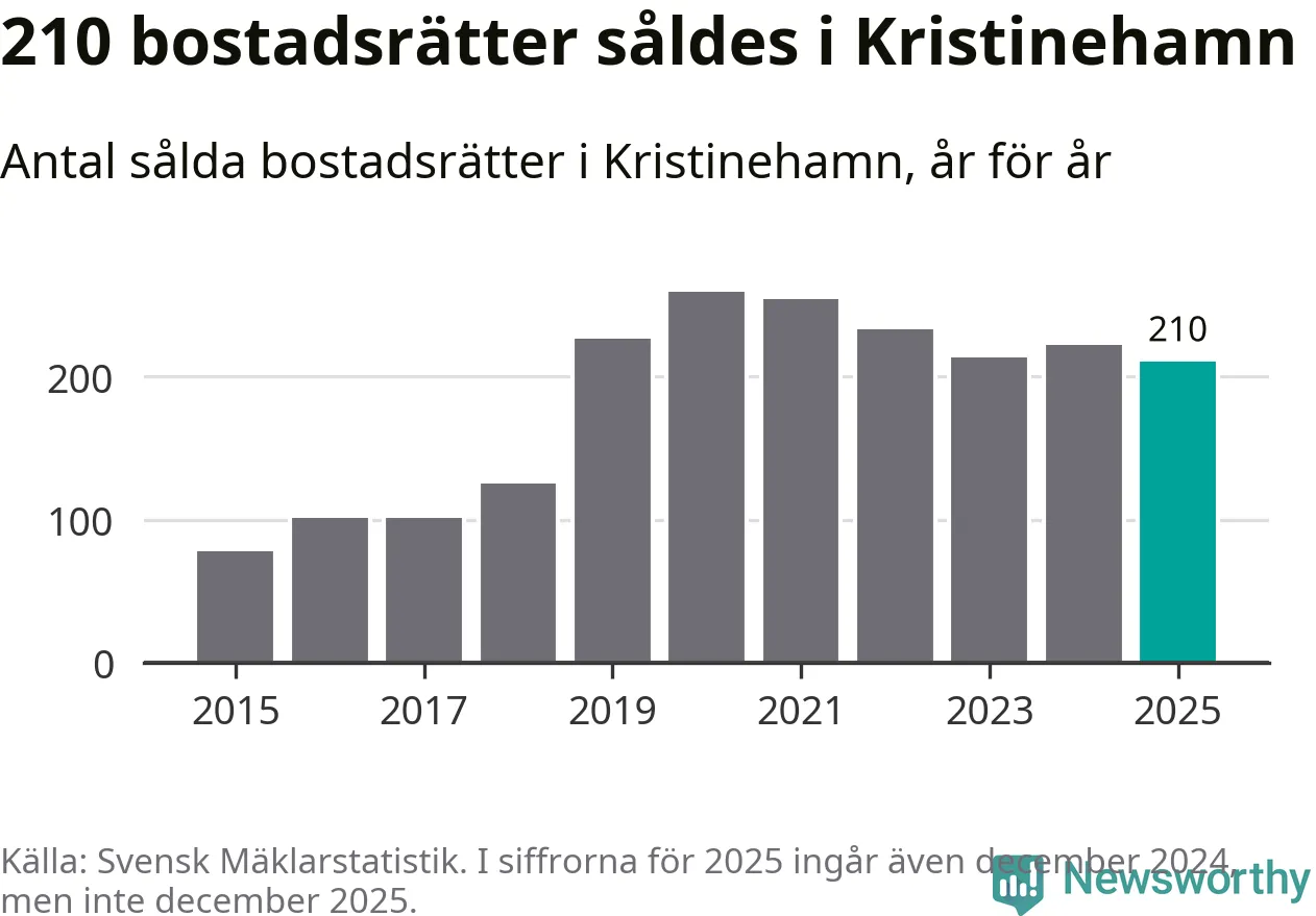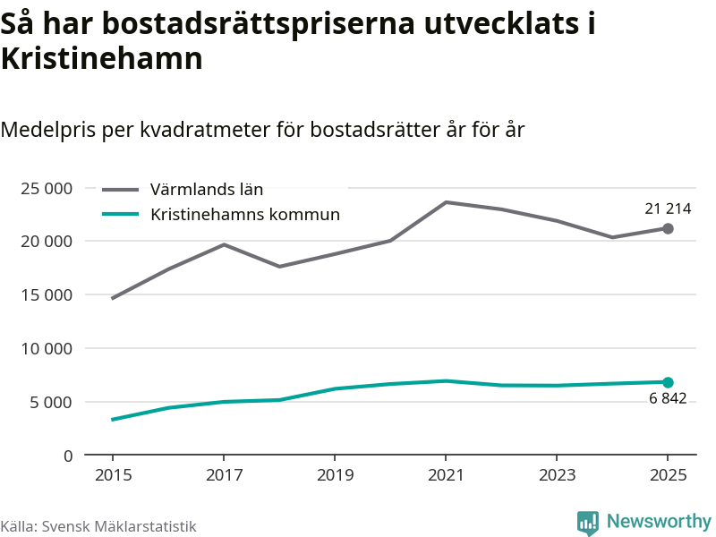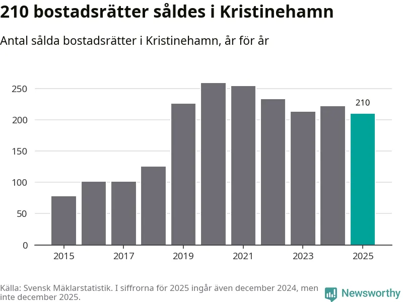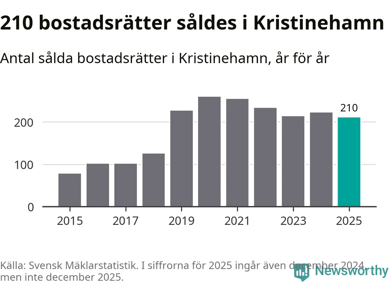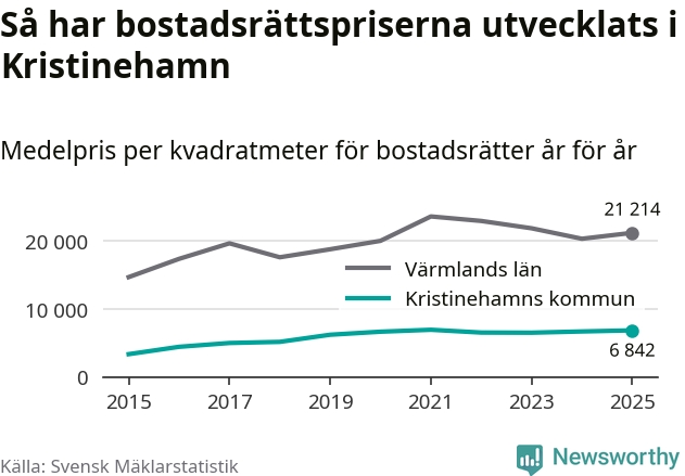 Det såldes totalt 210 bostadsrätter i Kristinehamns kommun under året. Genomsnittspriset per kvadratmeter landade på 6 842 kronor. Det är en ökning med två procent i kommunen på ett år.