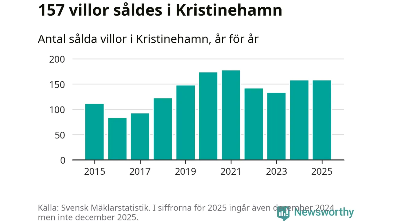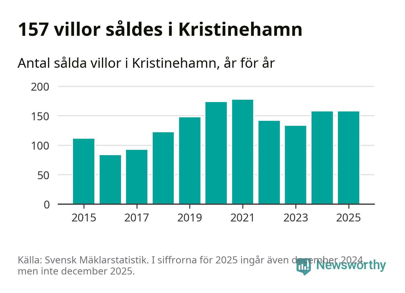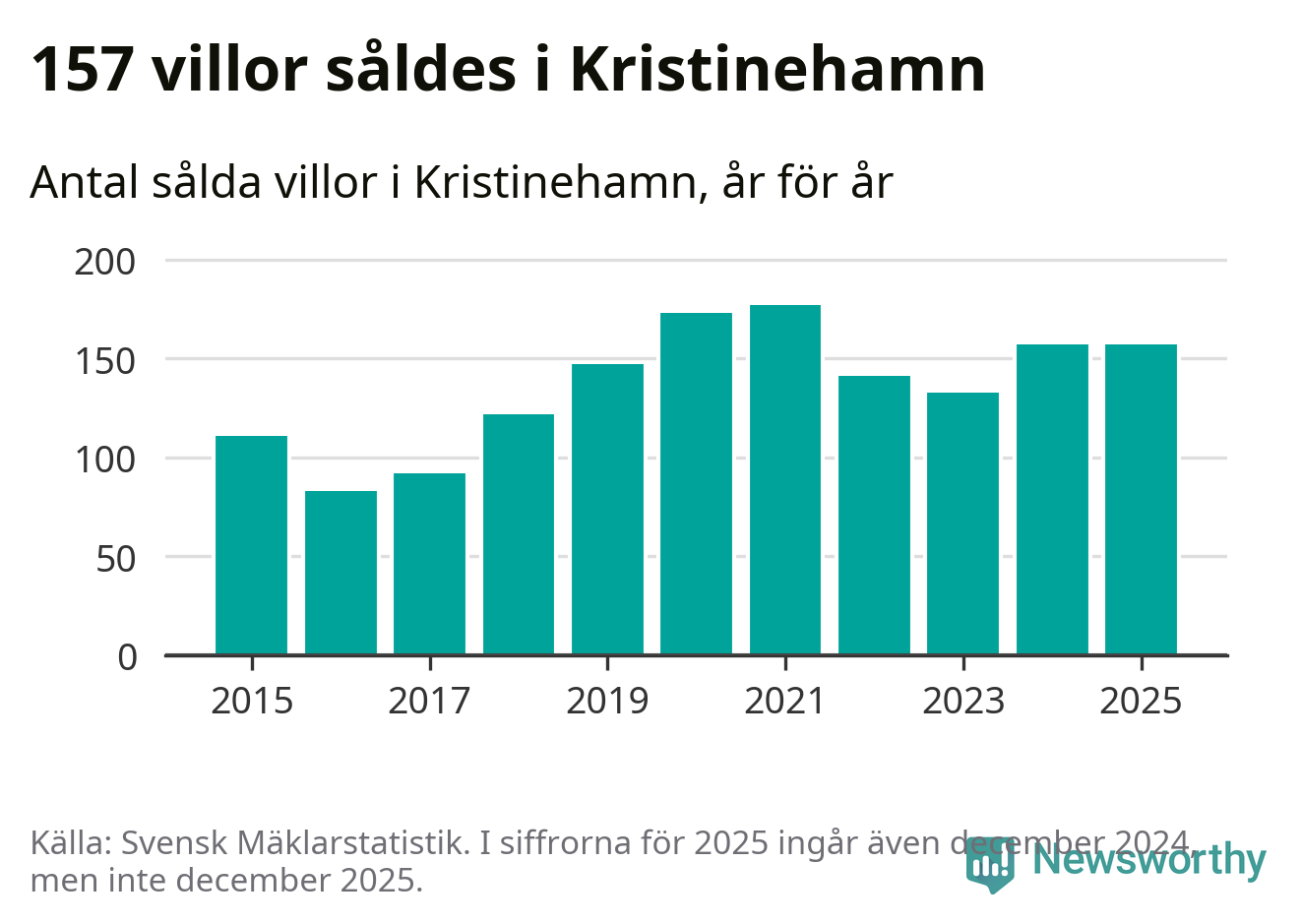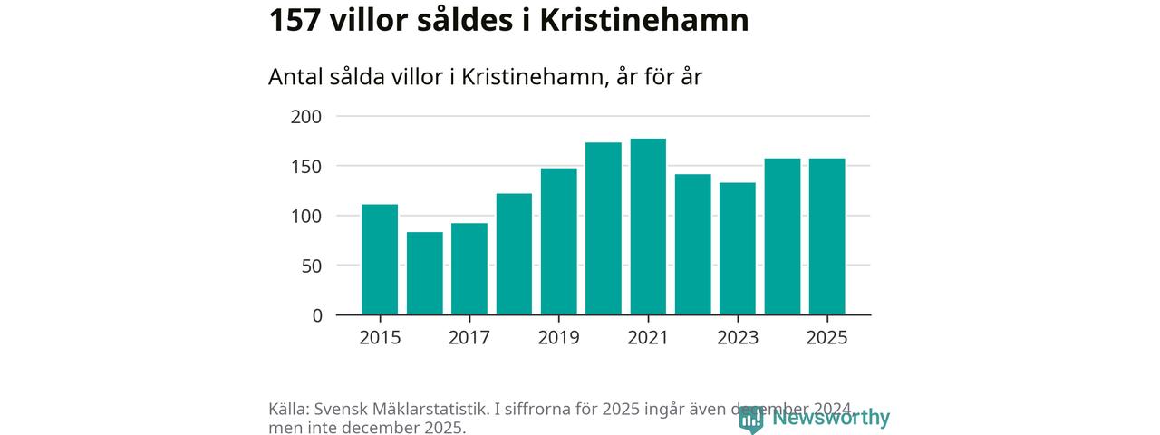 något. Totalt såldes 157 villor, vilket är lika många som året innan.Totalt såldes 157 villor, att jämföra med 157 under 2024.
