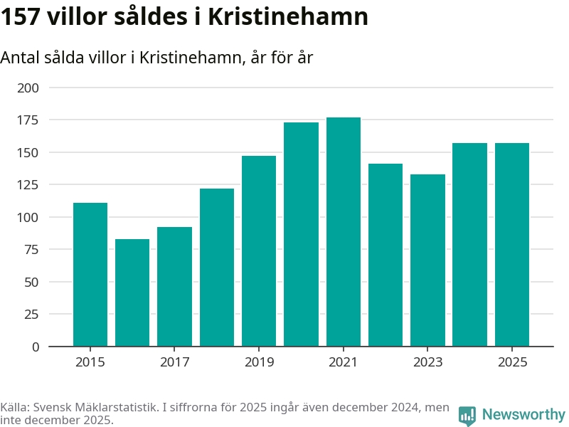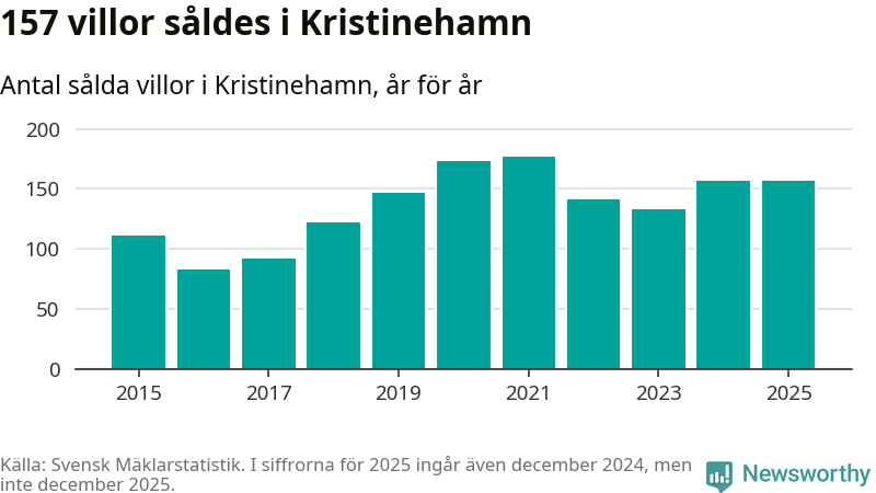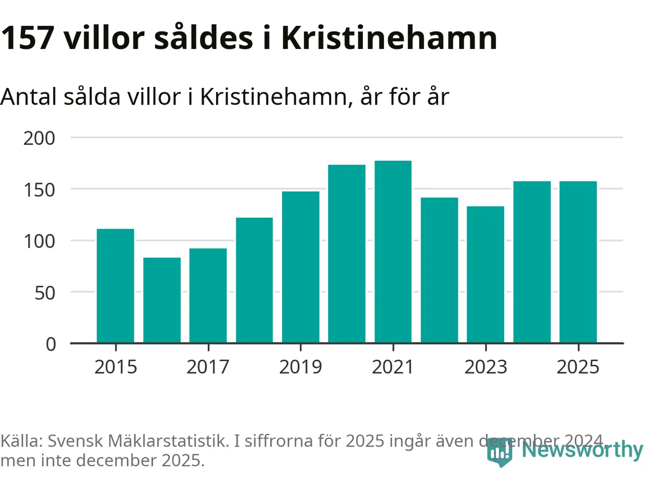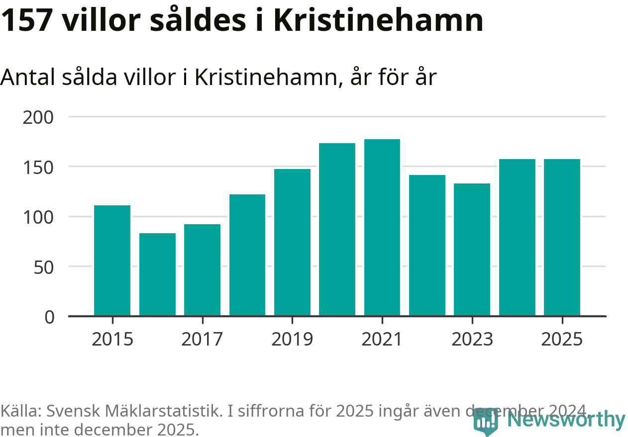 något. Totalt såldes 157 villor, vilket är lika många som året innan.Totalt såldes 157 villor, att jämföra med 157 under 2024.