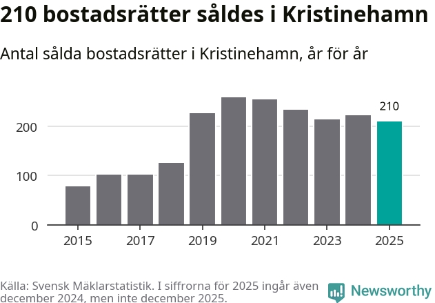 Det visar årsstatistik från Svensk Mäklarstatistik som Newsworthy har sammanställt.