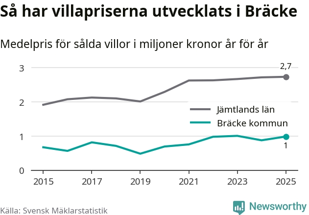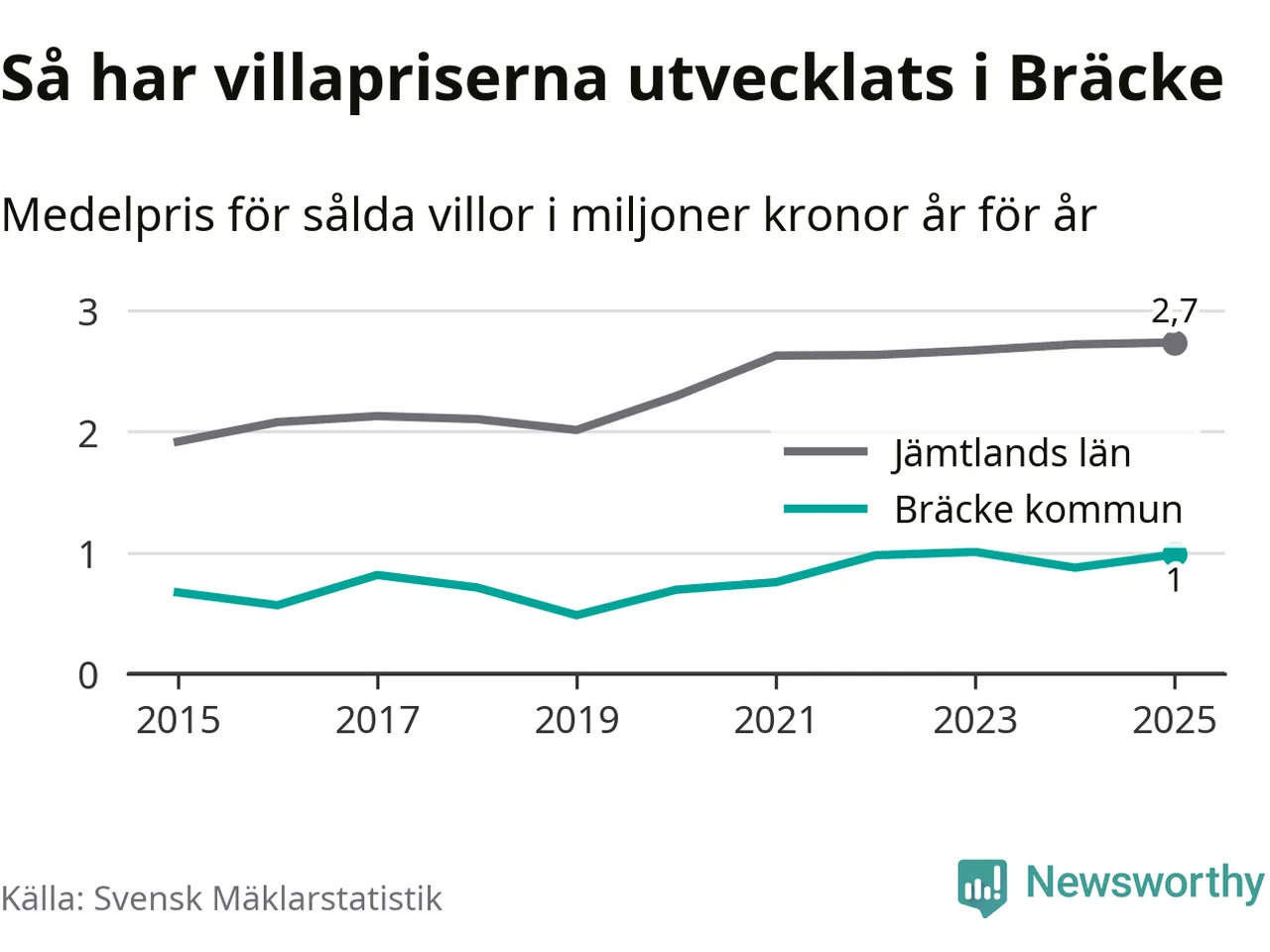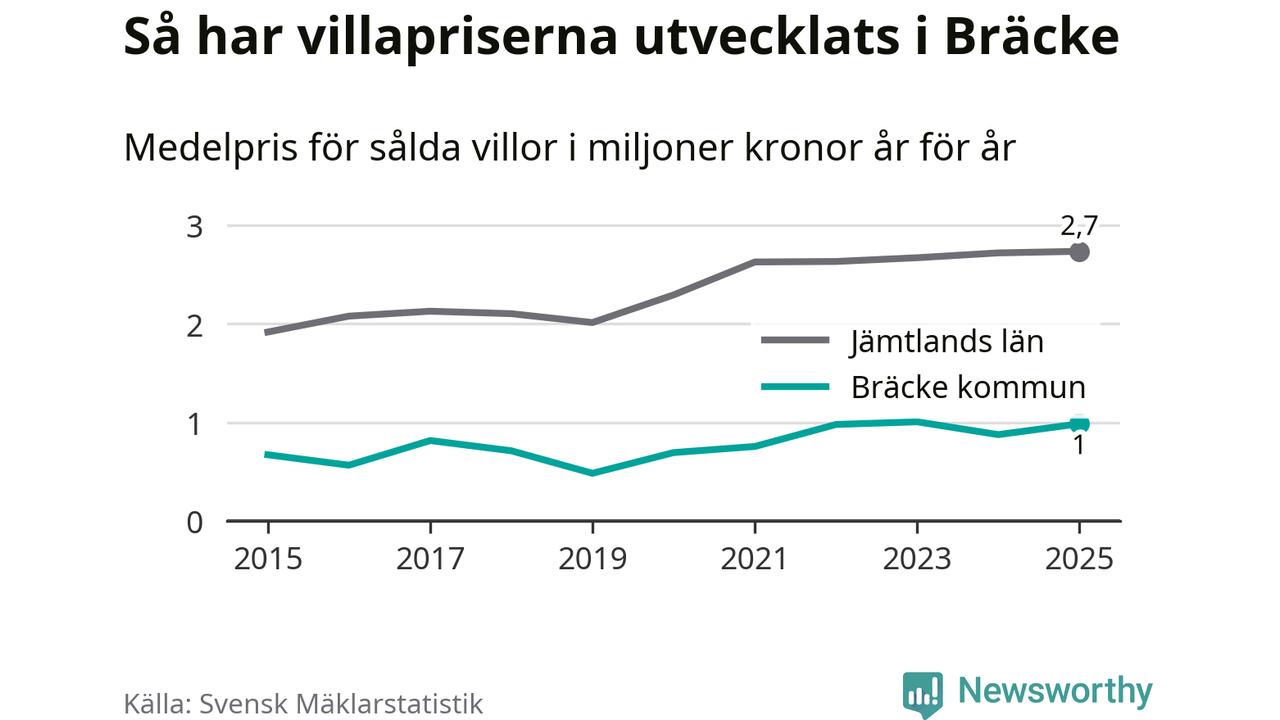 Bostadsmarknaden i Sverige närmar sig nivån före räntesmockan 2022. Även i Bräcke steg villapriserna.