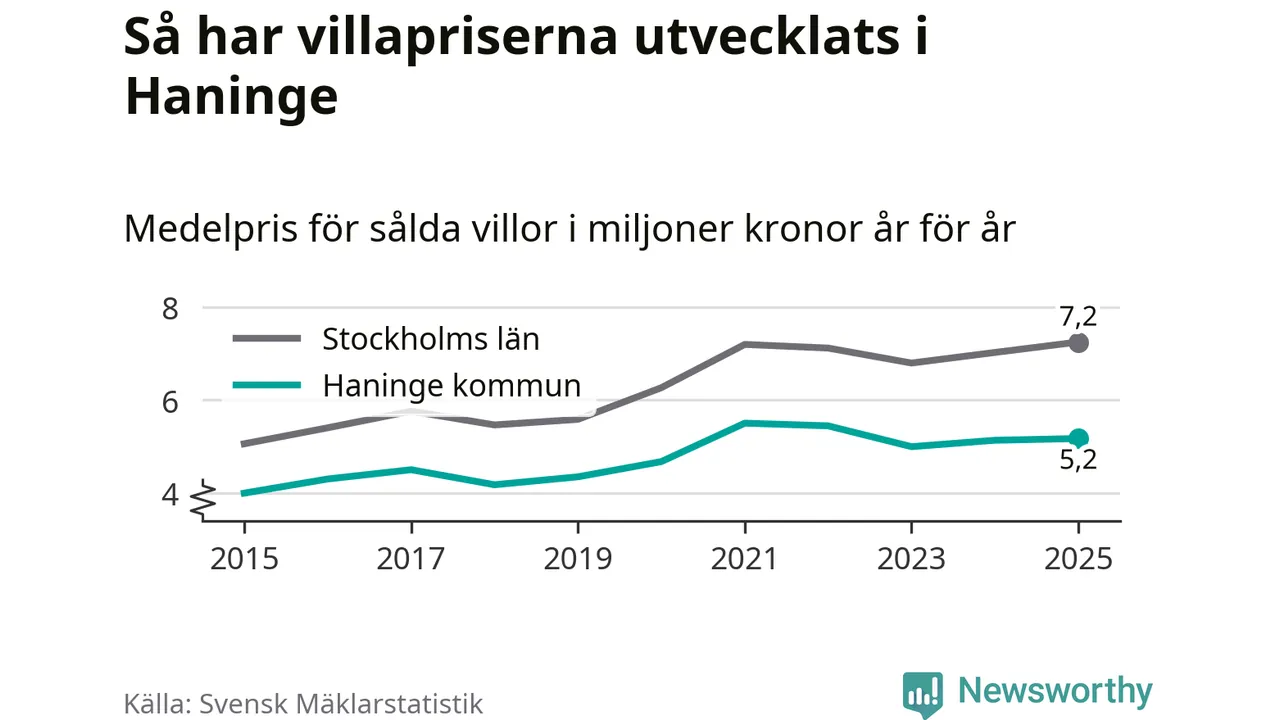 Bostadsmarknaden i Sverige närmar sig nivån före räntesmockan 2022. Men i Haninge sjönk priserna på bostadsrätter för fjärde året i rad.