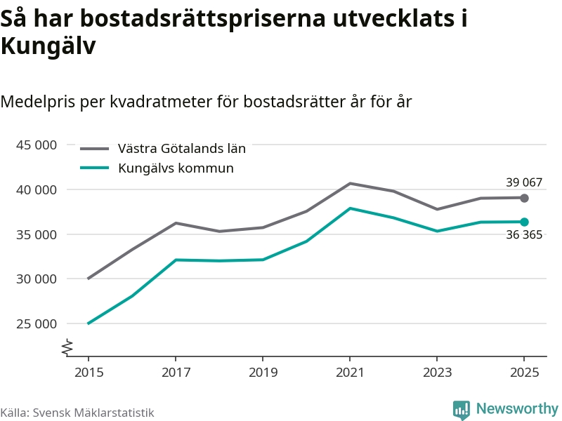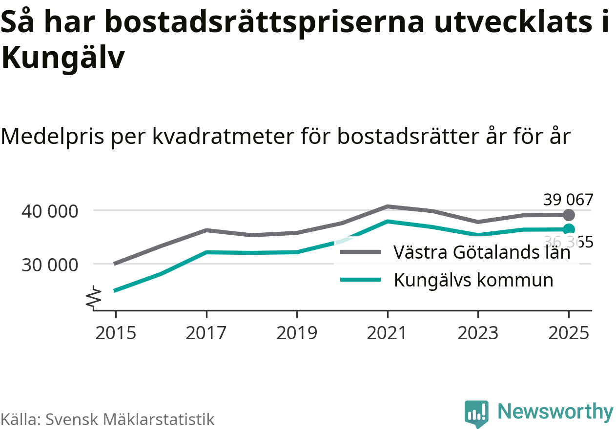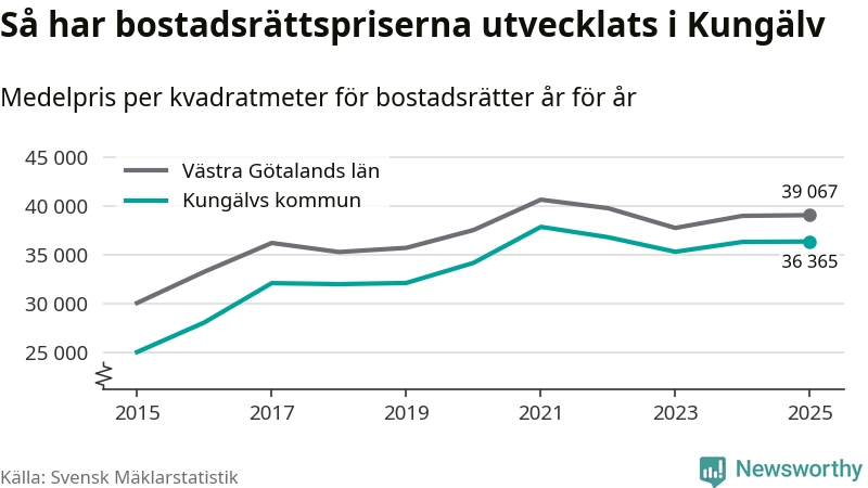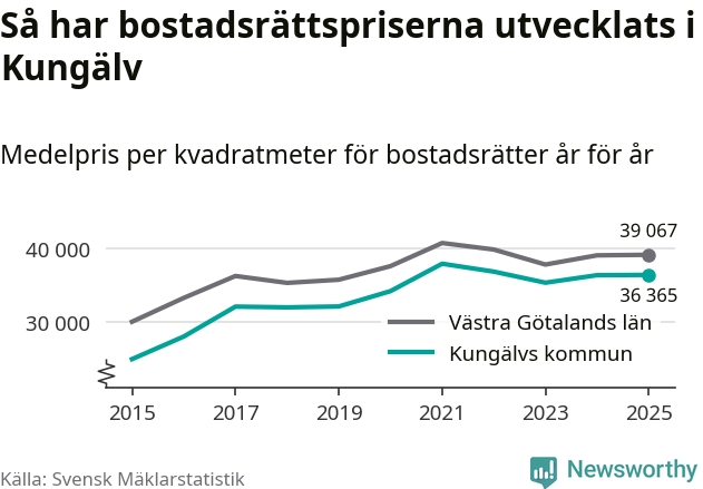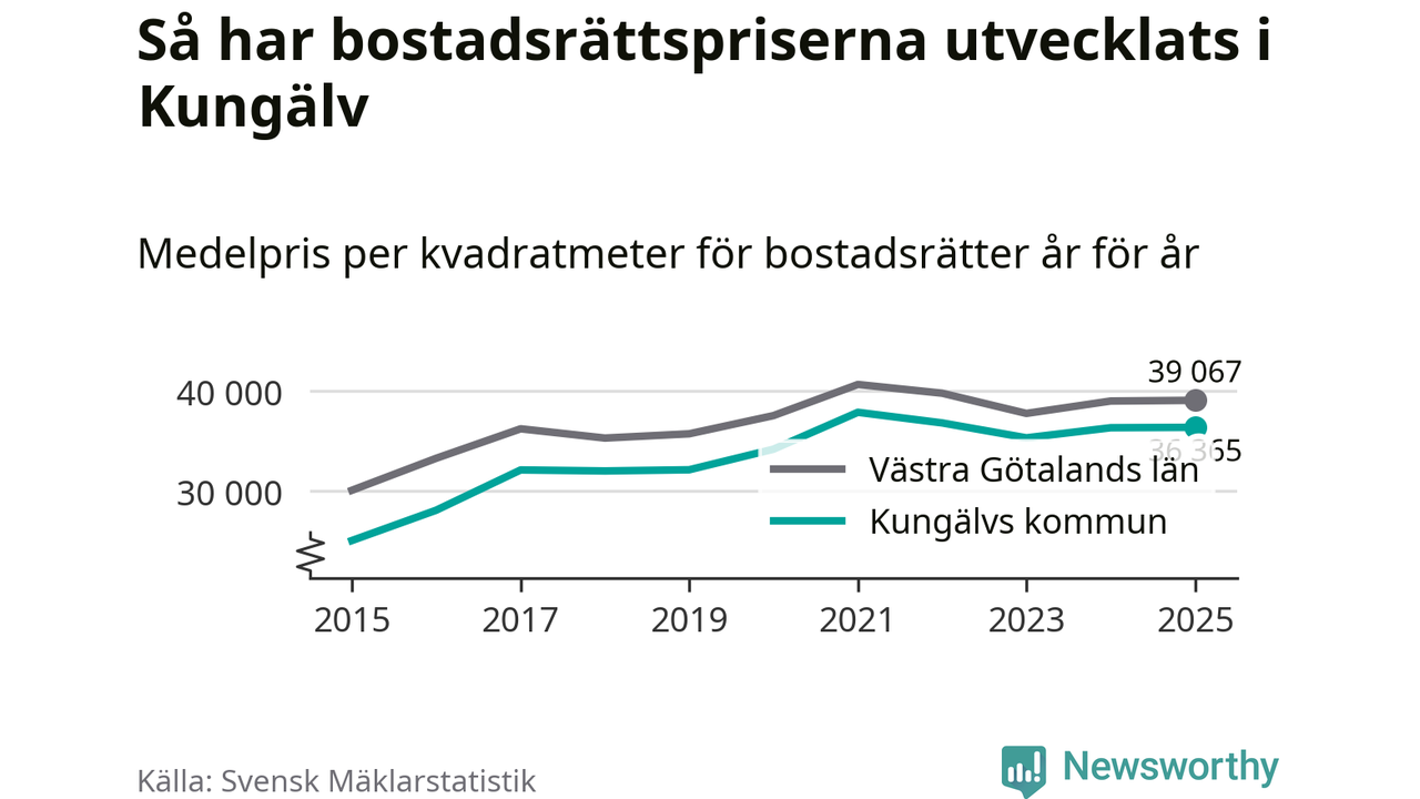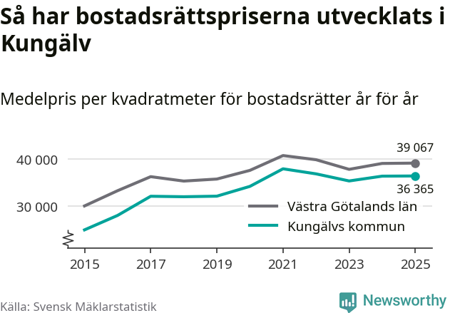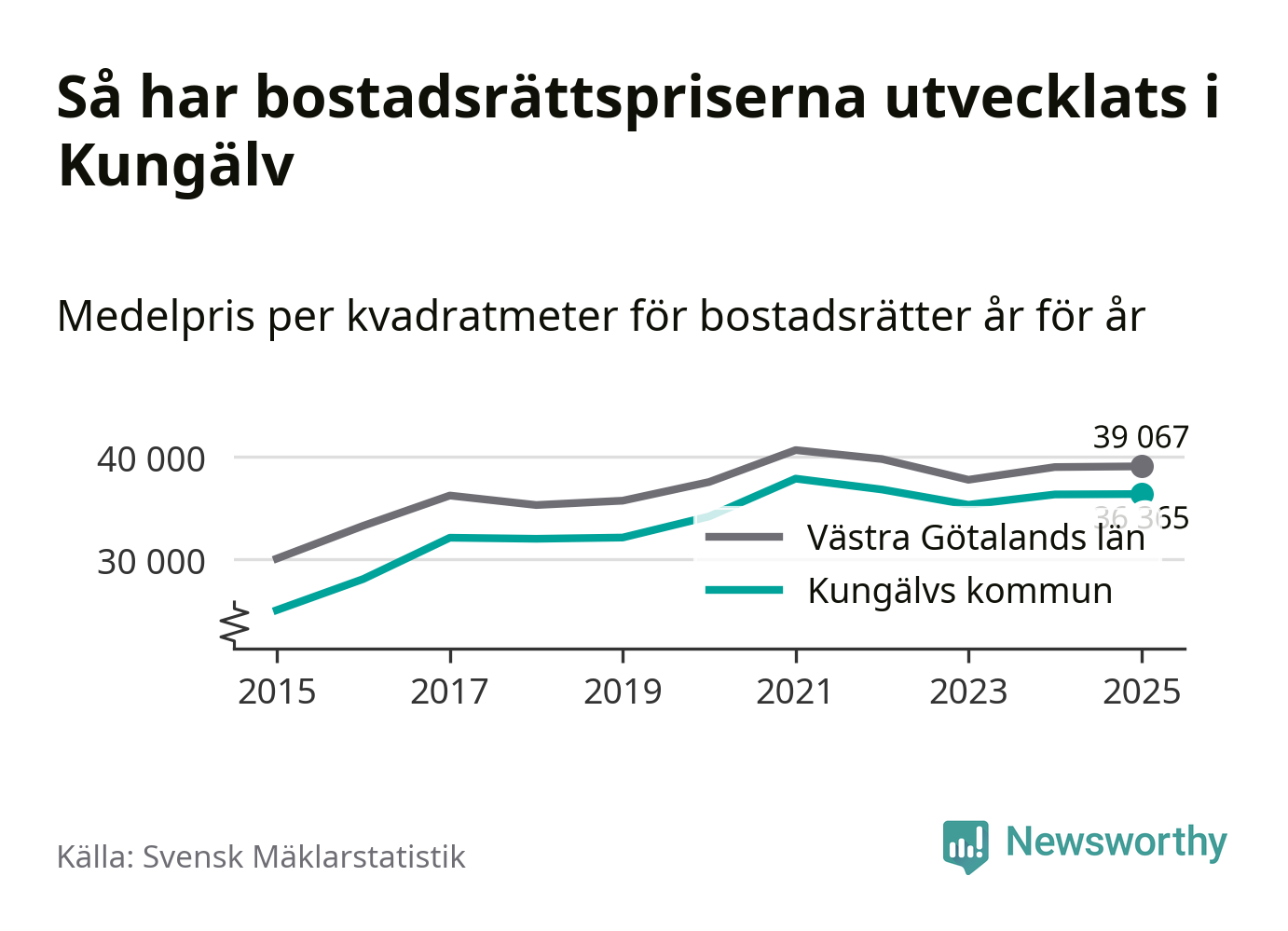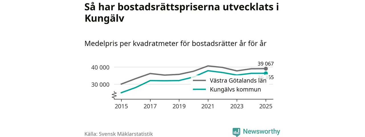 Det såldes totalt 516 bostadsrätter i Kungälvs kommun under året. Genomsnittspriset per kvadratmeter landade på 36 365 kronor, vilket är ungefär samma nivå som förra året.