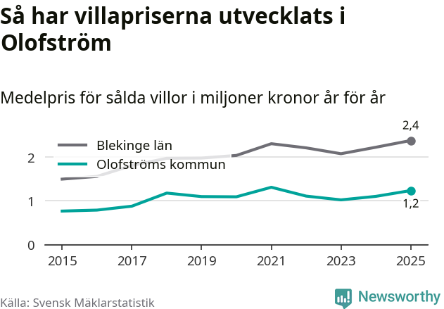 Bostadsmarknaden i Sverige närmar sig nivån före räntesmockan 2022. I Olofström ökade villapriserna för andra året i rad.