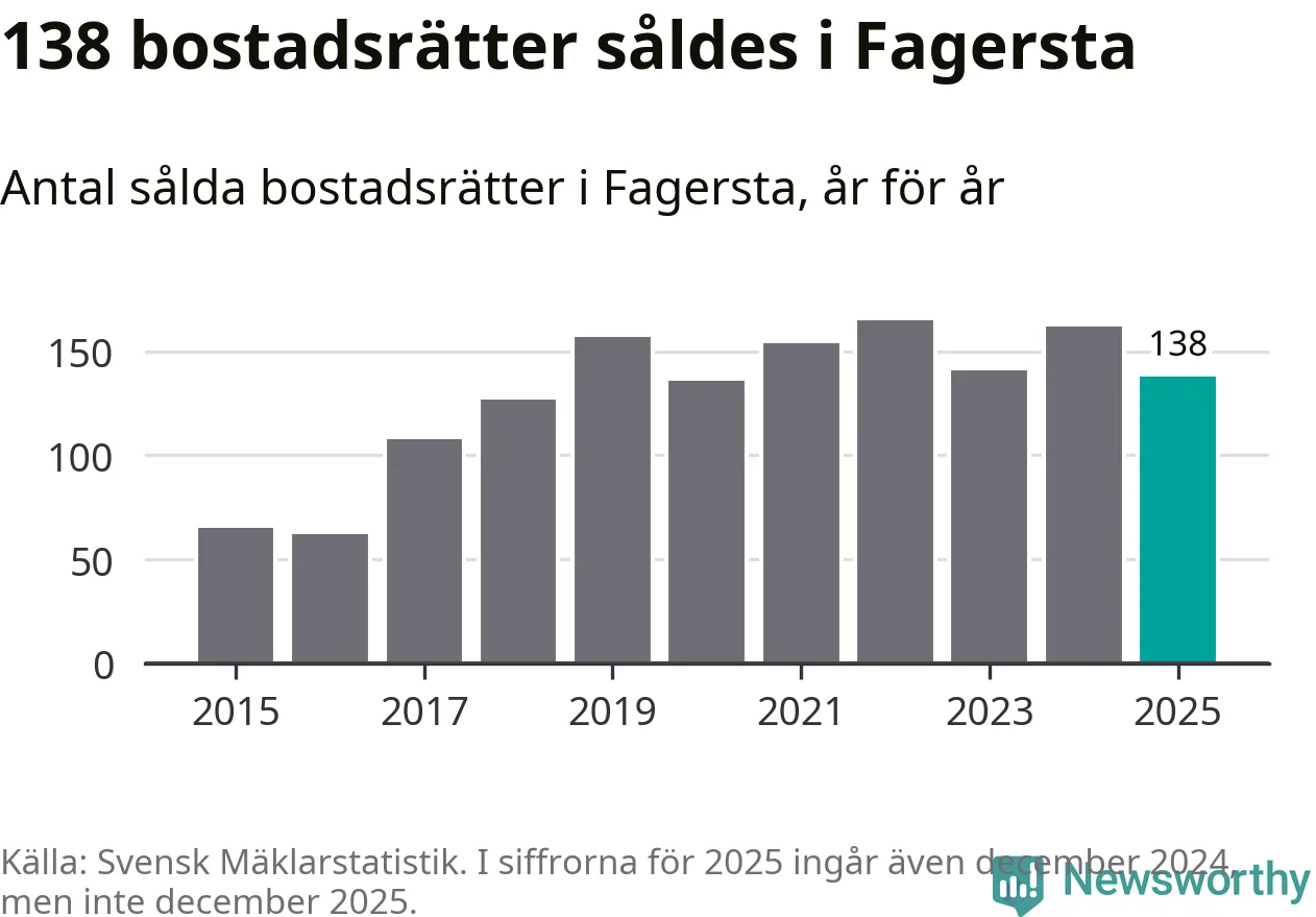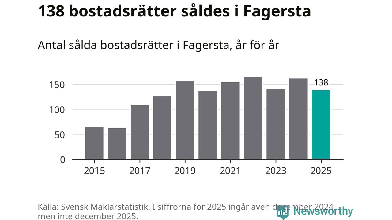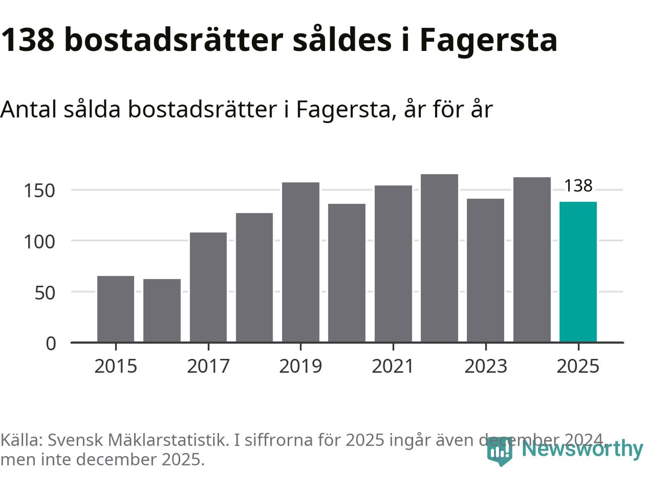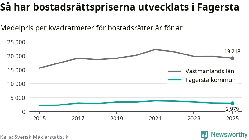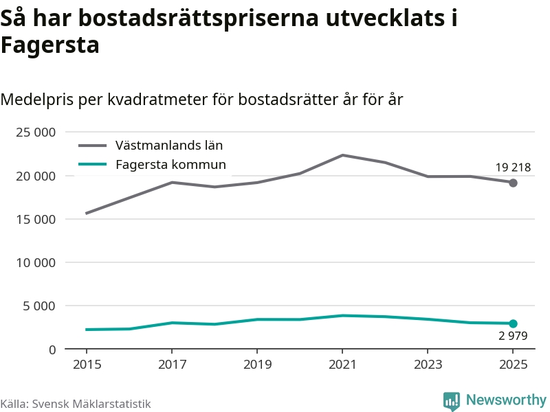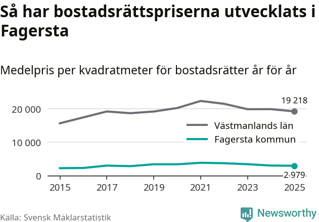 Det såldes totalt 138 bostadsrätter i Fagersta kommun under året. Genomsnittspriset per kvadratmeter landade på 2 979 kronor. Det är en minskning med två procent i kommunen på ett år.