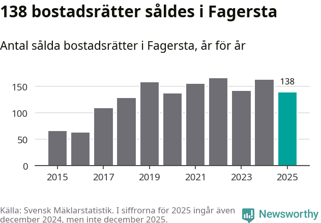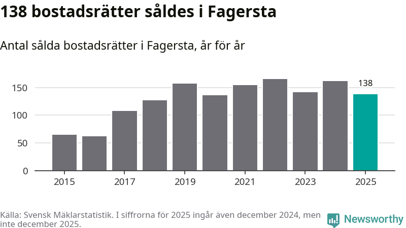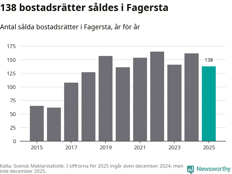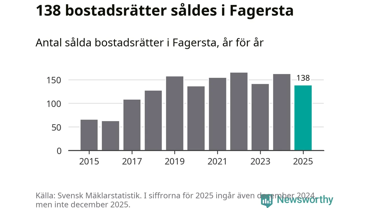 Det visar årsstatistik från Svensk Mäklarstatistik som Newsworthy har sammanställt.