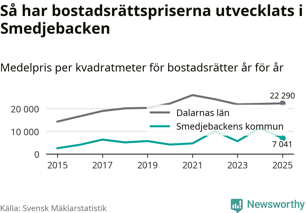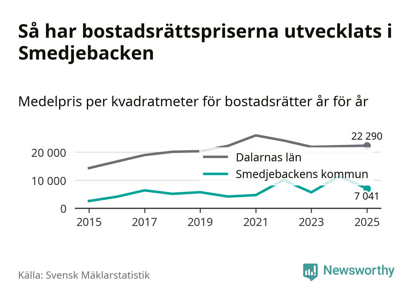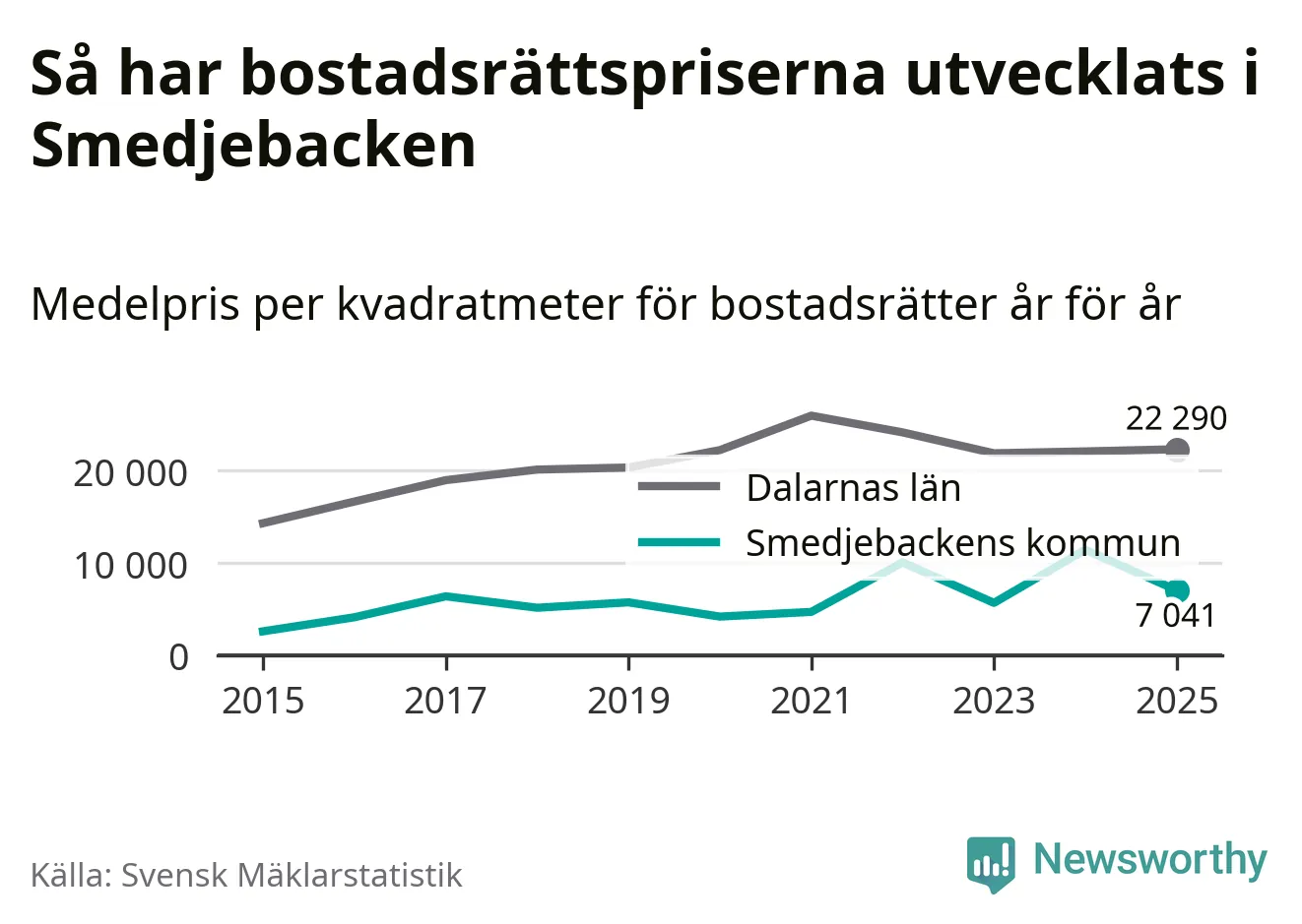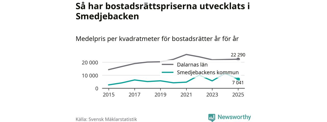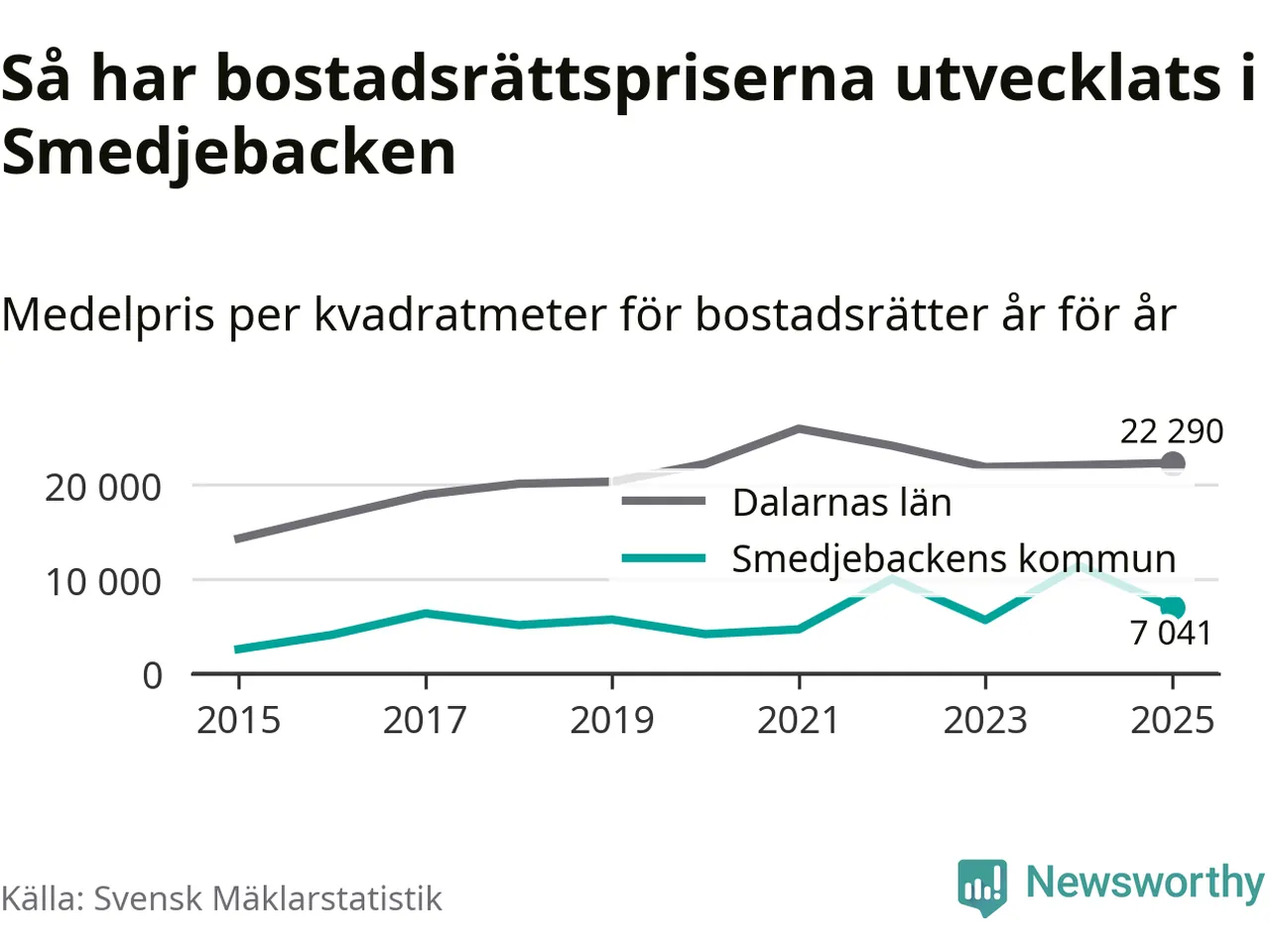 När det gäller bostadsrätter i Smedjebackens kommun såldes 16 under året. Snittet per kvadratmeter landade på omkring 7 000 kronor. Det är en minskning jämfört med förra året.